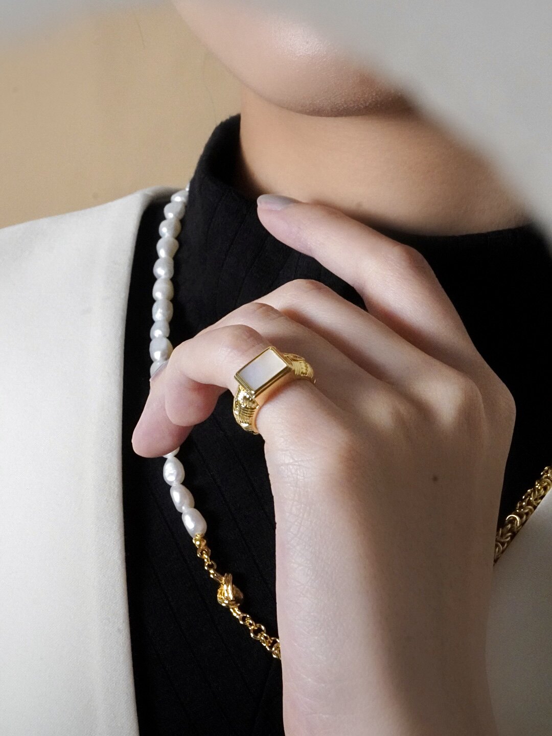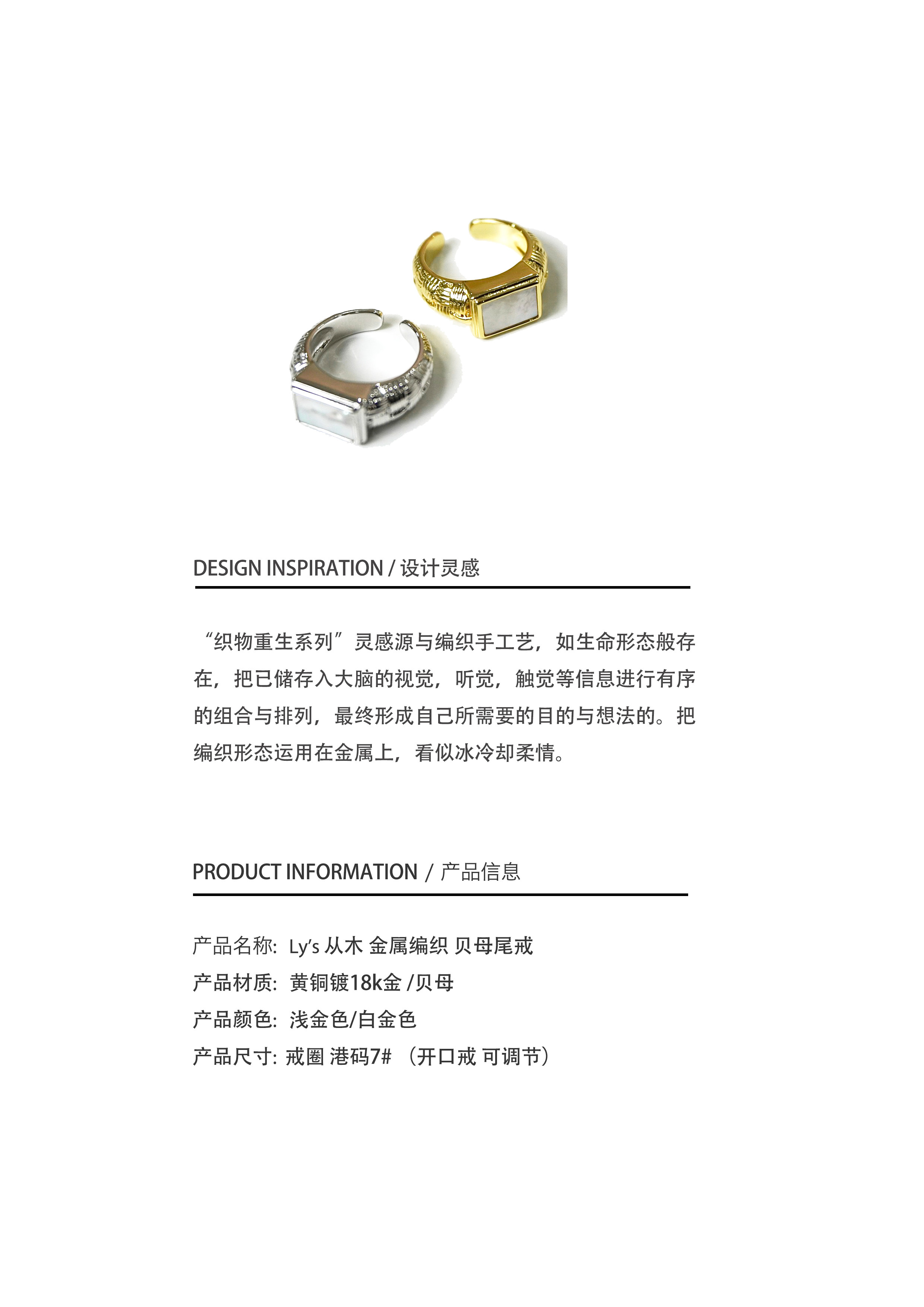 New Chinese-Style Ring Made of Wood, Fashion Jewelry, Metal Weaving, White Mother-Of-Pearl, Pure Silver Tail Ring