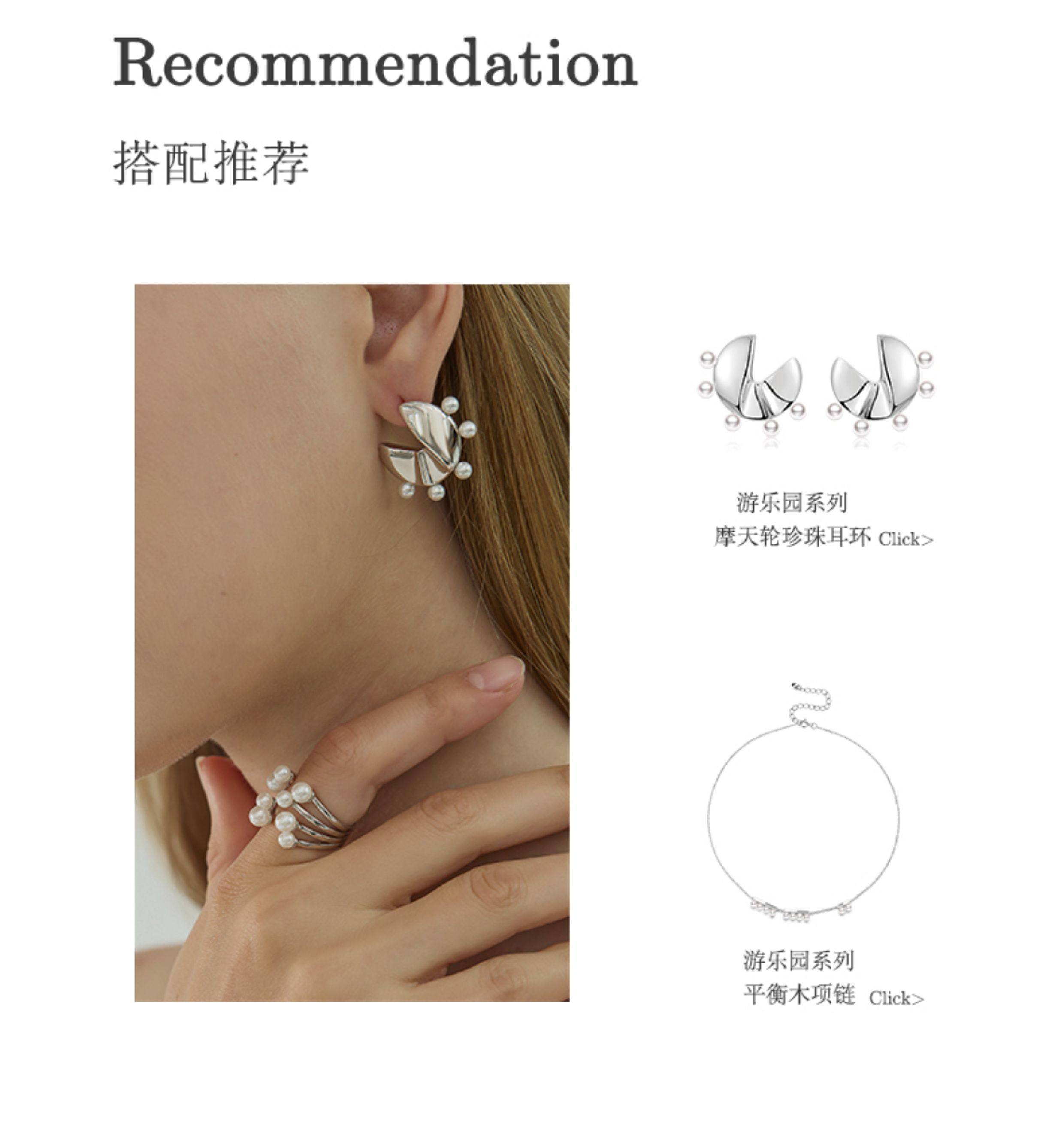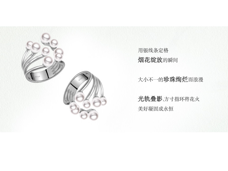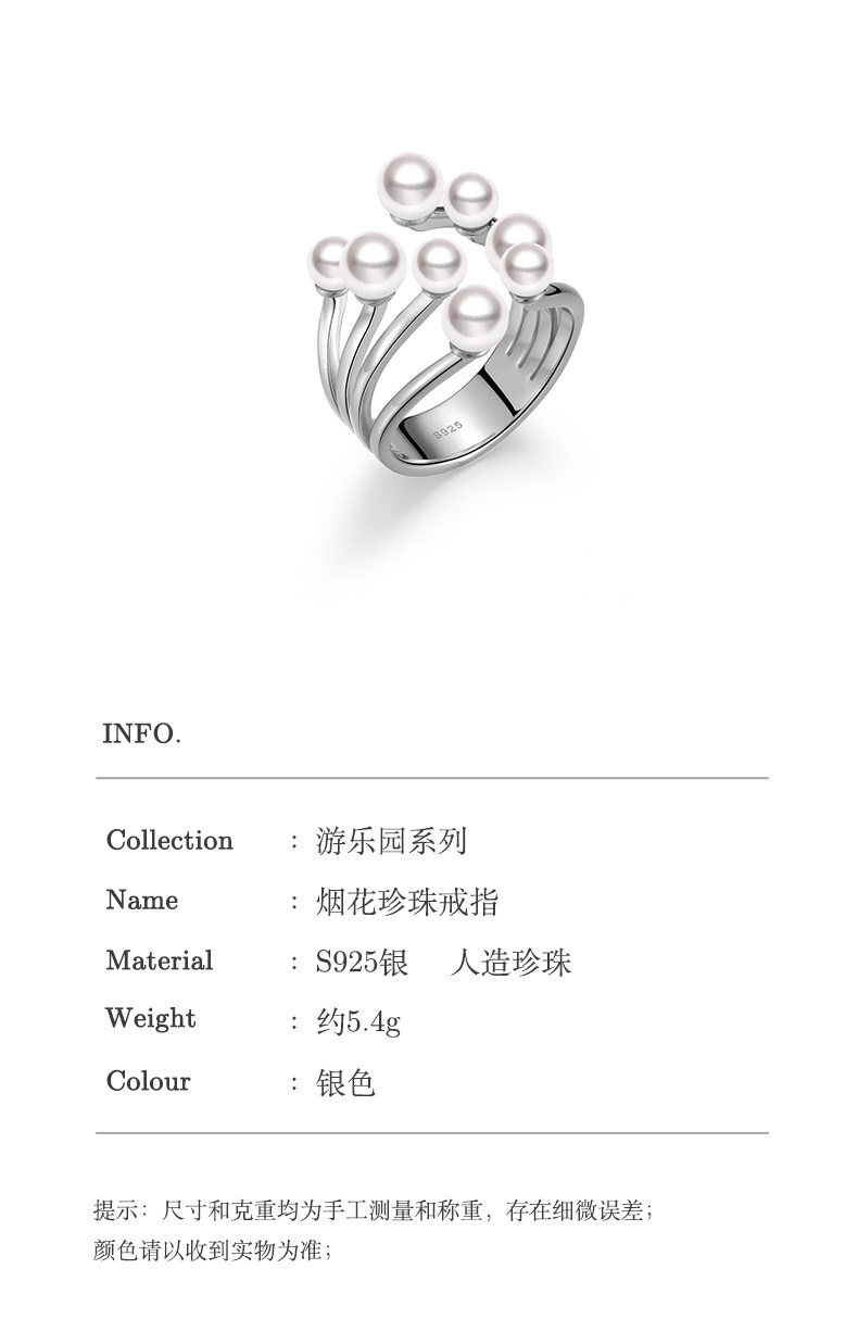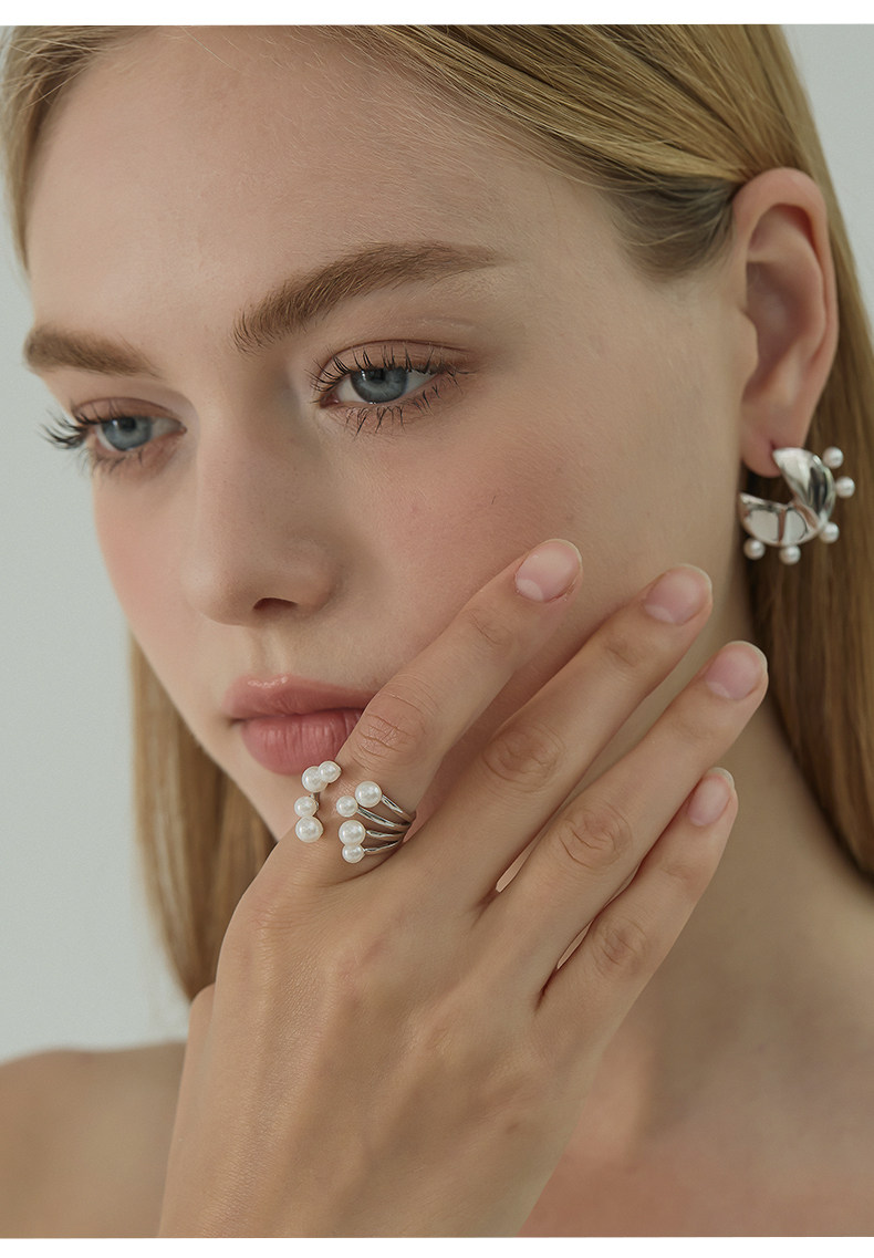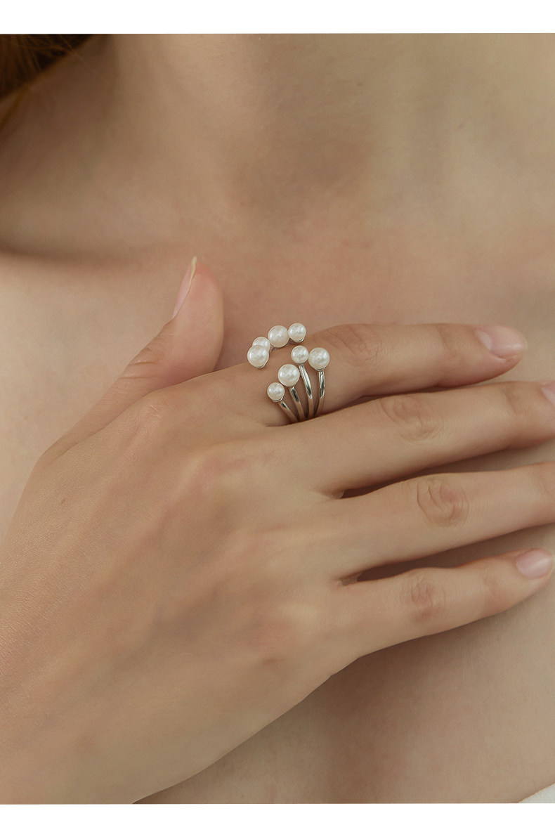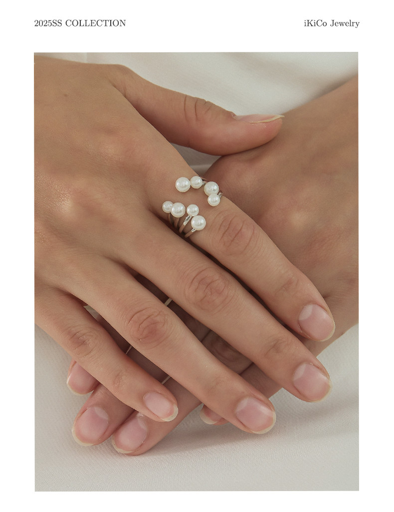 Ikico Fireworks Pearl Ring Light Luxury Niche High-End Open Stacking Women's 925 Silver Gift 25 Spring and Summer New Style