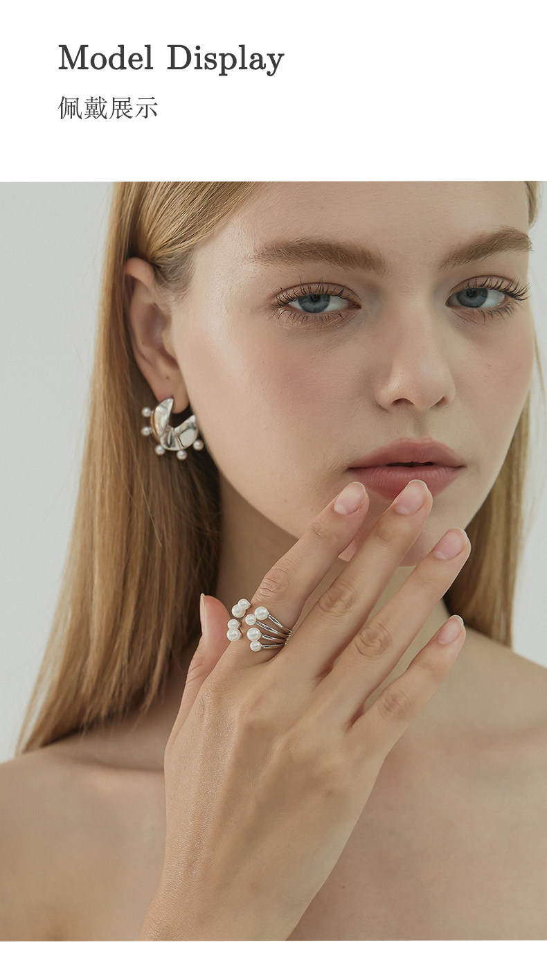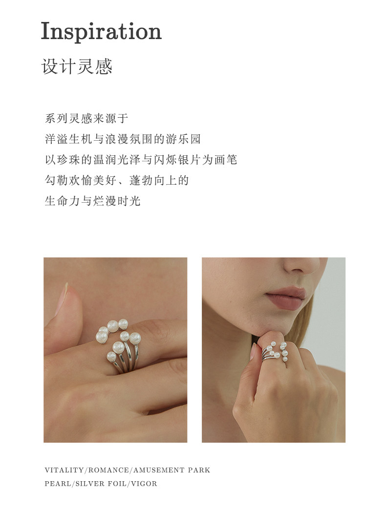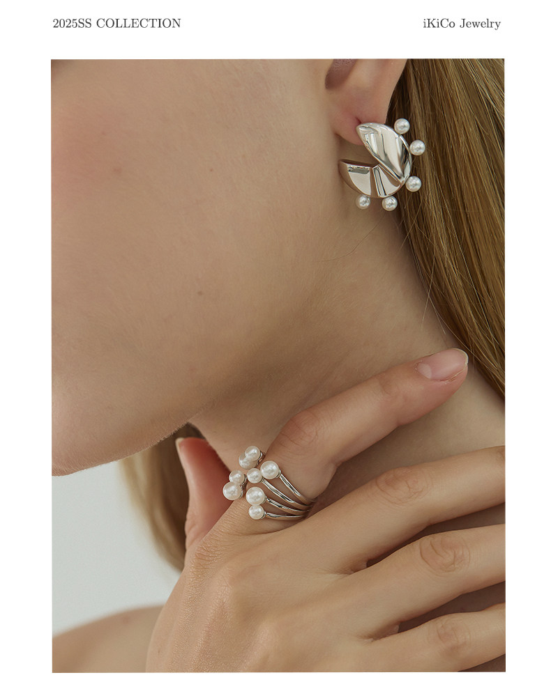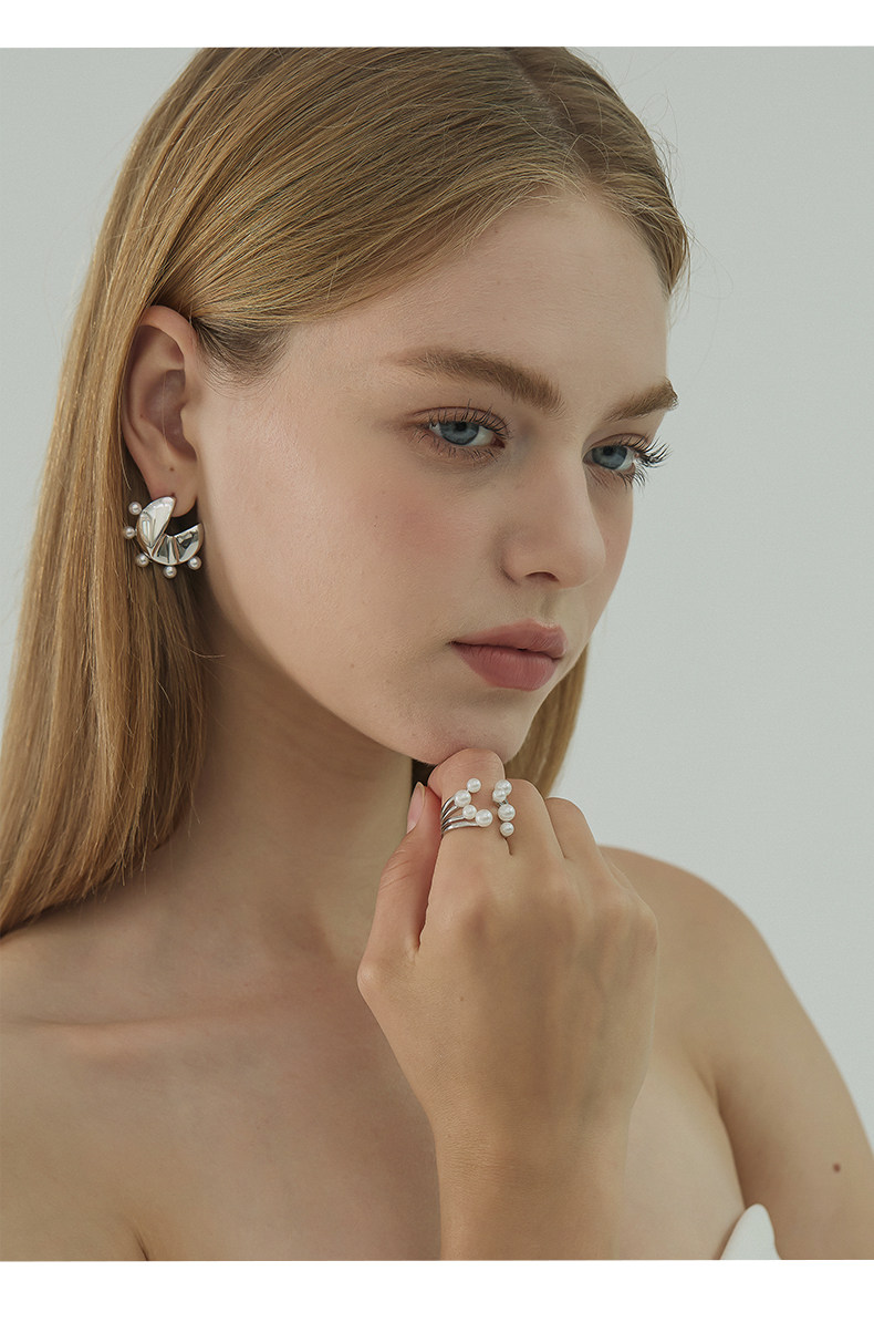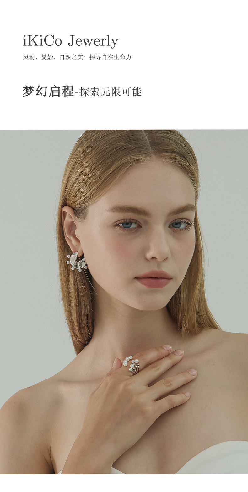 Ikico Fireworks Pearl Ring Light Luxury Niche High-End Open Stacking Women's 925 Silver Gift 25 Spring and Summer New Style
