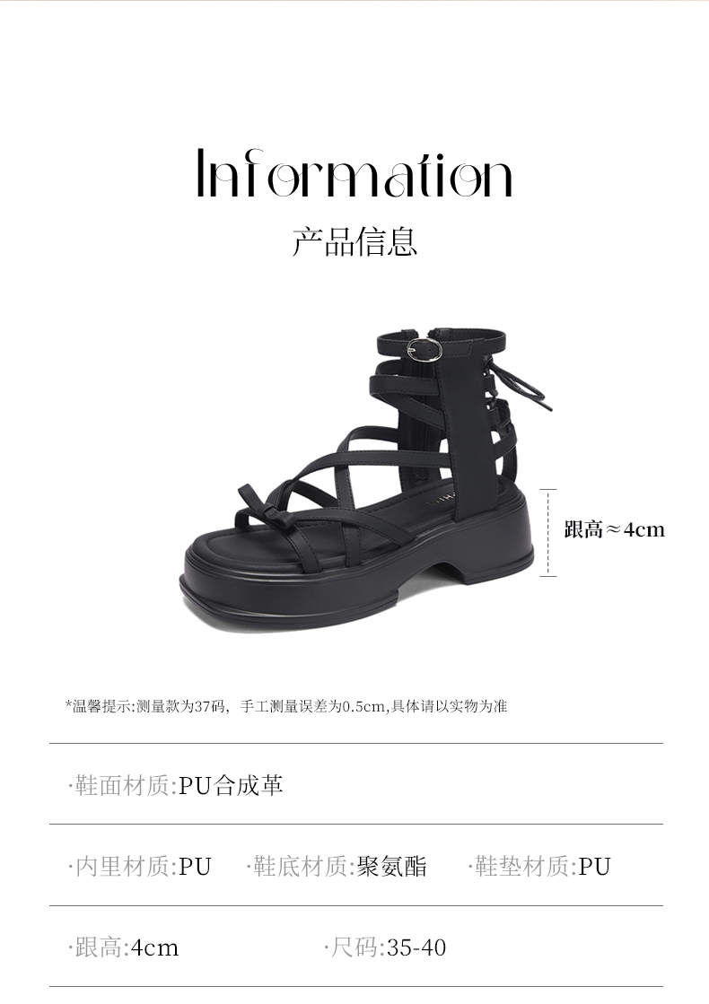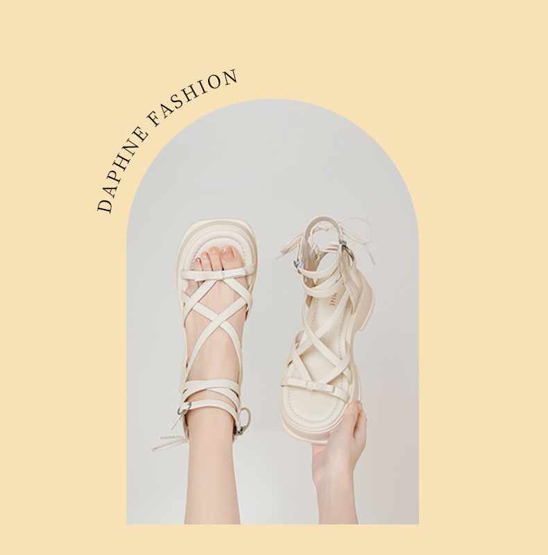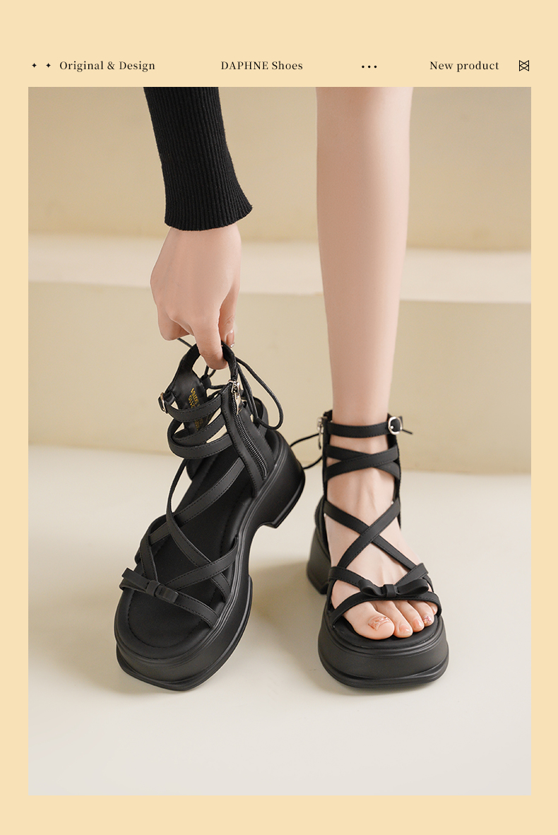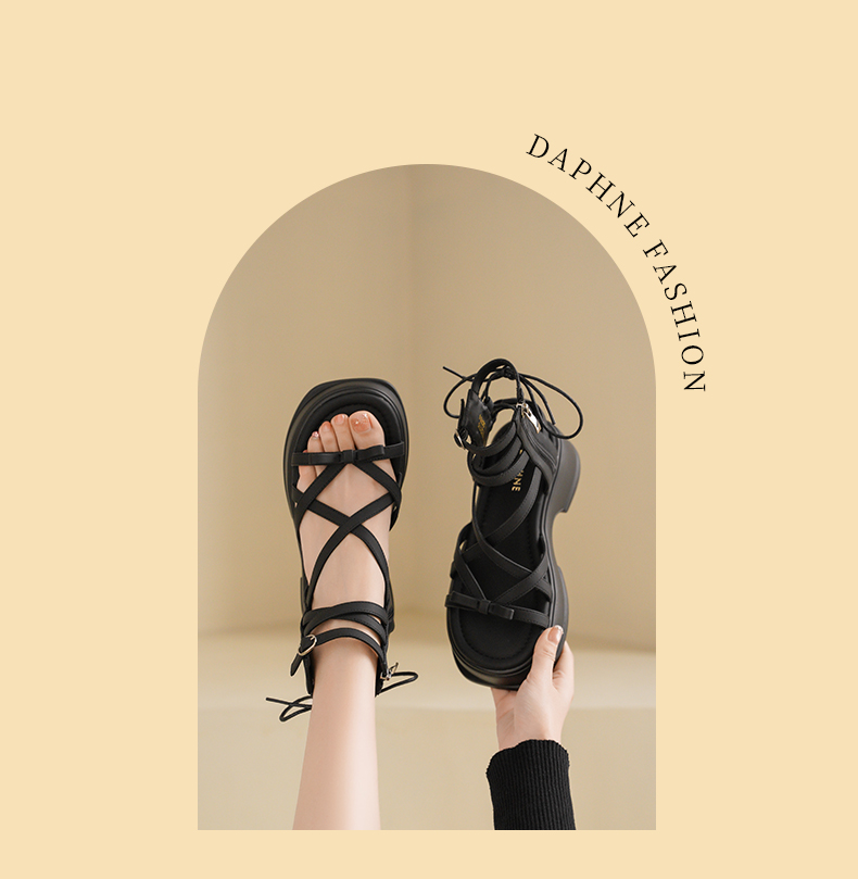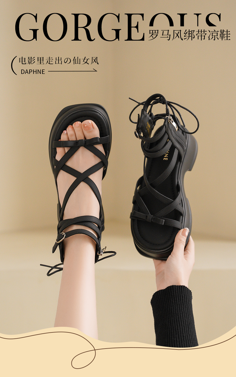 Daphne Thick-Soled Sandals for Women 2025 New Summer Roman Sandals to Match Skirts, Small Size Lace-Up Sandals