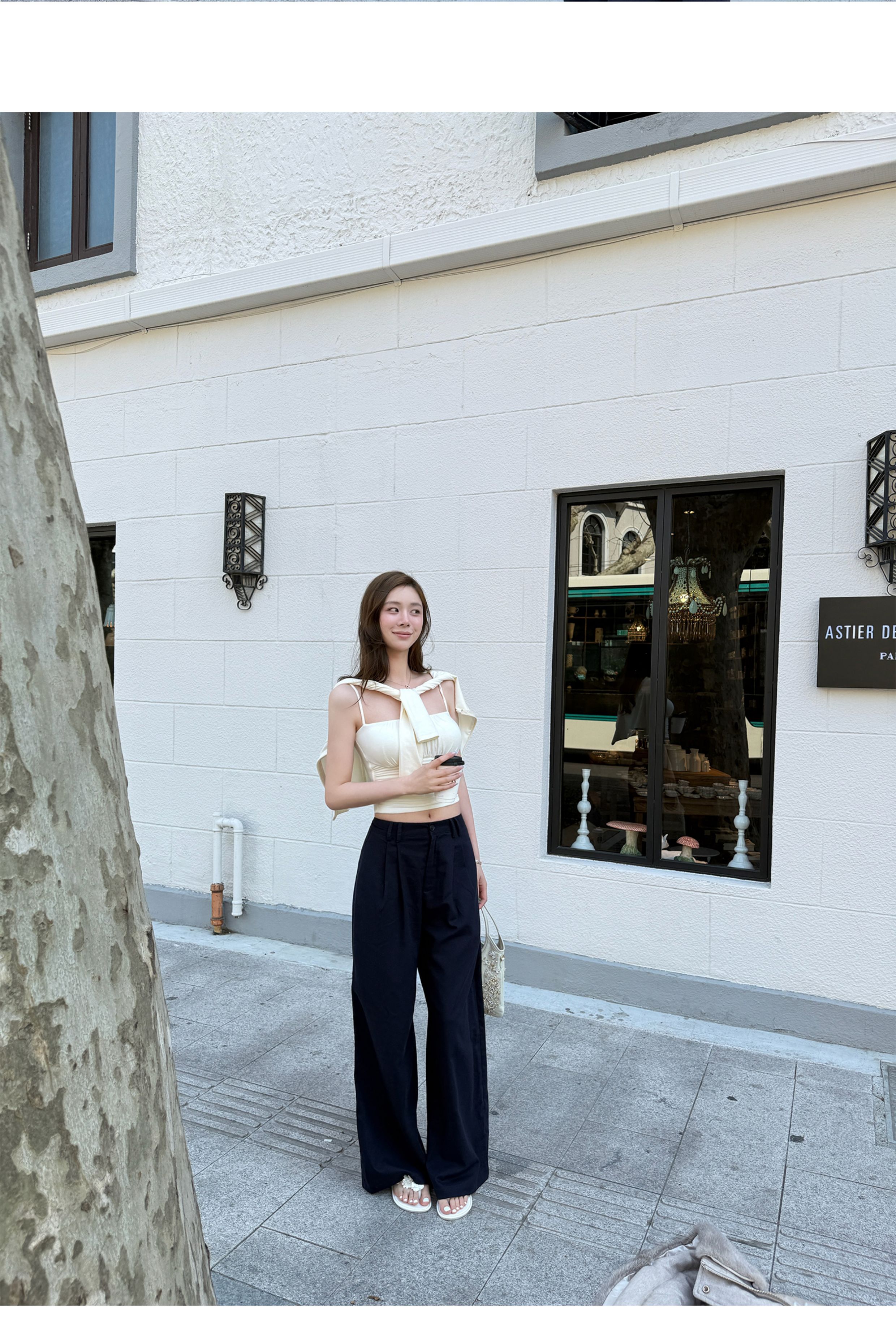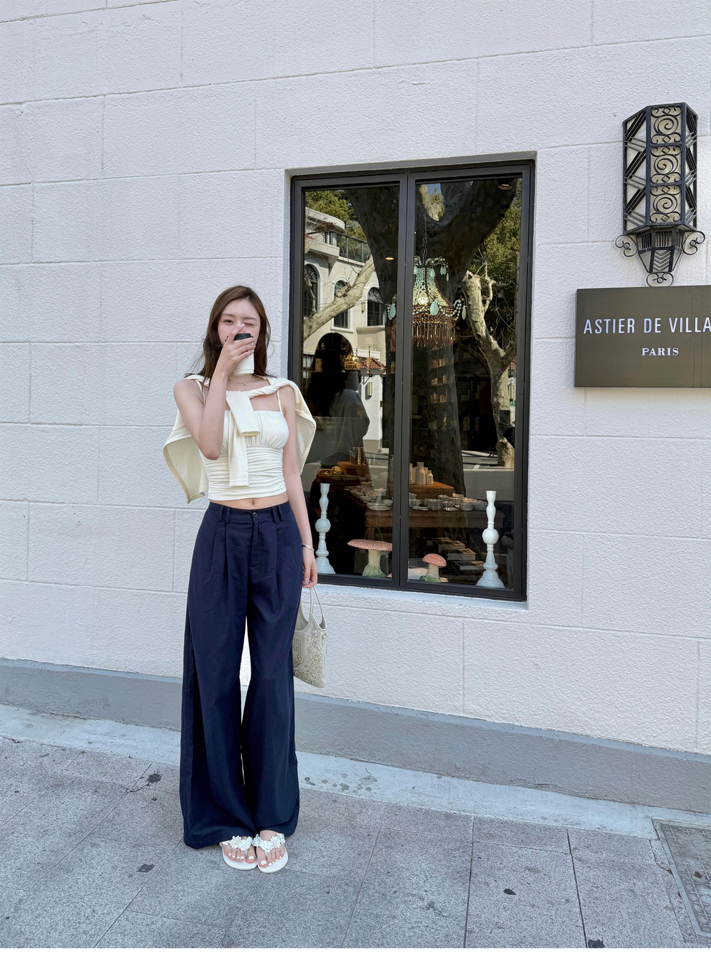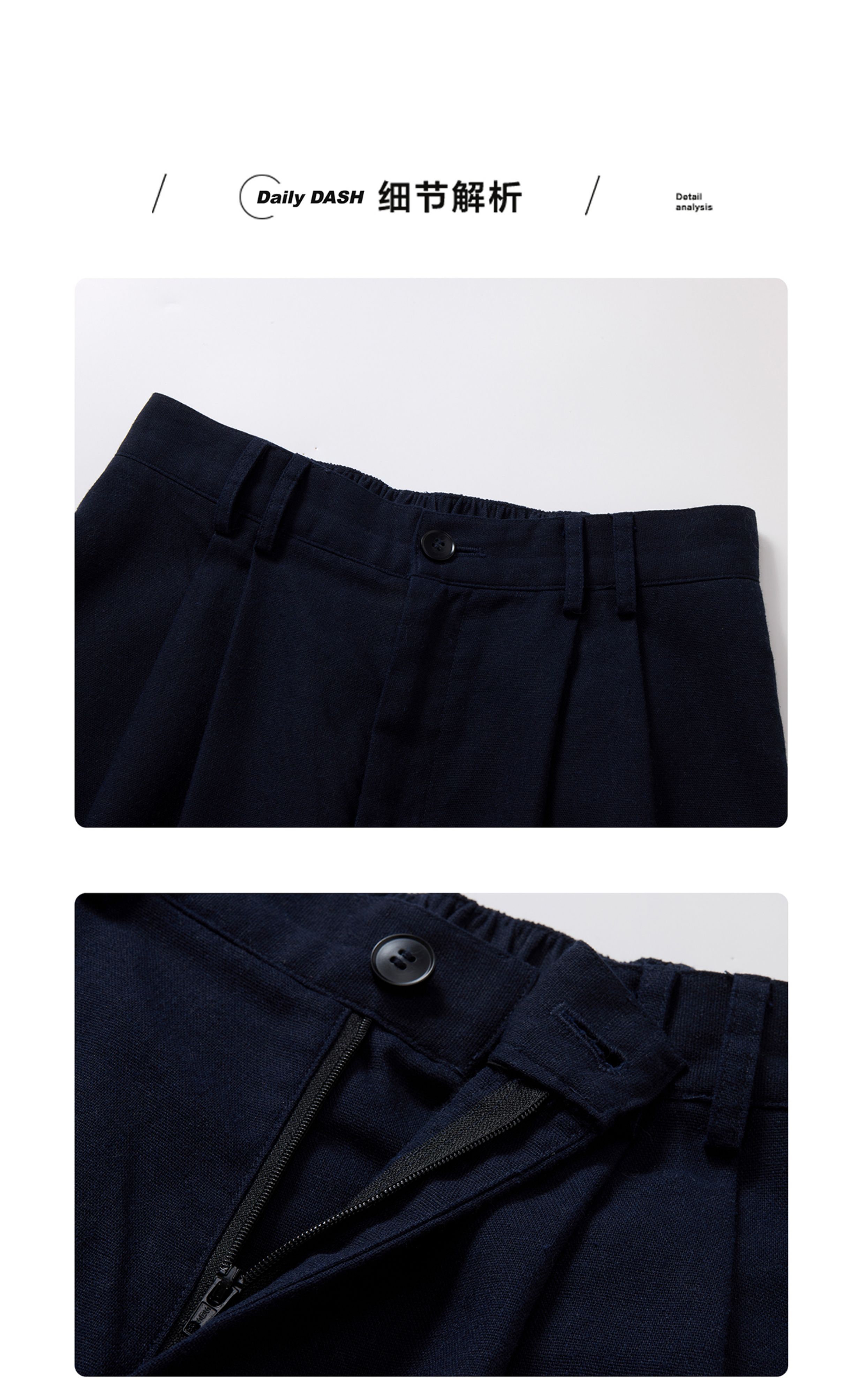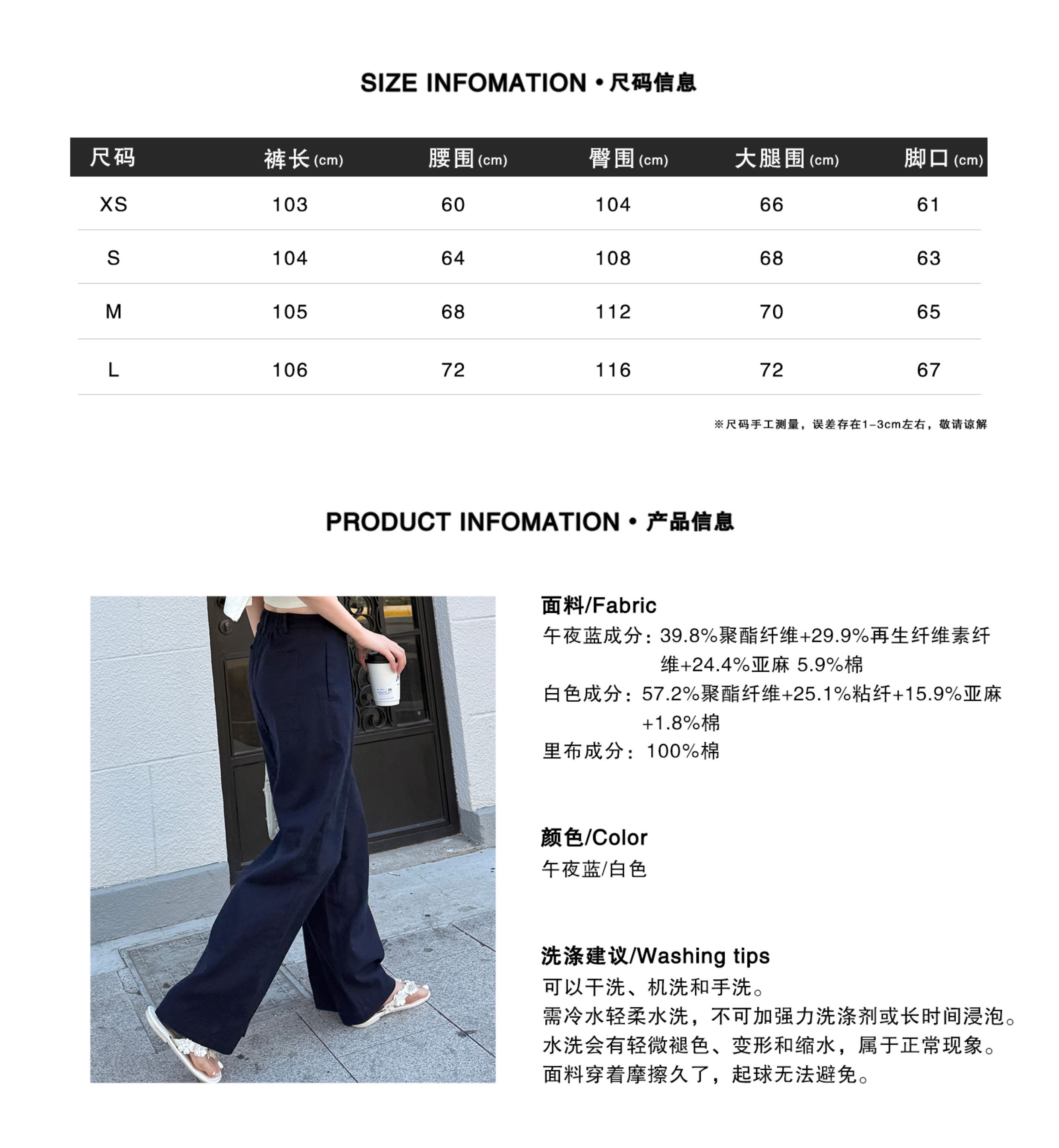 [Small Amount in Stock] Dailydash'Old Money Style' Midnight Blue Straight-Leg Pants Elastic Waist Linen Casual Pants