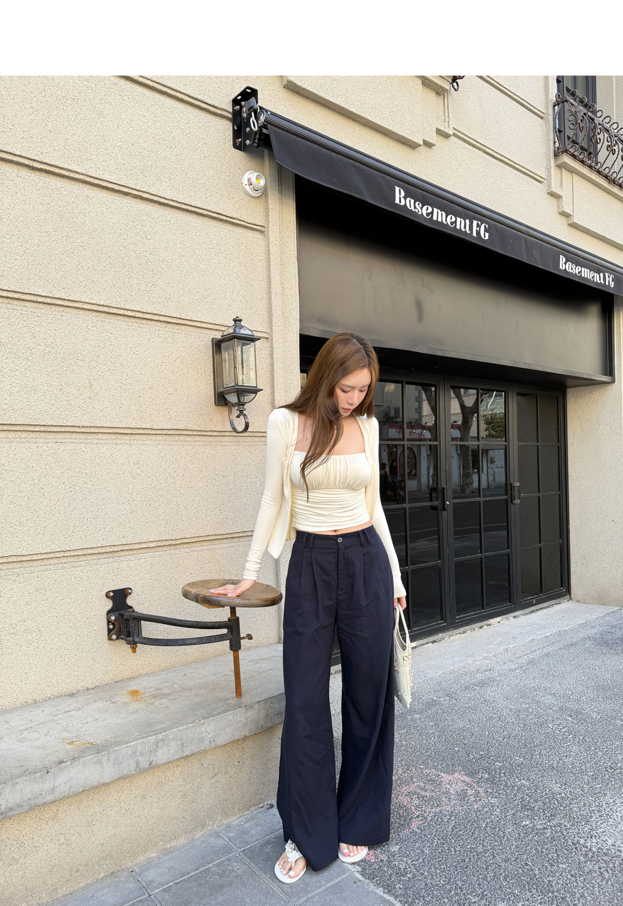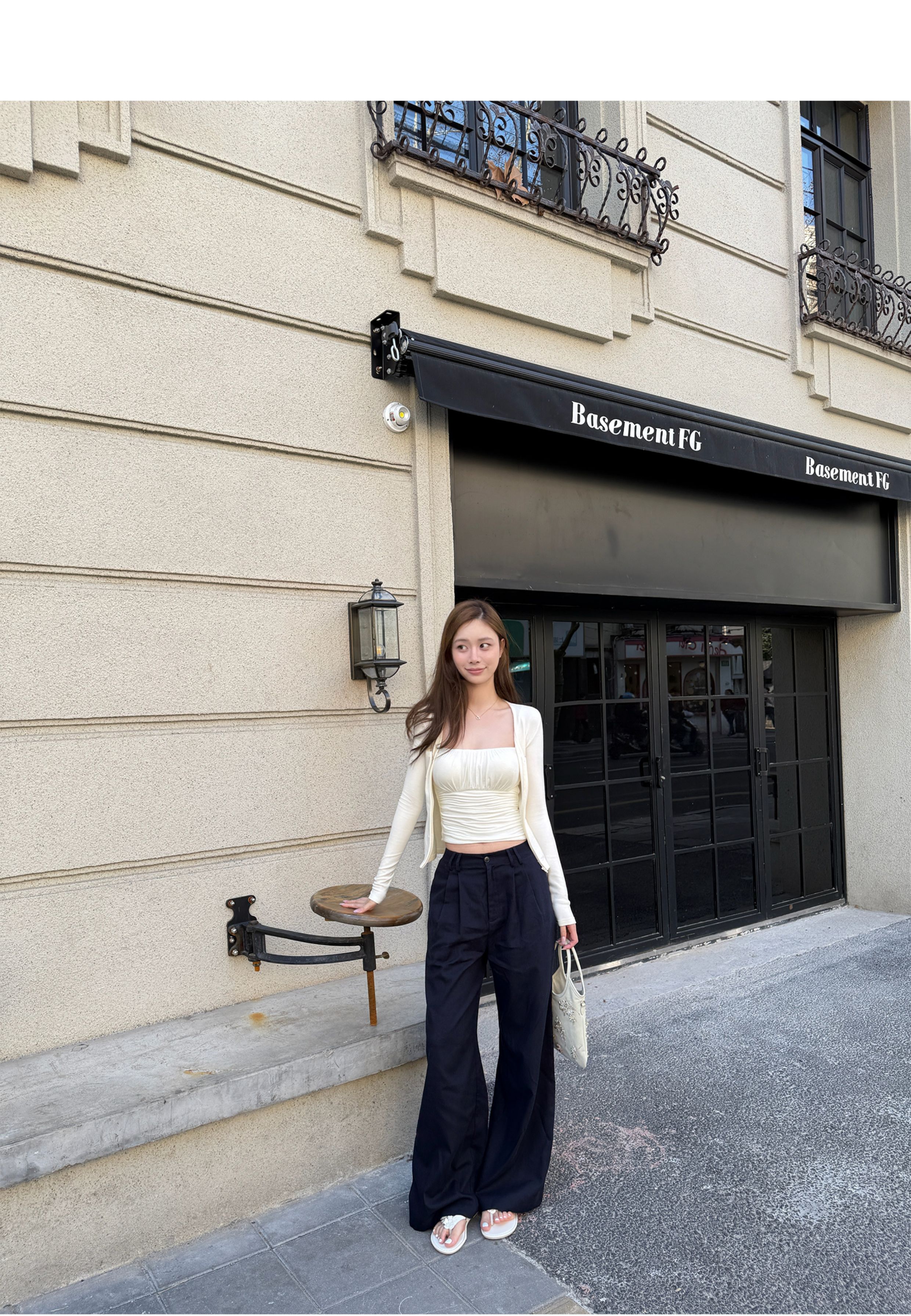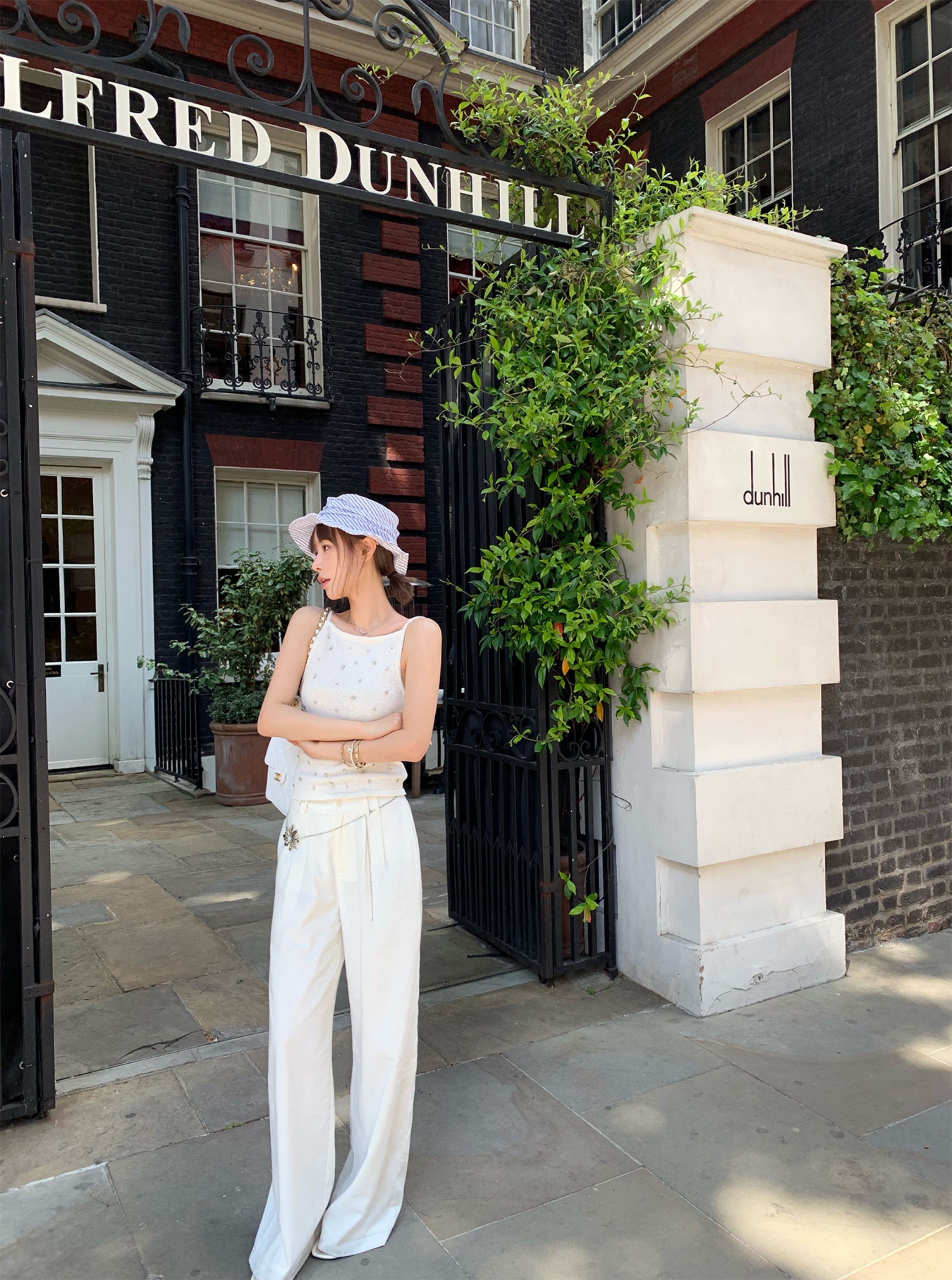 [Small Amount in Stock] Dailydash'Old Money Style' Midnight Blue Straight-Leg Pants Elastic Waist Linen Casual Pants