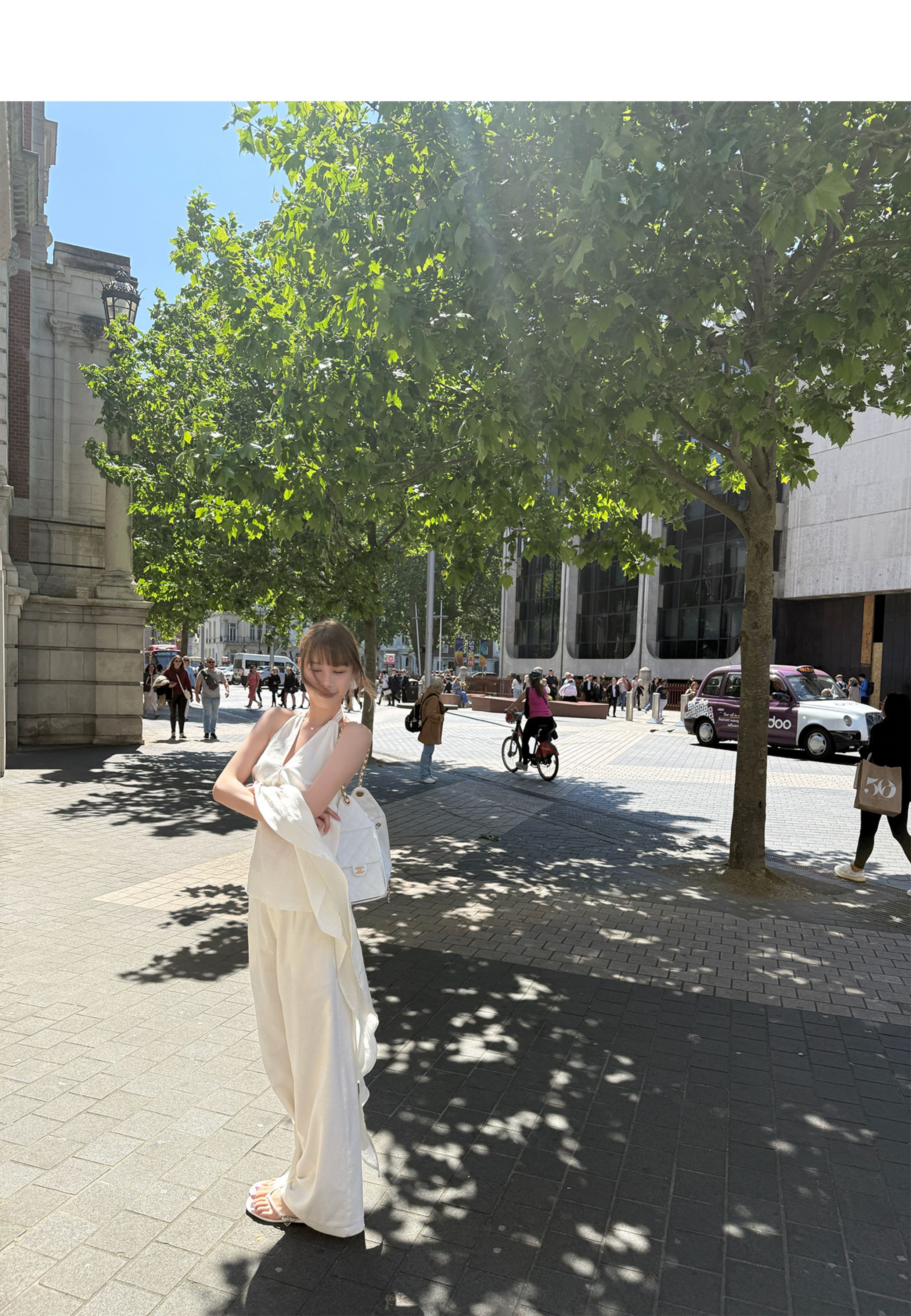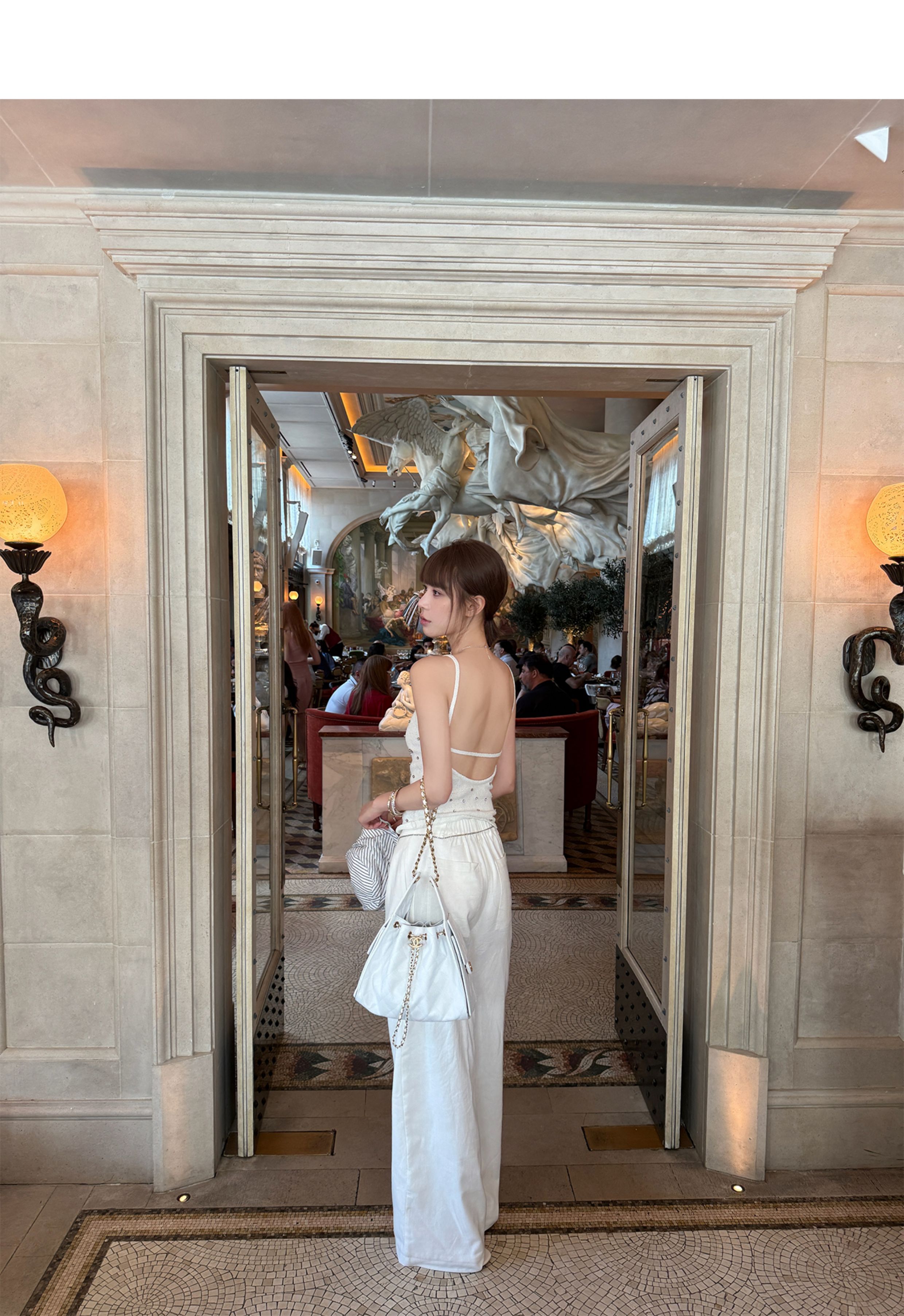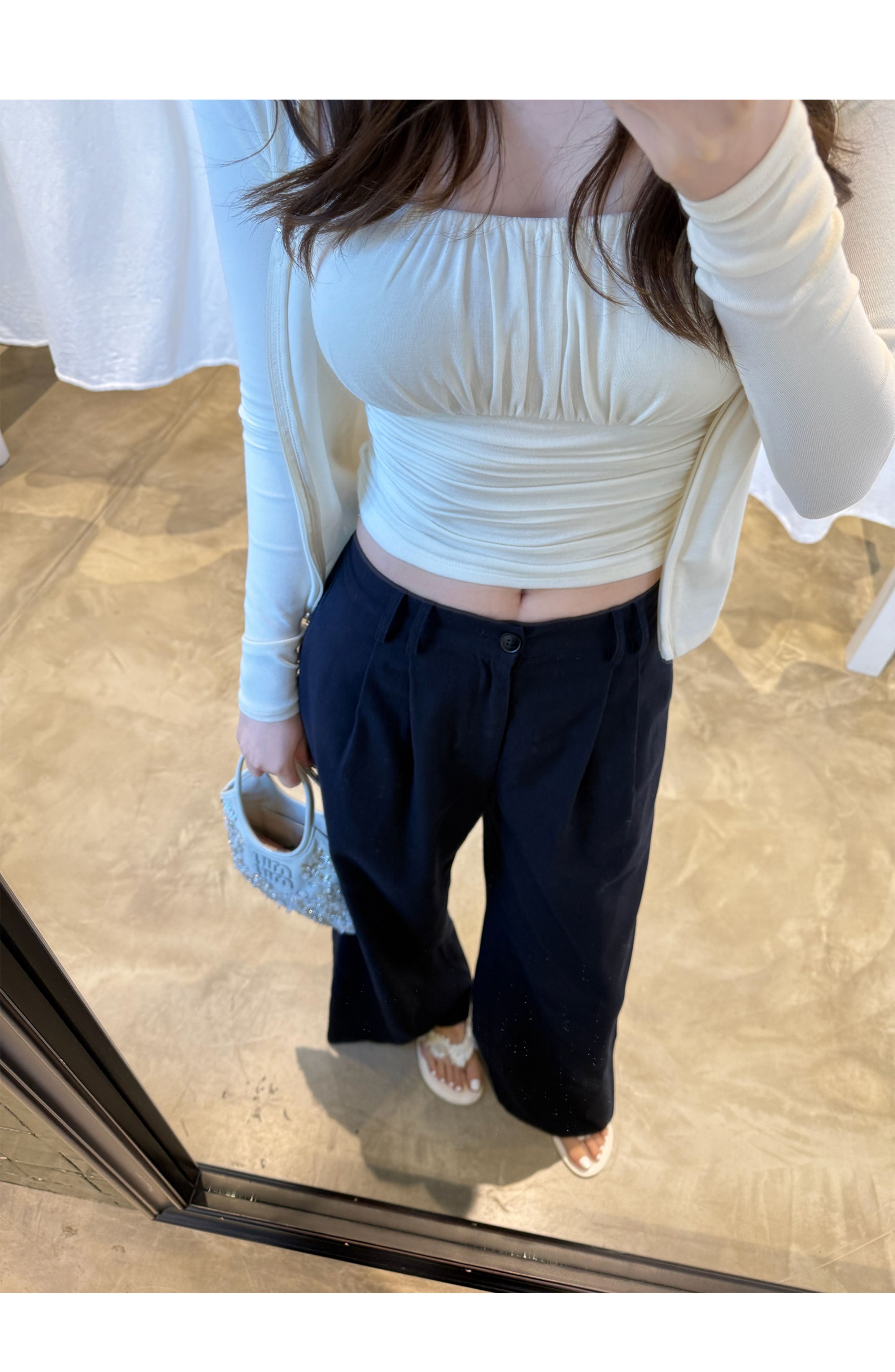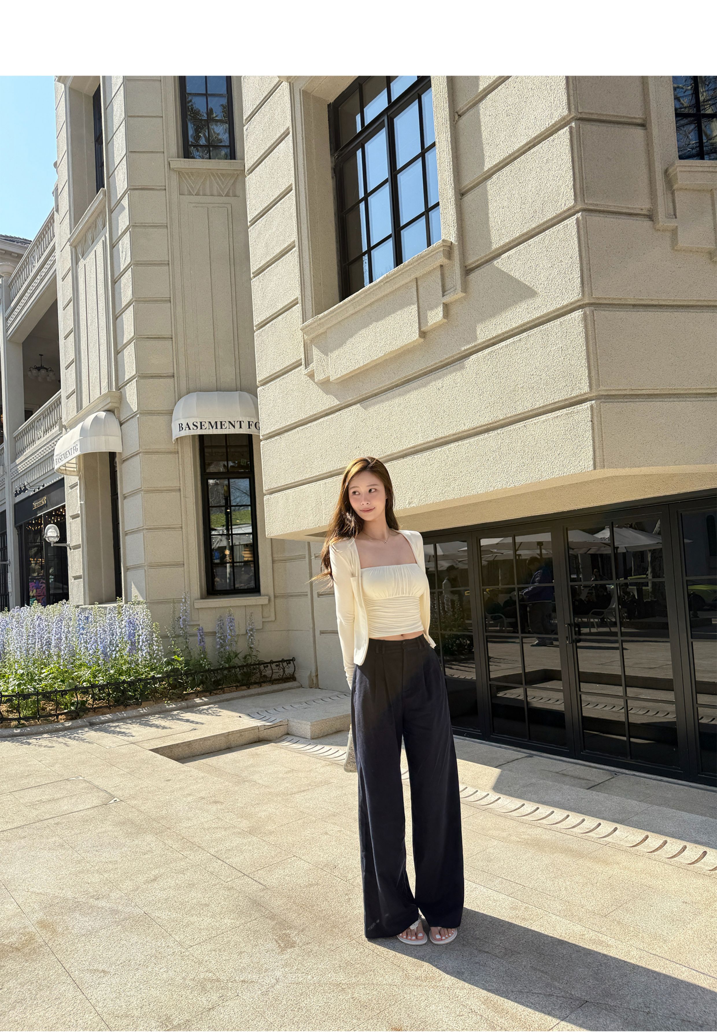 [Small Amount in Stock] Dailydash'Old Money Style' Midnight Blue Straight-Leg Pants Elastic Waist Linen Casual Pants