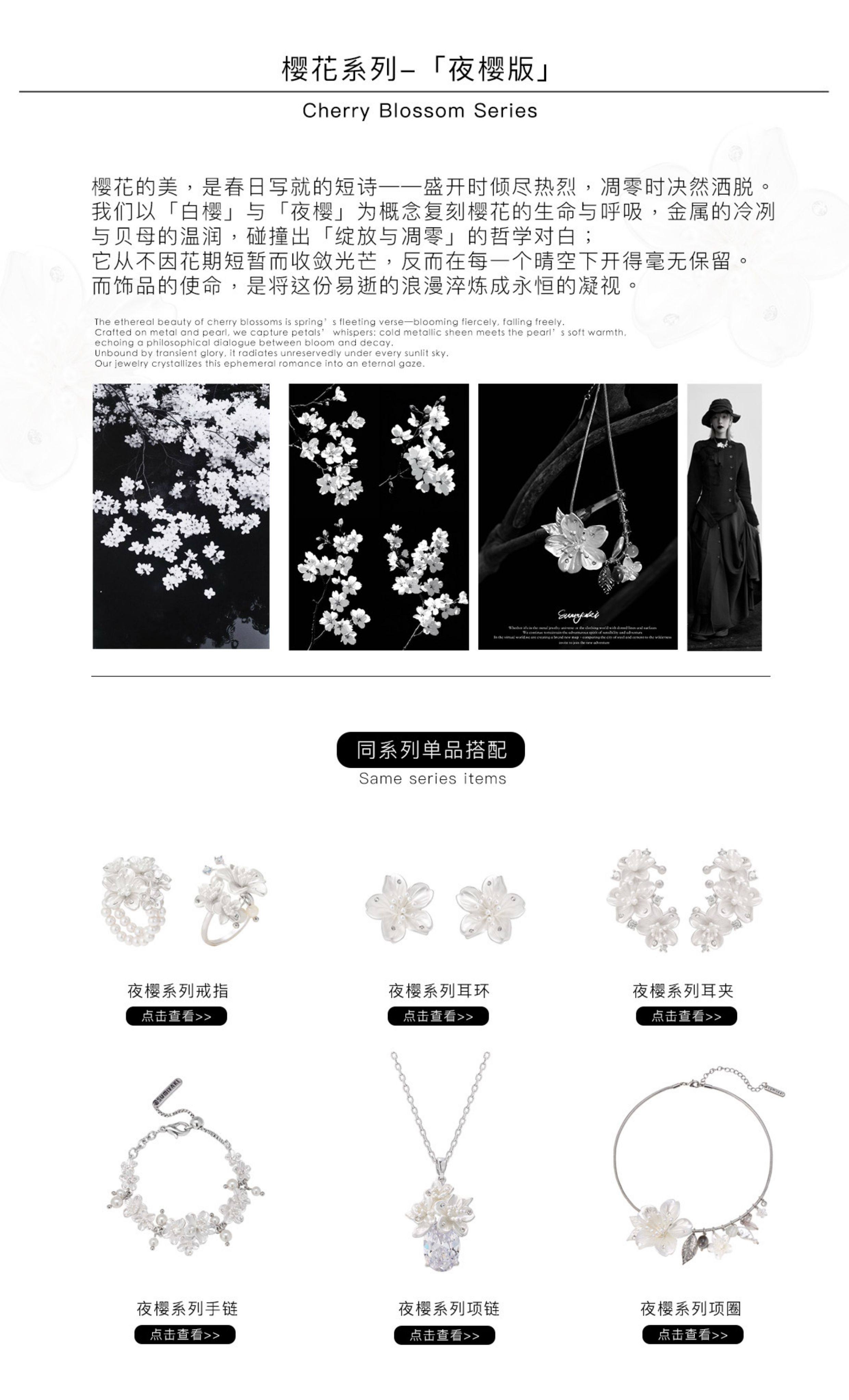 [Celebrity Style] Sumiyaki Night Cherry Series Sakura Multi-Layer Ring with Floral Design and High-End Feel