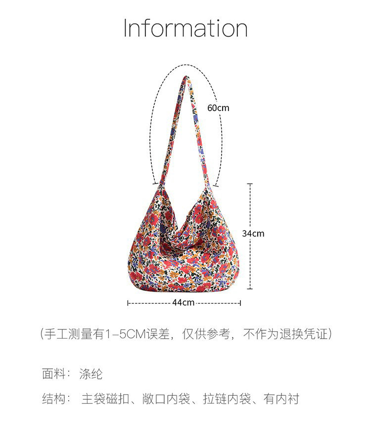 Zhang Ruonan's Same Floral Canvas Bag, 2025 Spring New Style, Korean ins Shoulder Bag, Korean Style Lazy Crossbody Bag