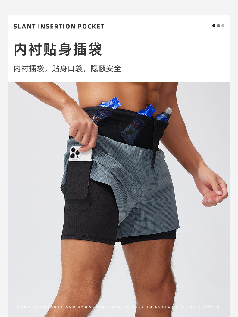 Men's Summer Cross-Country Running Shorts Marathon Fitness Basketball Shorts Double-Layer Fake Two-Piece Outdoor Training Pants