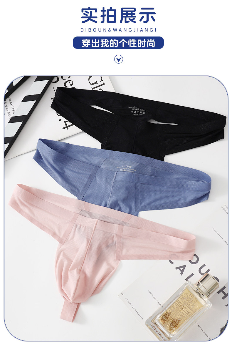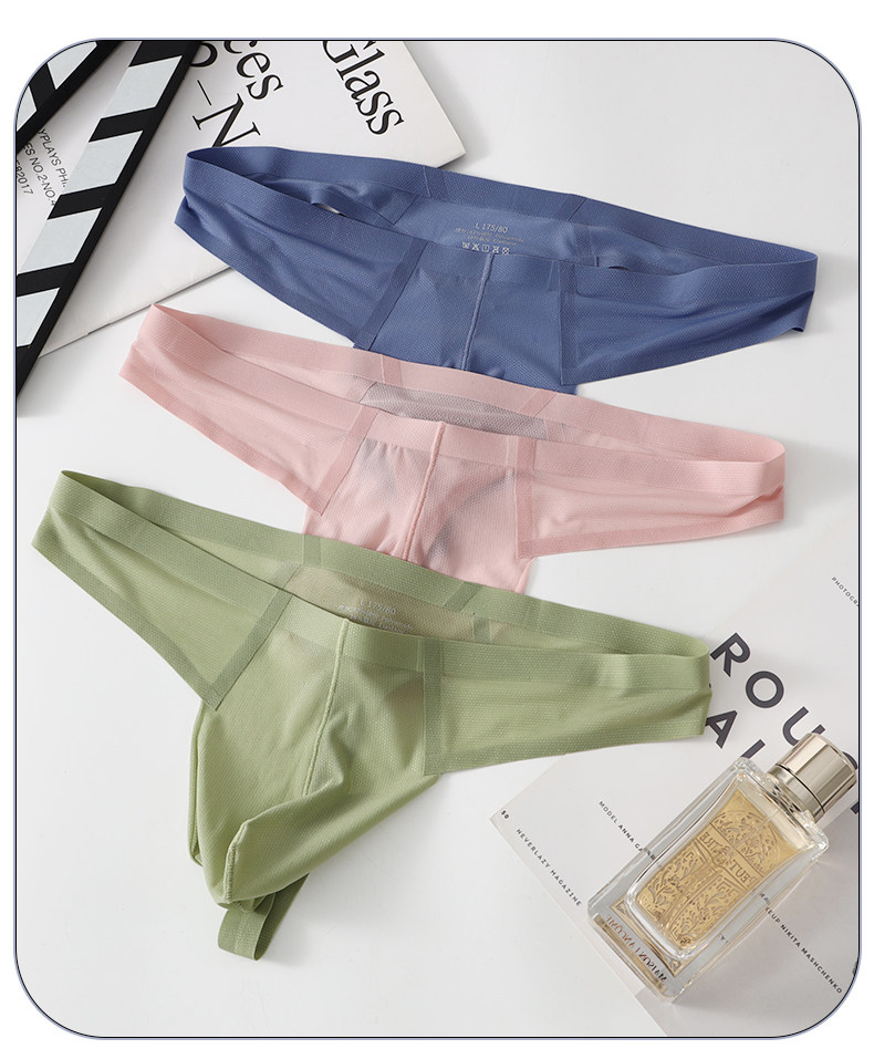 Summer Low-Rise Men's Underwear, Sexy Quick-Drying Breathable T-Back, Ice Silk Seamless One-Piece Thong