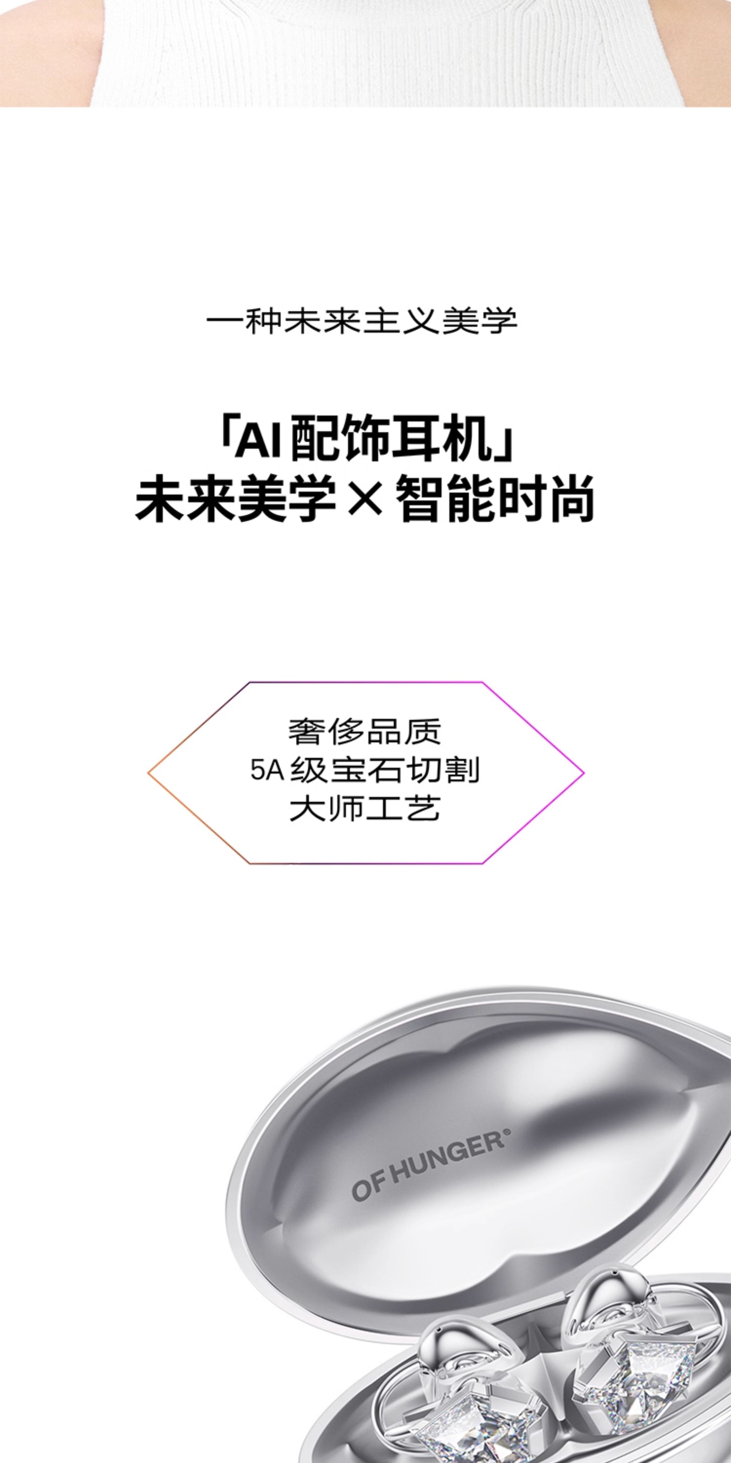 OF HUNGER Limited Edition White Zircon Digital Gem AI Accessories Headset Bluetooth OHClip Xi Mengyao Same