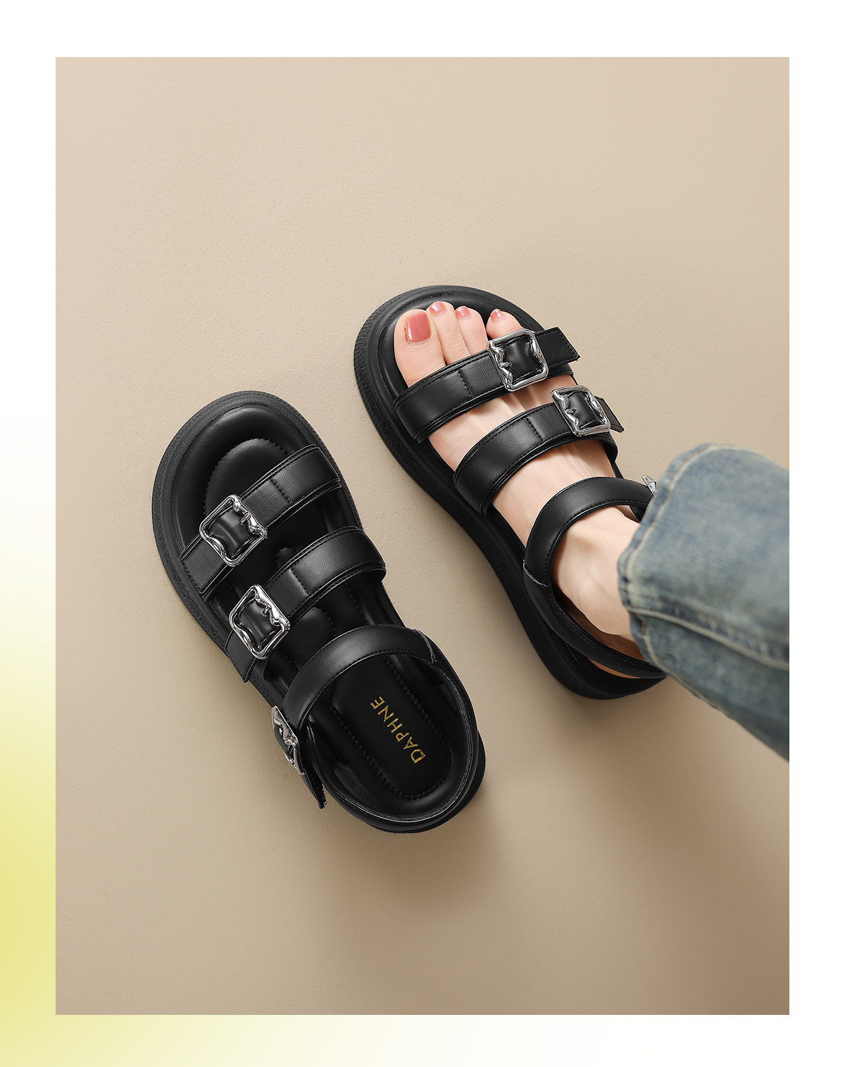 Daphne Thick-Soled Sandals for Women 2025 New Sports Casual Beach Shoes Summer Black Sandals Roman Women's Shoes