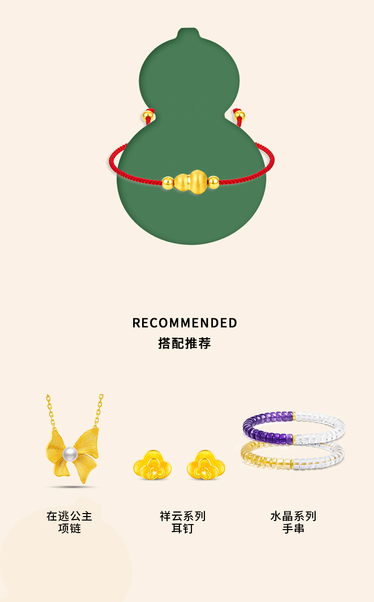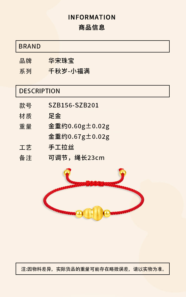 Huasong Jewelry [Little Fortune] Pure Gold 999 Gourd Small Gold Beads Red String Gold Bracelet Braided Bracelet for Women