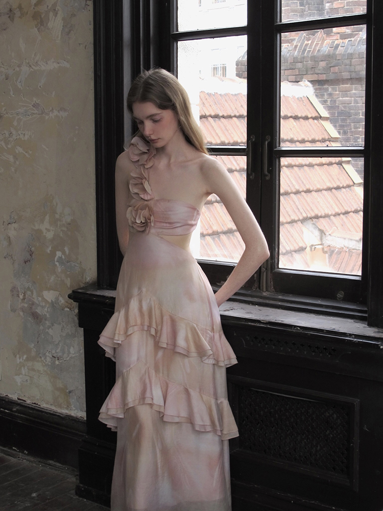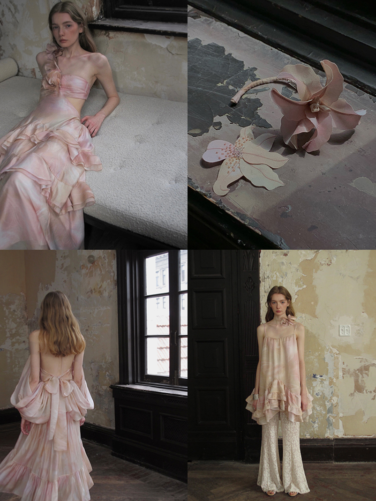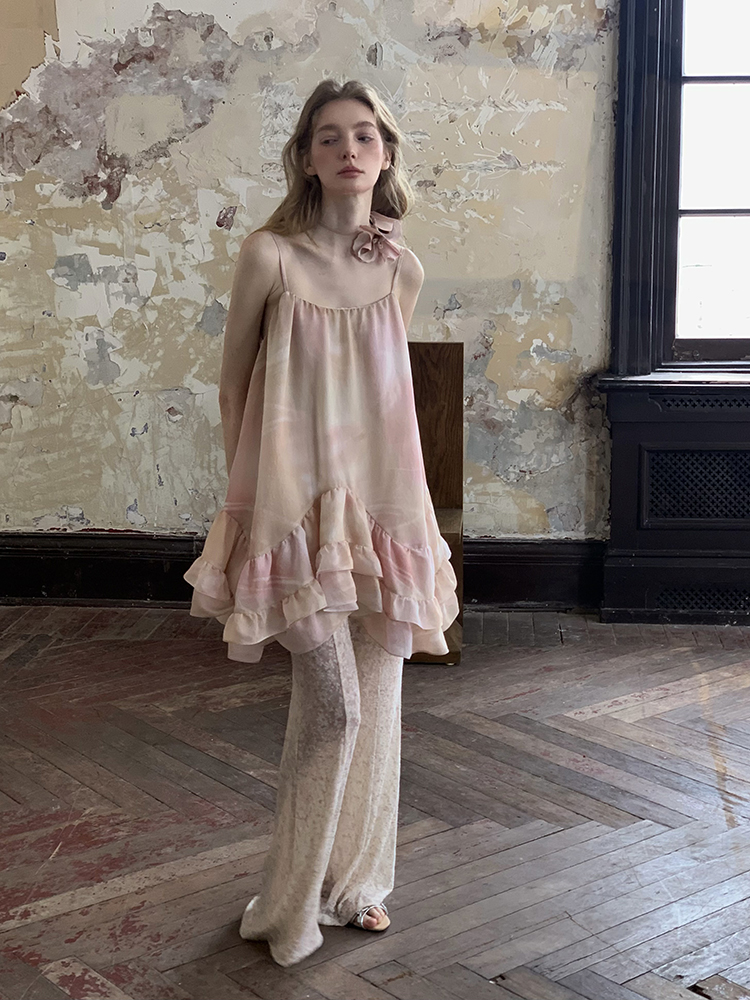 Cariedo Flower Language Fairy Series Cloud Mist Gauze Three-Dimensional Flower Gradient Suspender Dress/Top Multiple Versions