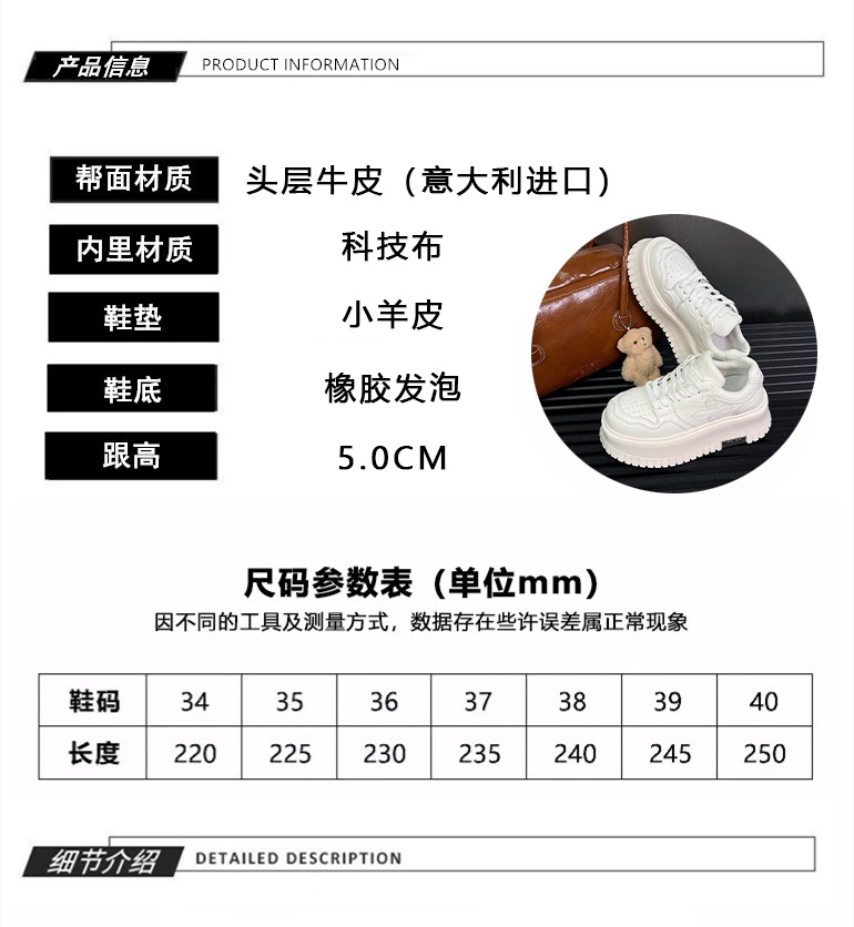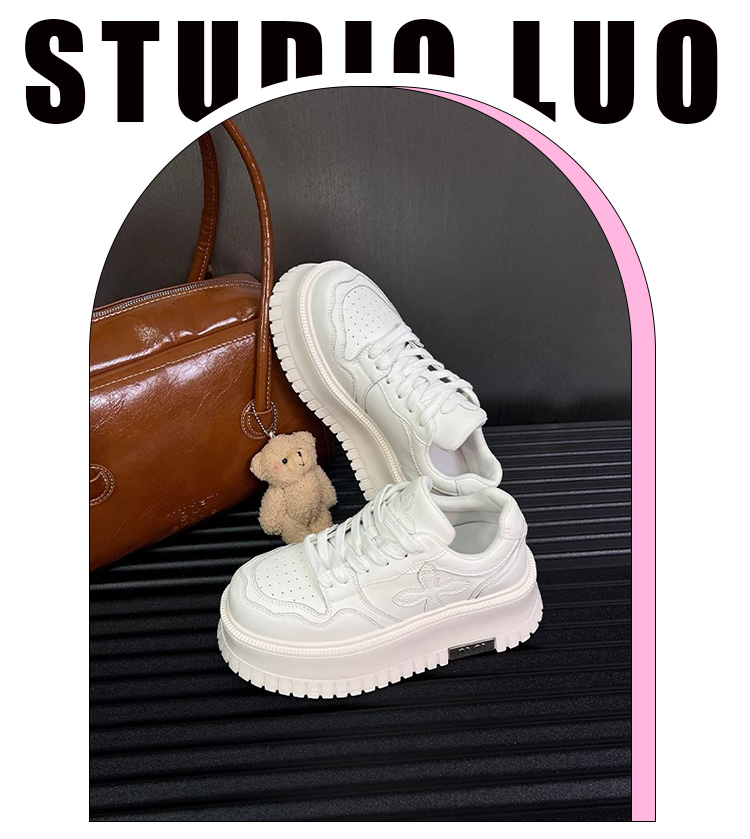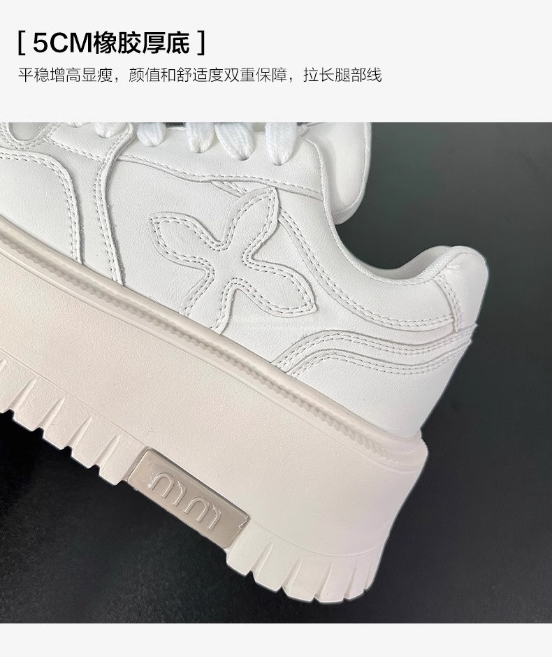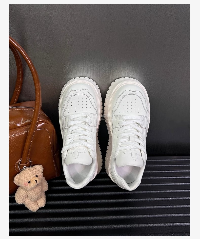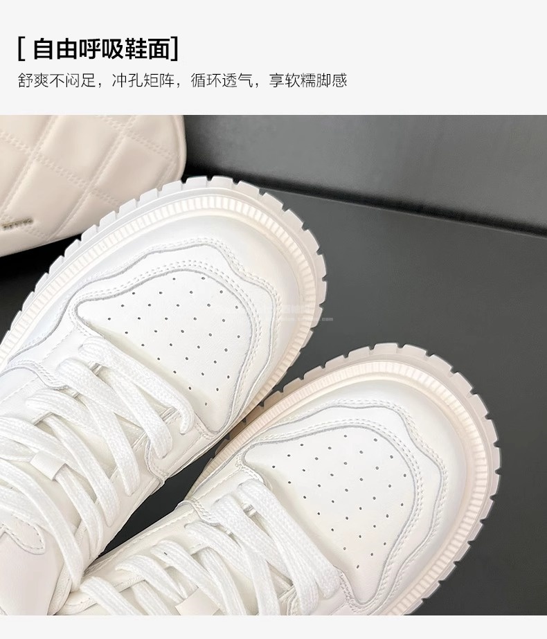 Hong Kong Round-Toe Thick-Soled White Sneakers for Women 2025 Spring and Summer New Fashion Comfortable Versatile Casual Lightweight Platform Shoes