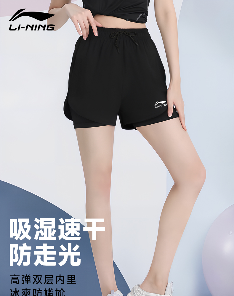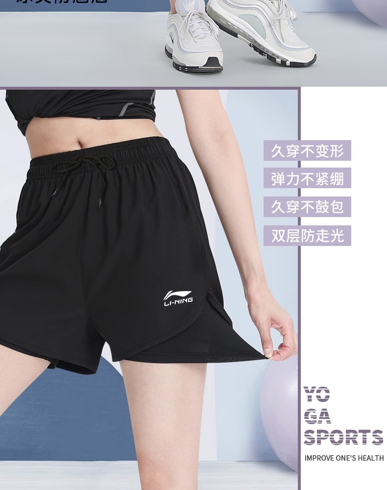 Li Ning Sports shorts Women's Fashion Tape Fake Two-Piece Quick-drying shorts Summer Women's Fitness Yoga Running Special
