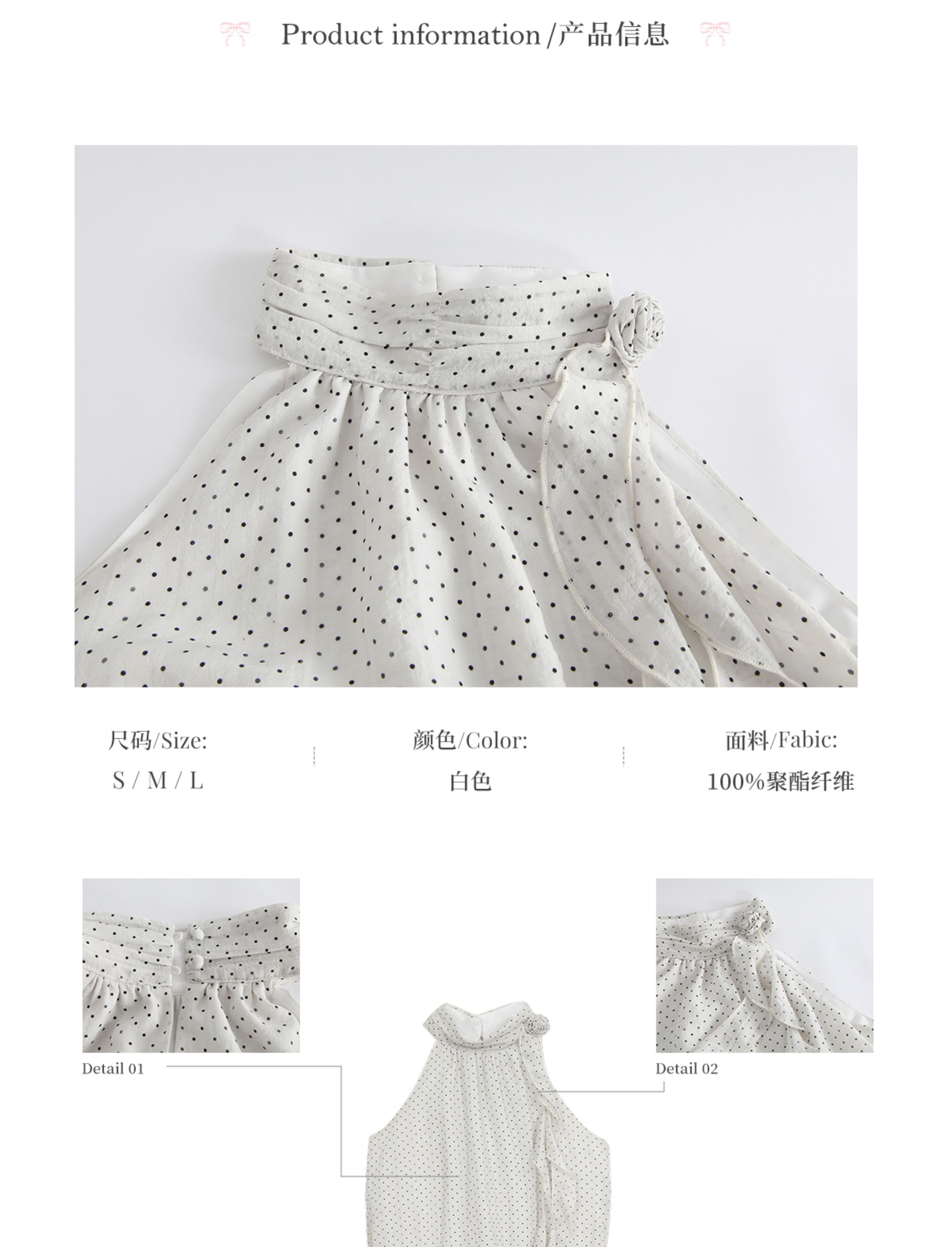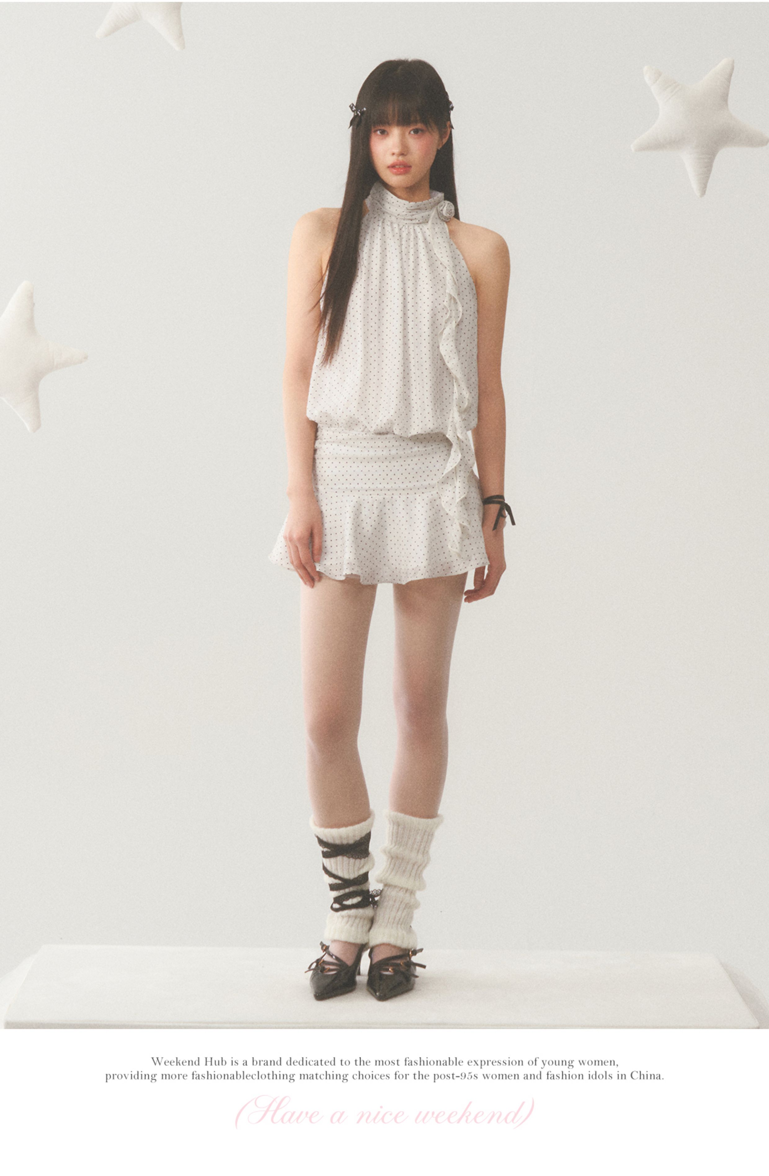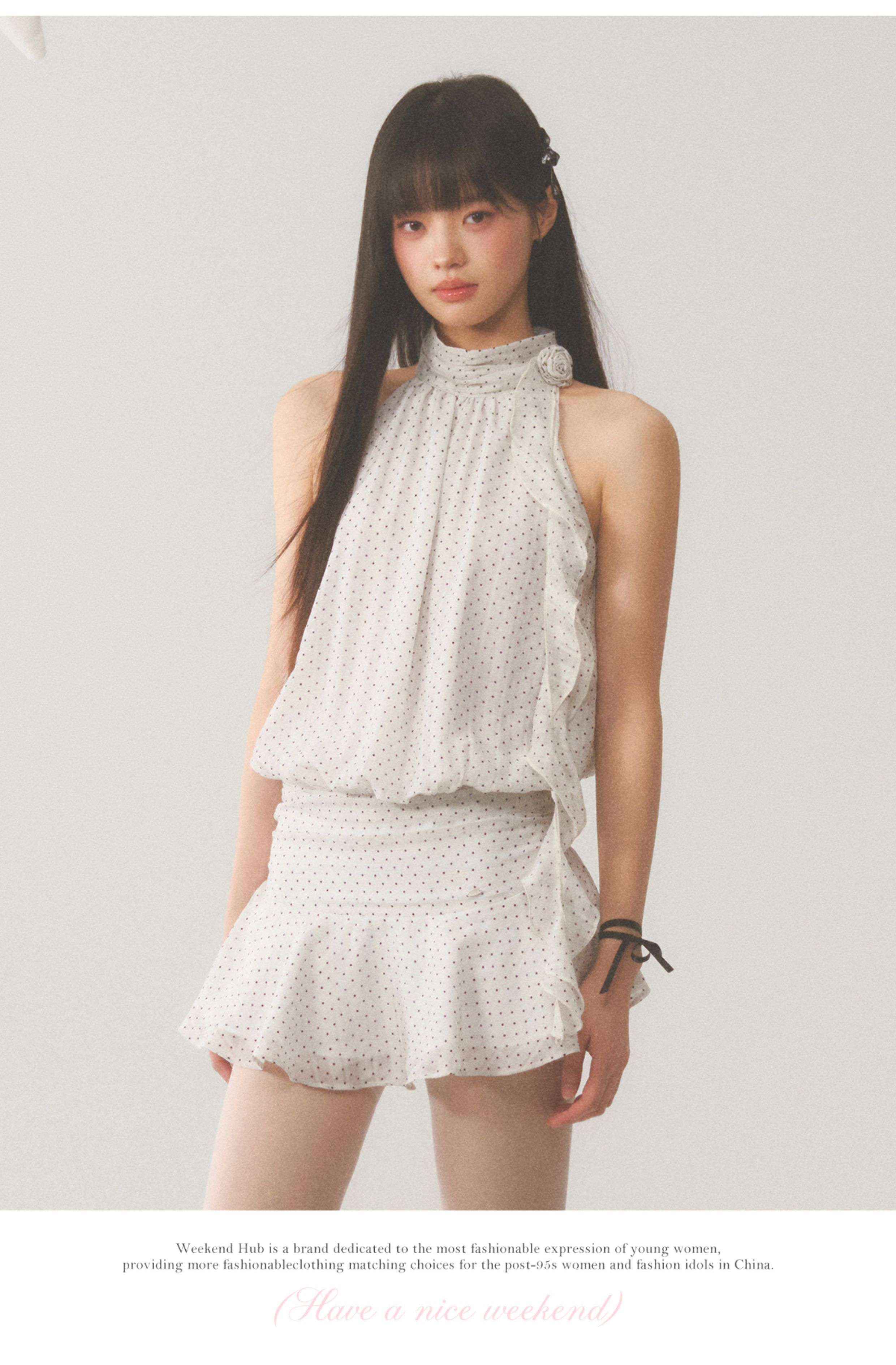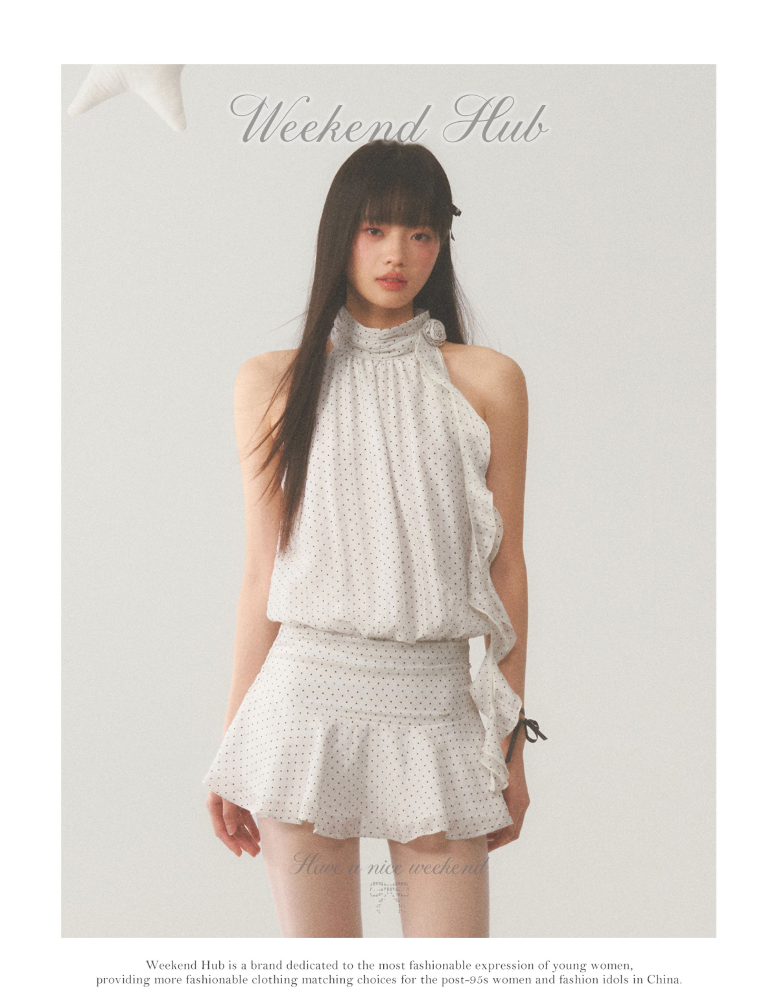 Weekendhub Halter Neck Dress Women's Summer Sleeveless Short Skirt French Sexy Design Elegant Polka Dot Skirt