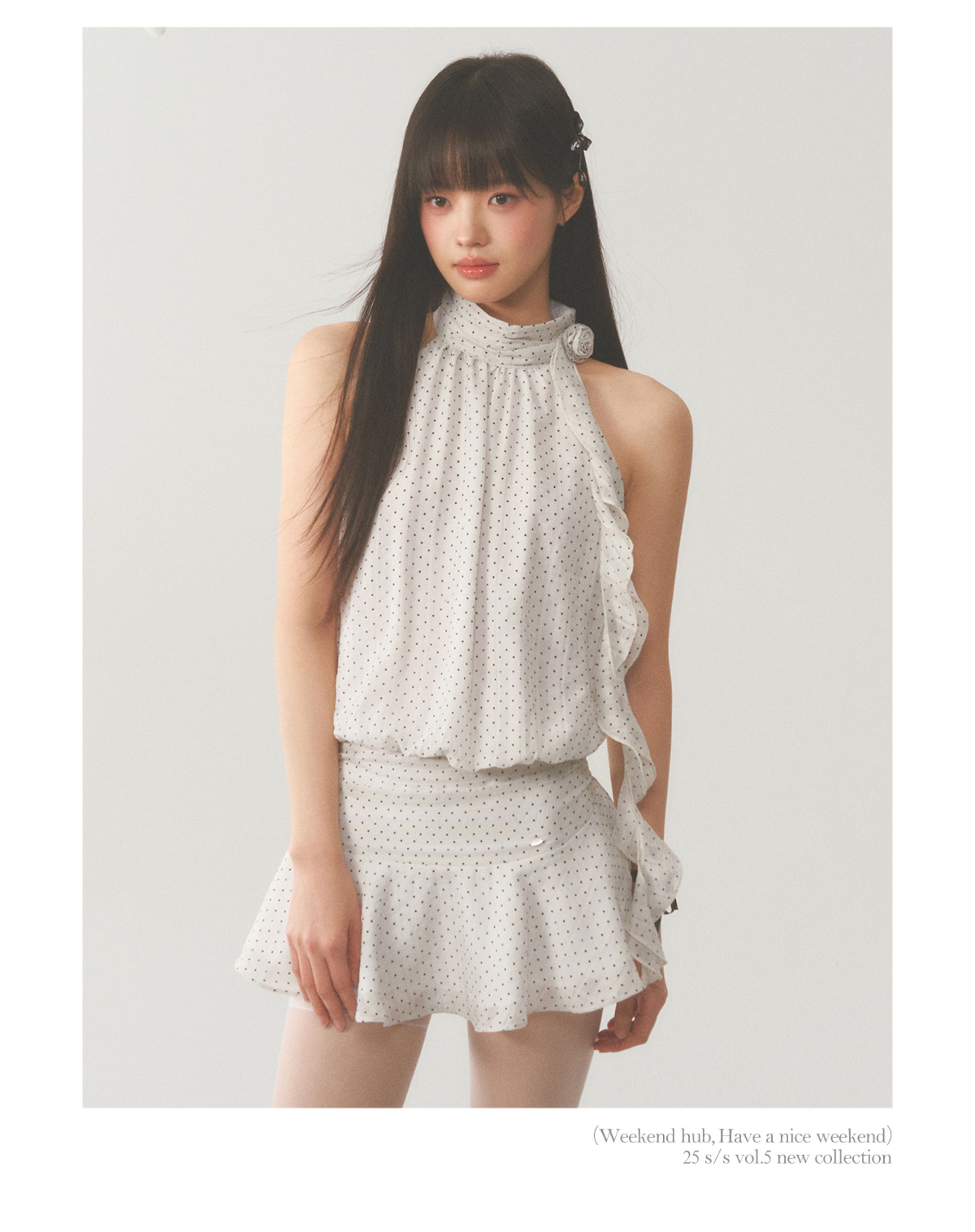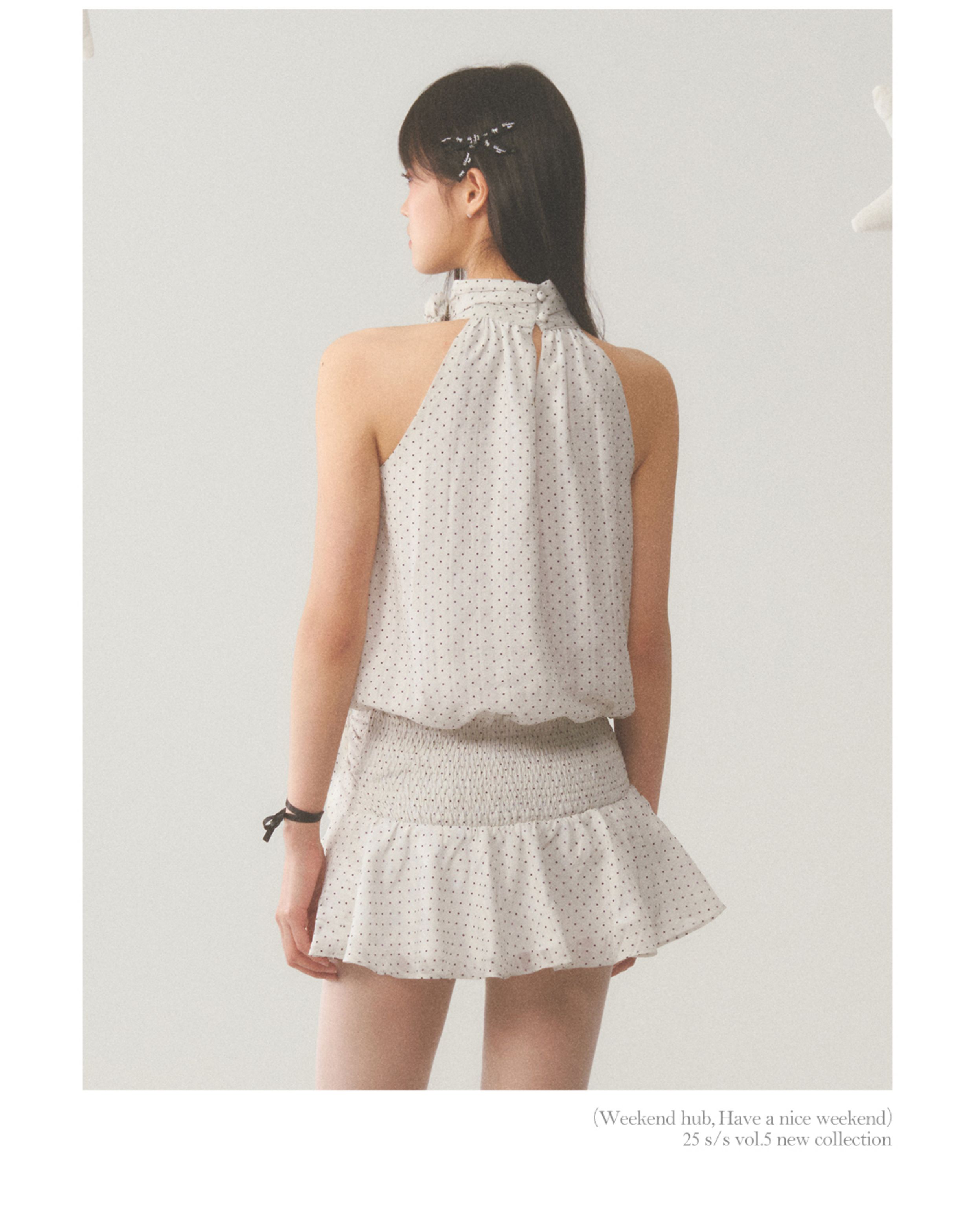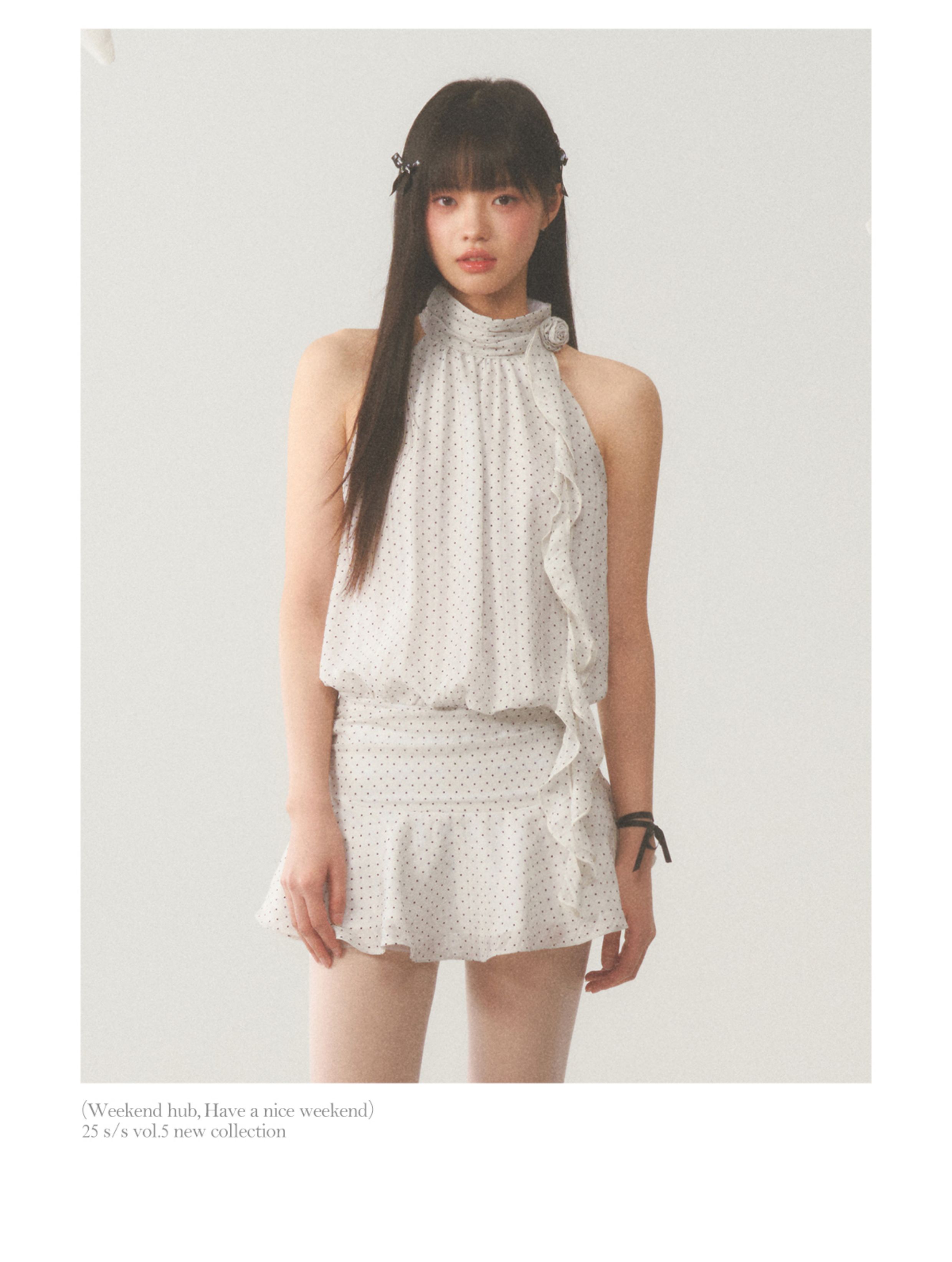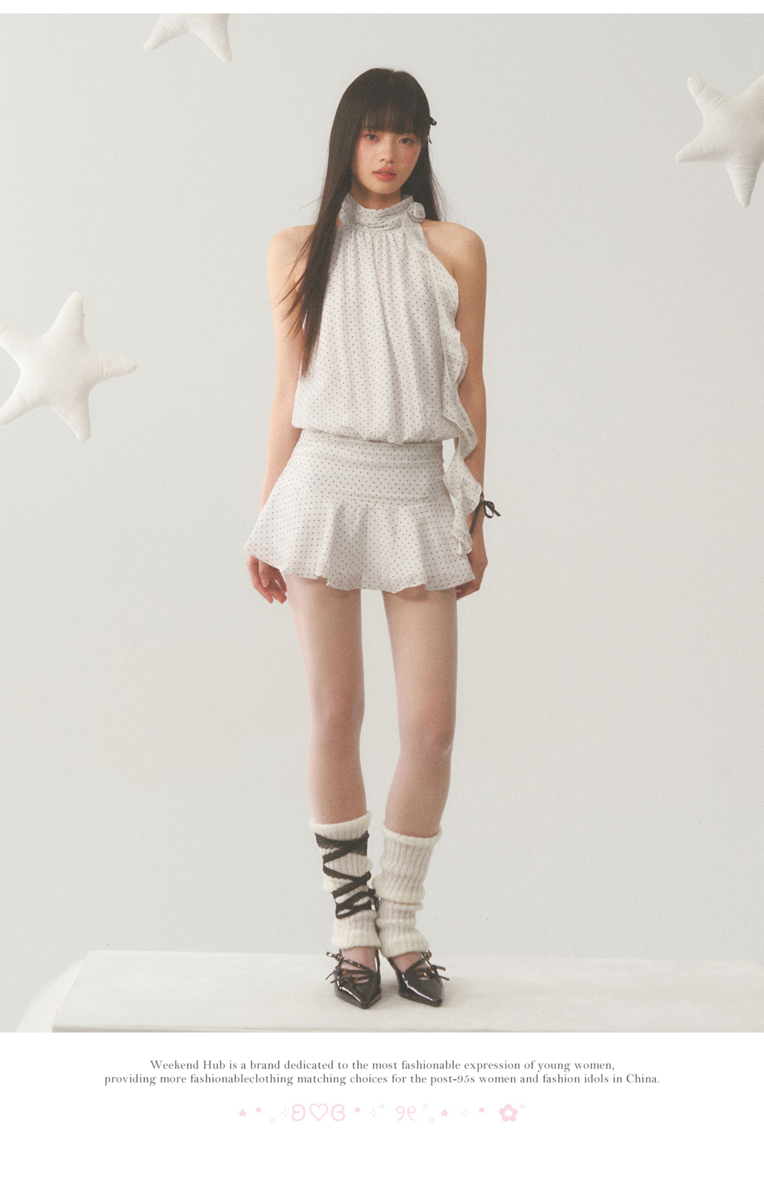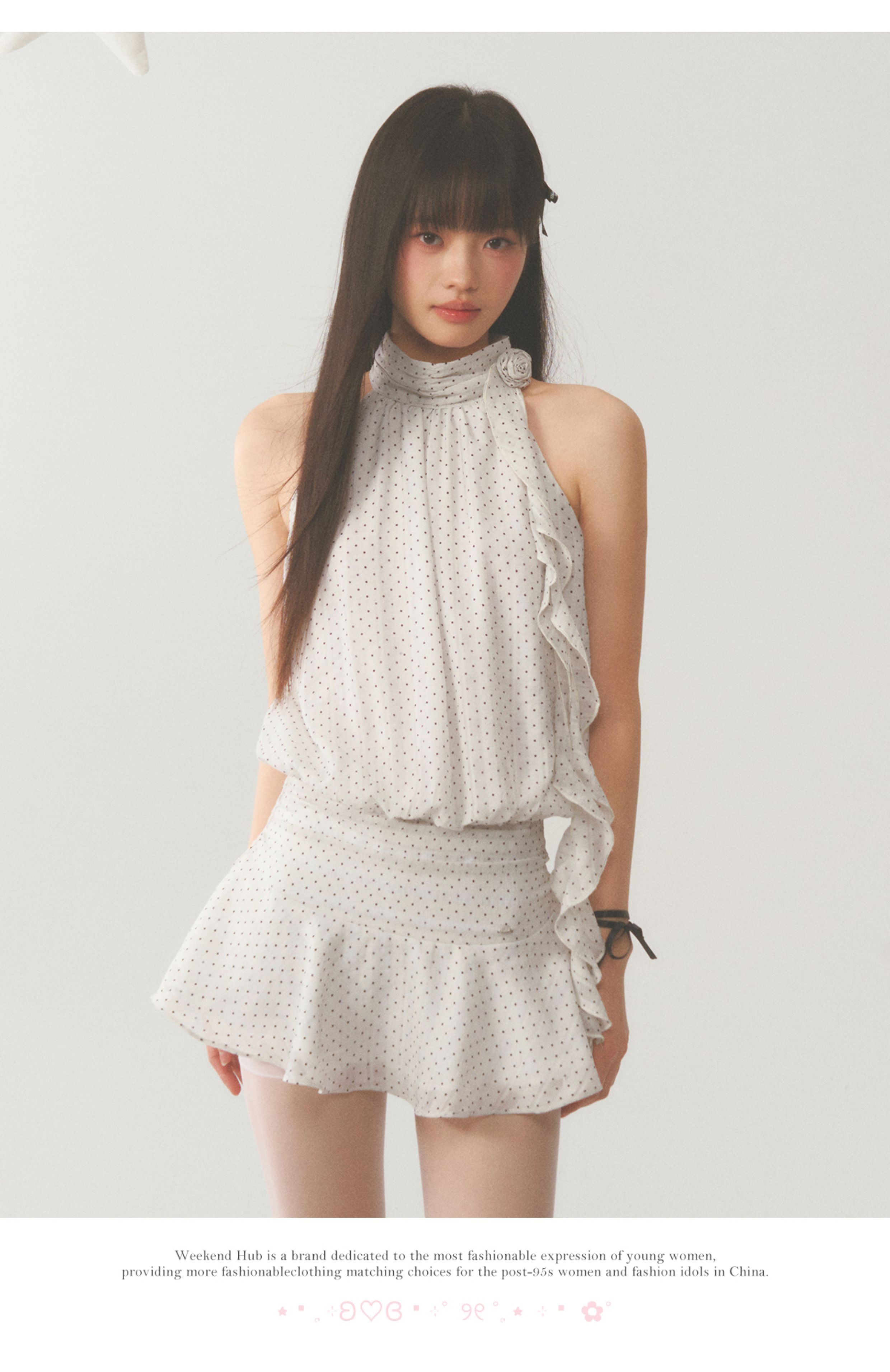 Weekendhub Halter Neck Dress Women's Summer Sleeveless Short Skirt French Sexy Design Elegant Polka Dot Skirt