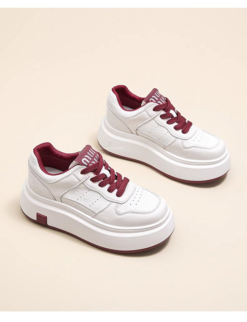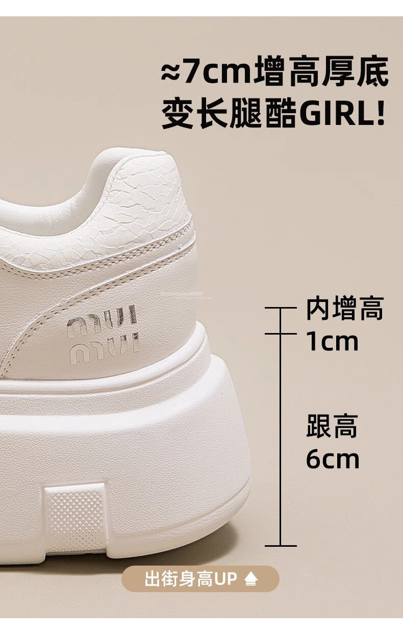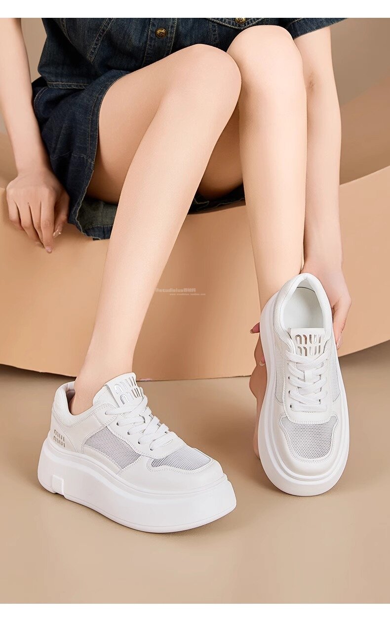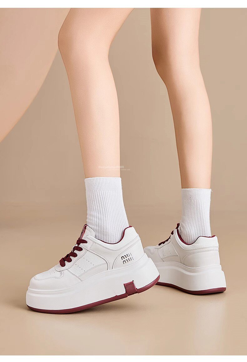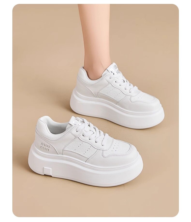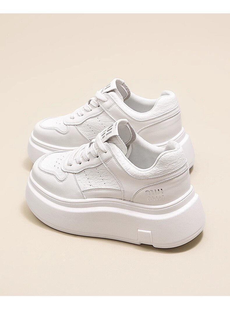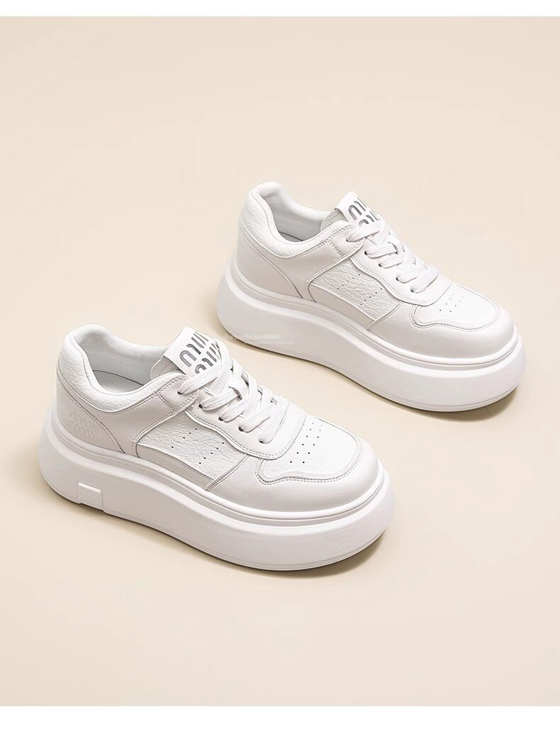 Hong Kong Style Genuine Leather Platform Thick-Soled White Sneakers for Women 2026 Spring and Summer New Fashion Lace-Up Sneakers for Petite Women