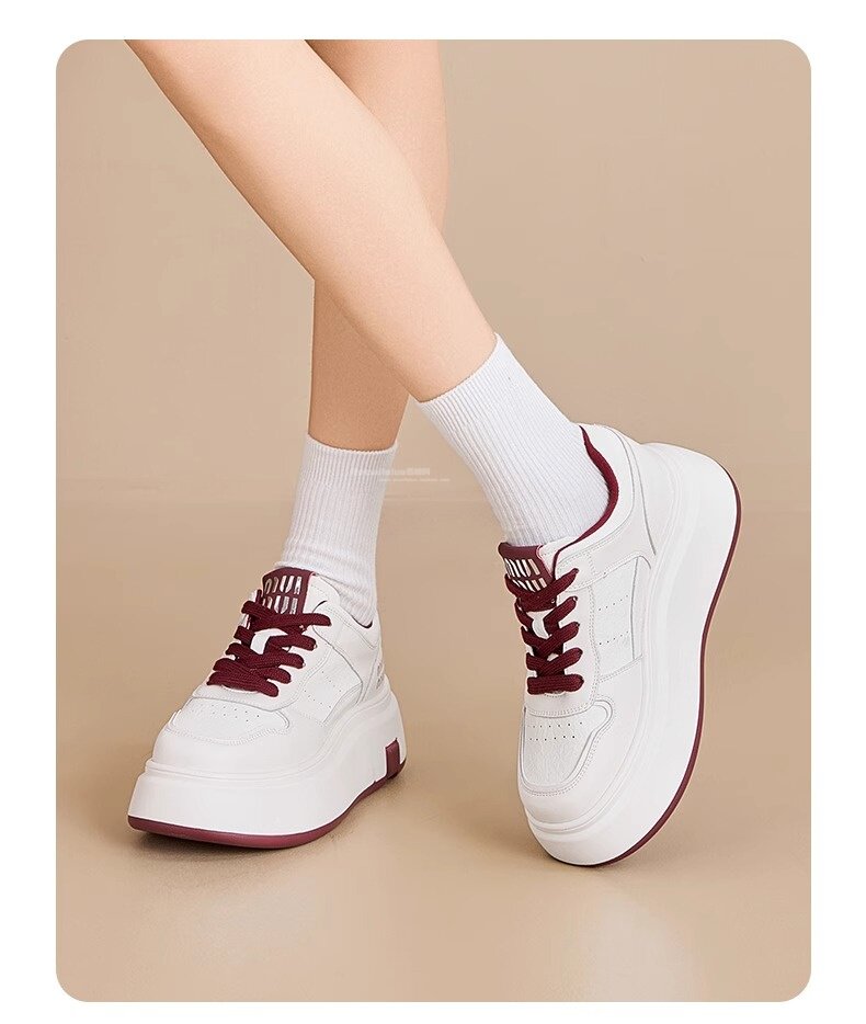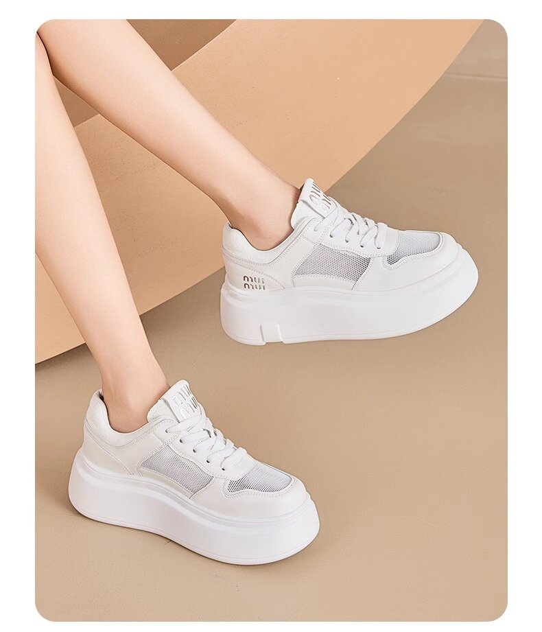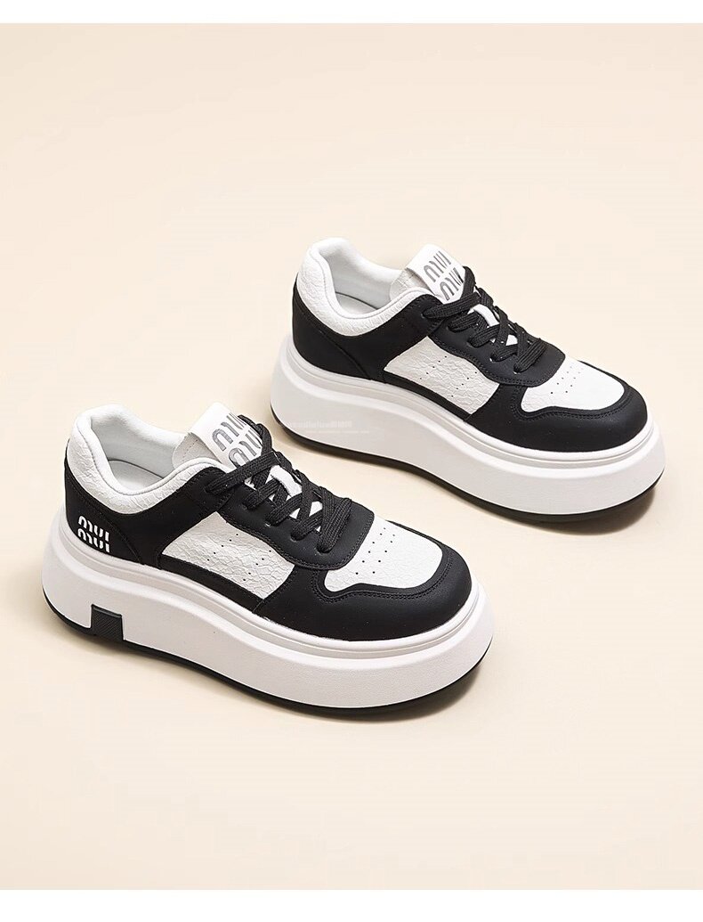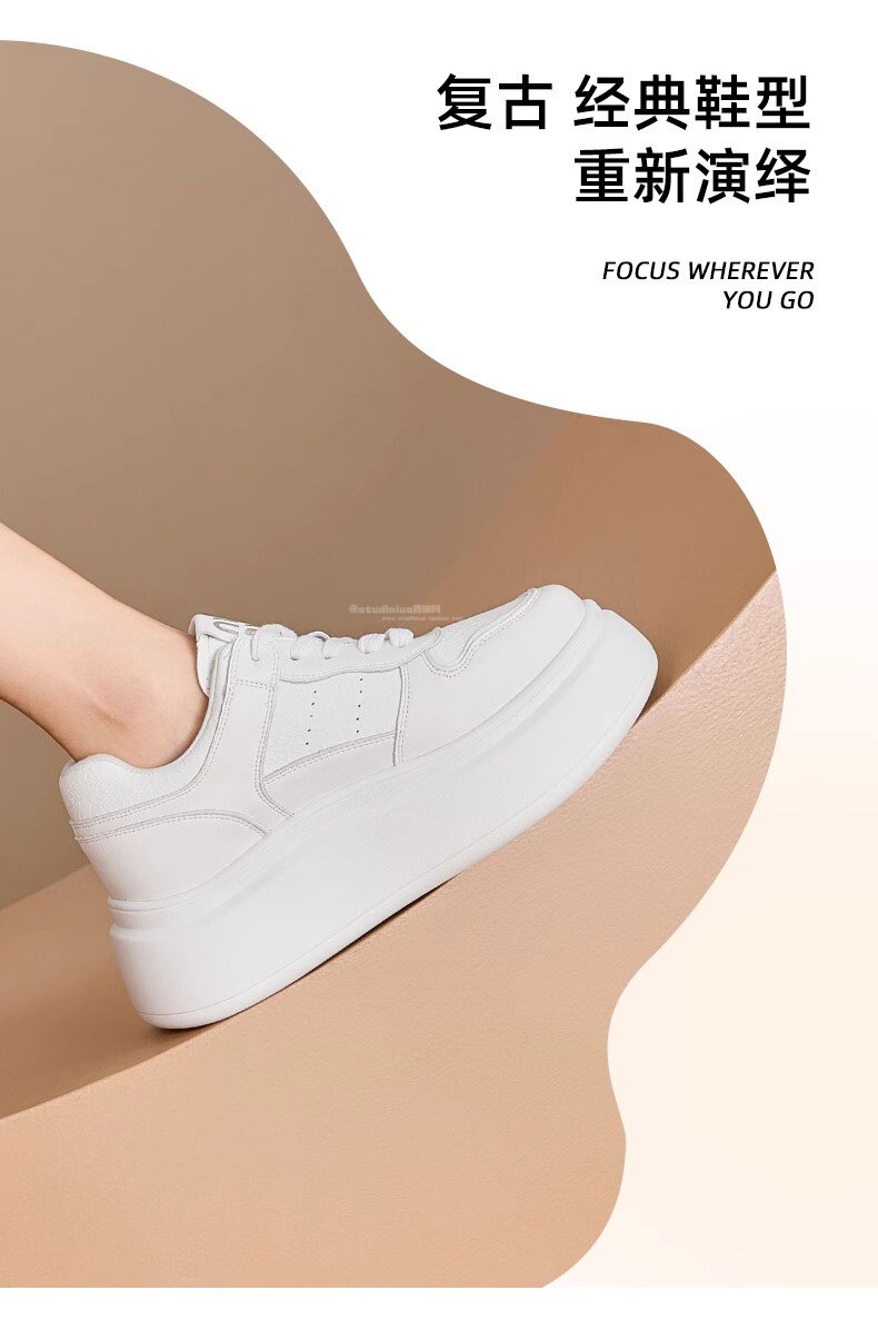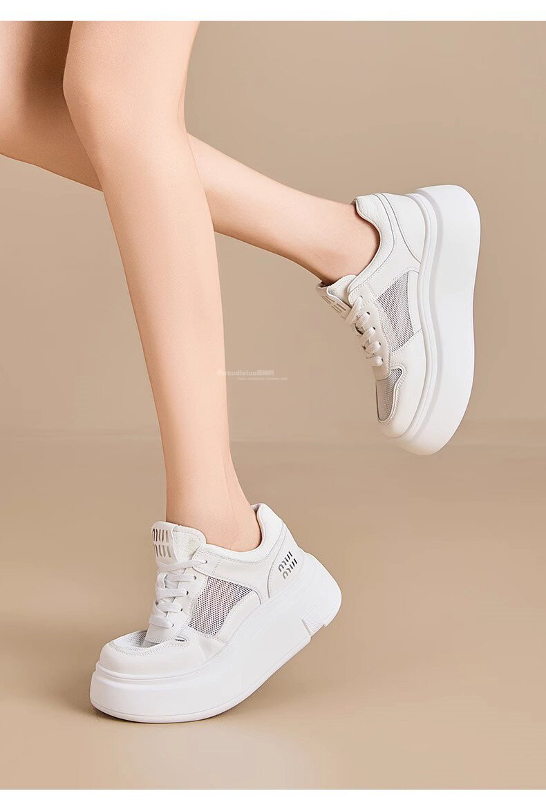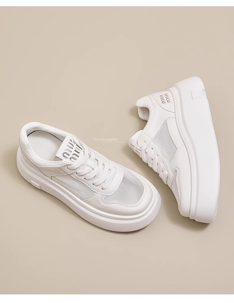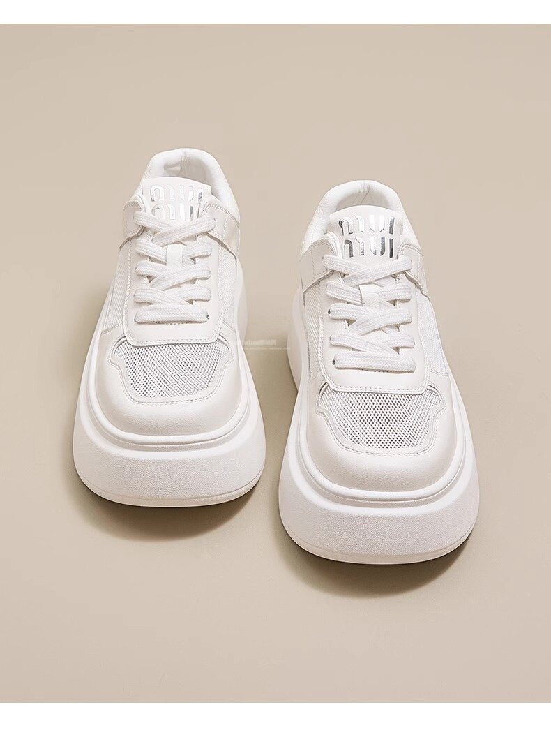 Hong Kong Style Genuine Leather Platform Thick-Soled White Sneakers for Women 2026 Spring and Summer New Fashion Lace-Up Sneakers for Petite Women