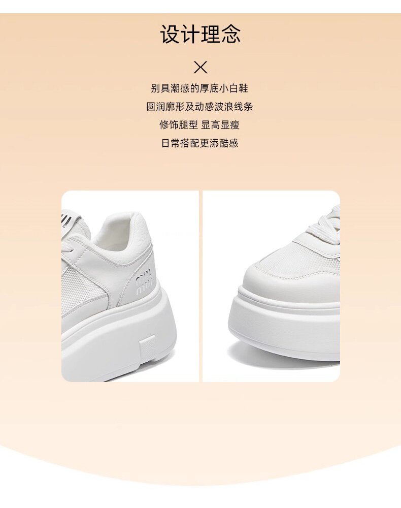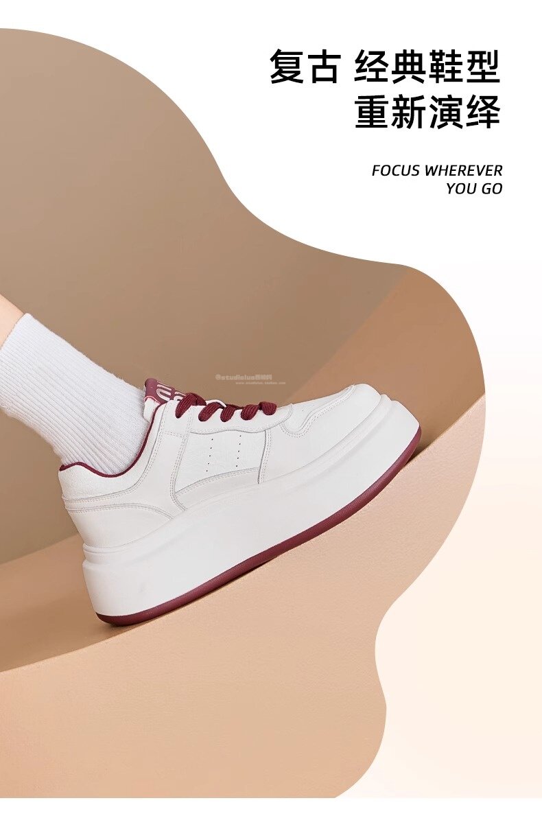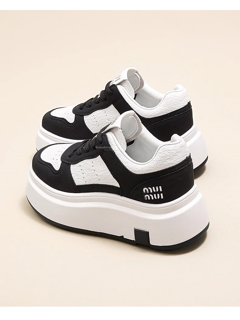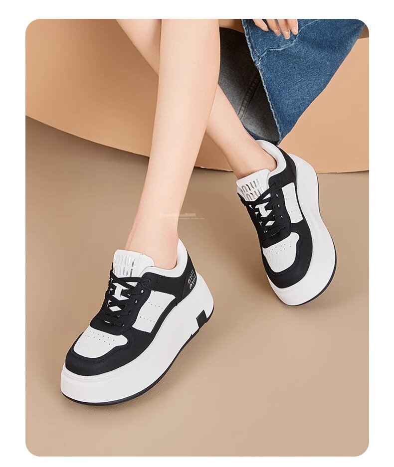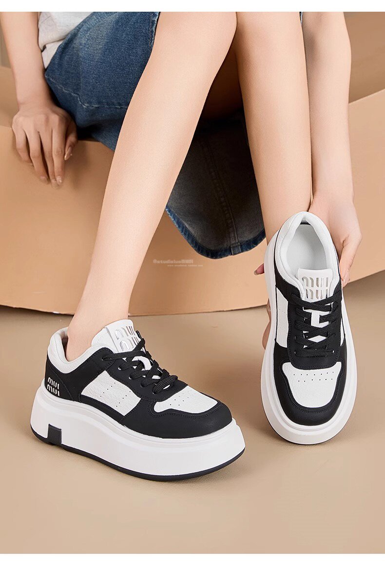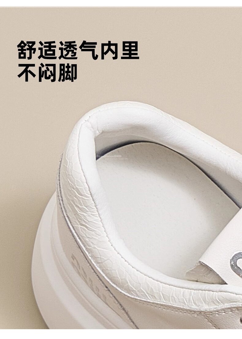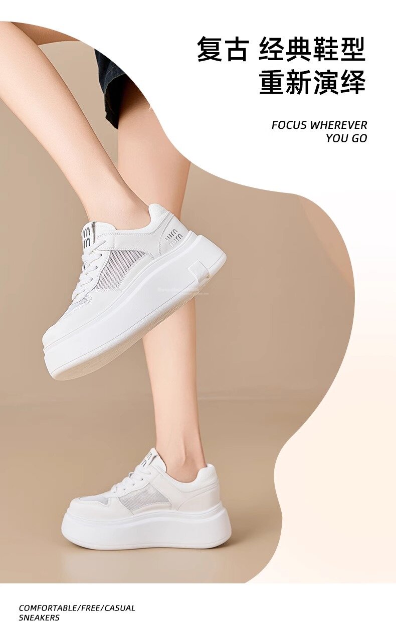 Hong Kong Style Genuine Leather Platform Thick-Soled White Sneakers for Women 2026 Spring and Summer New Fashion Lace-Up Sneakers for Petite Women