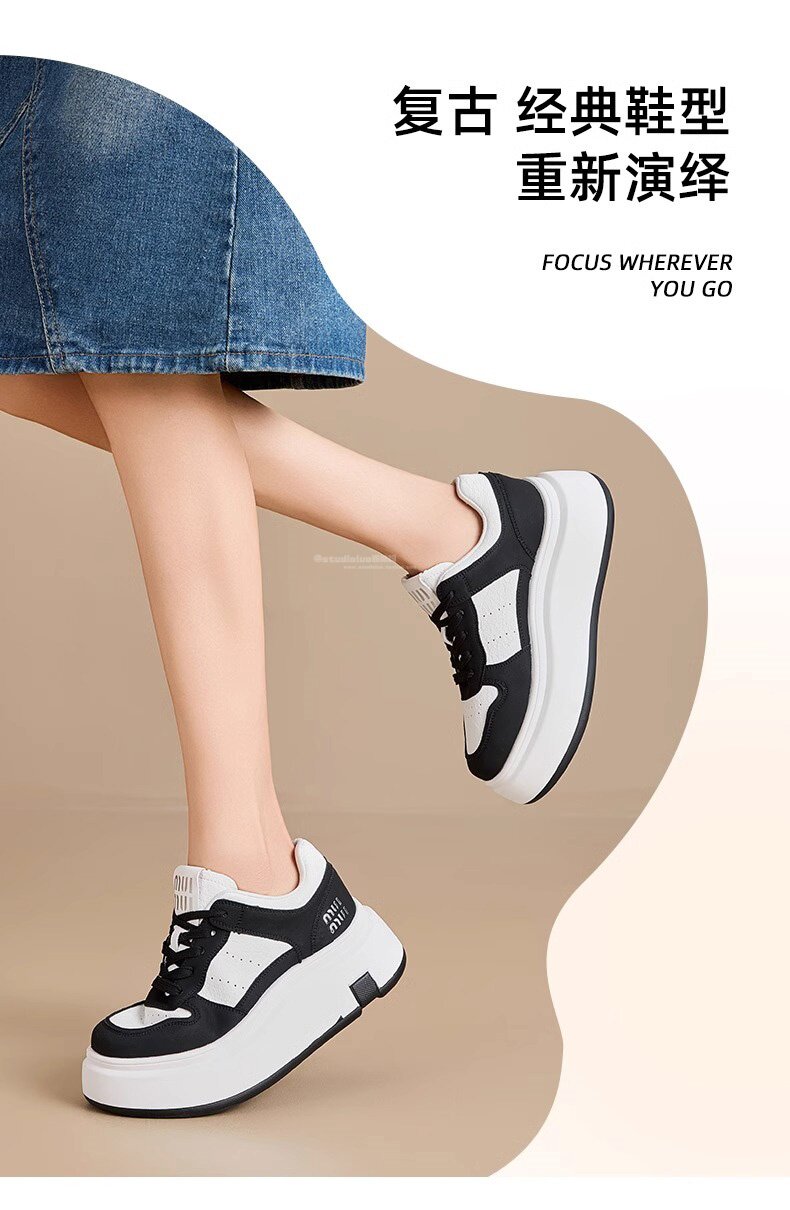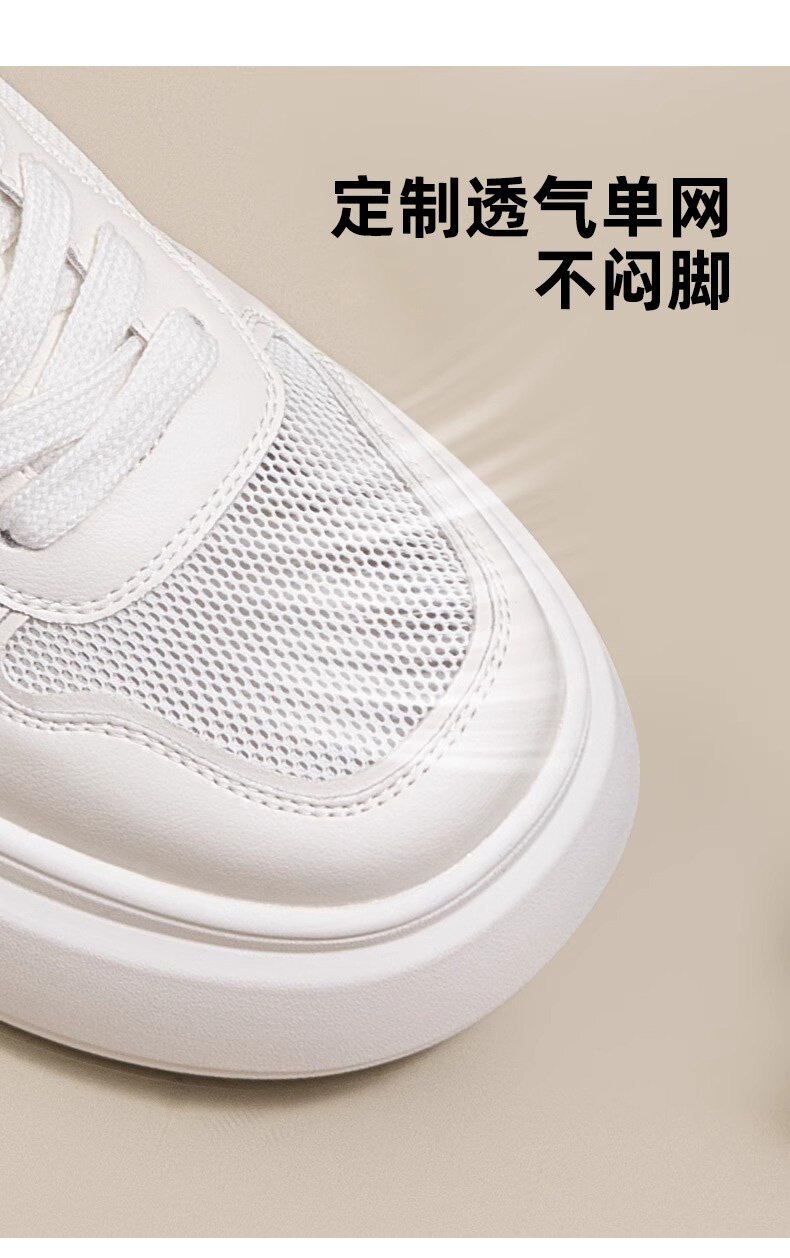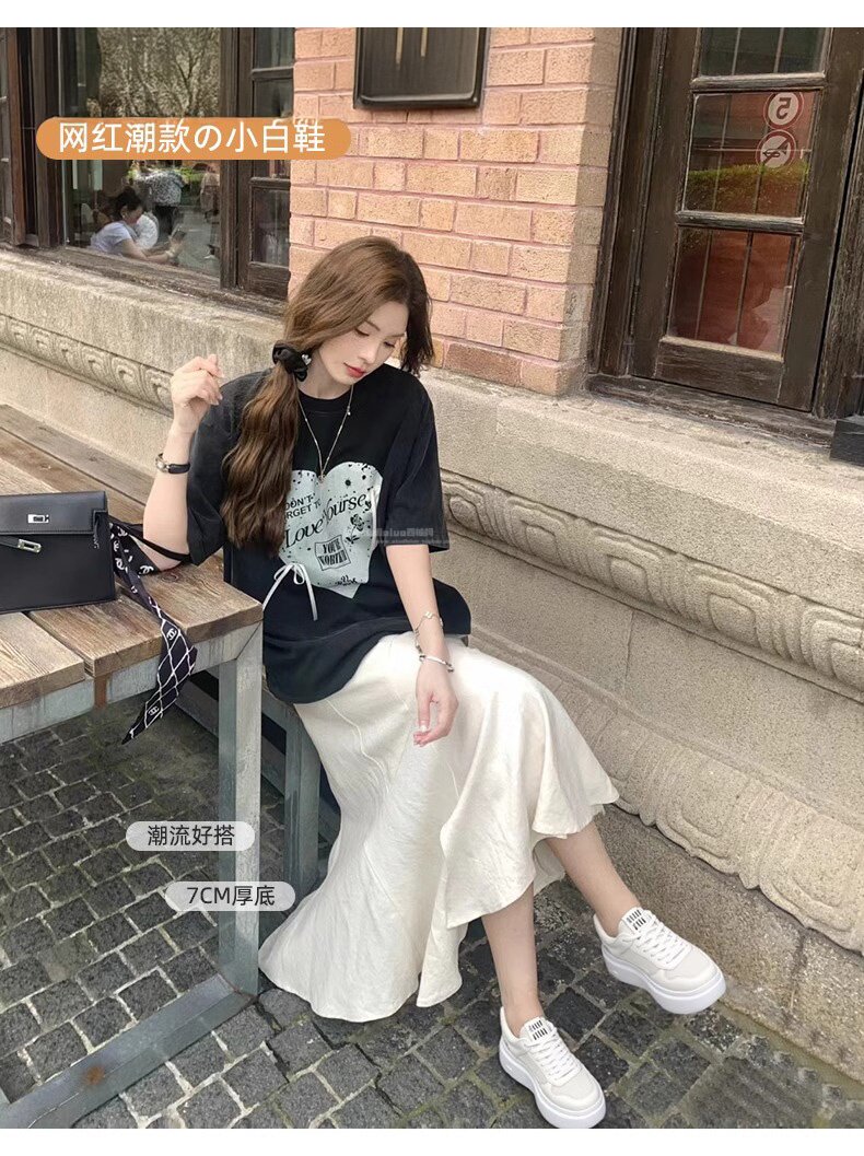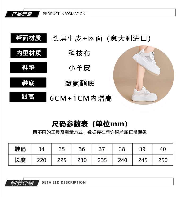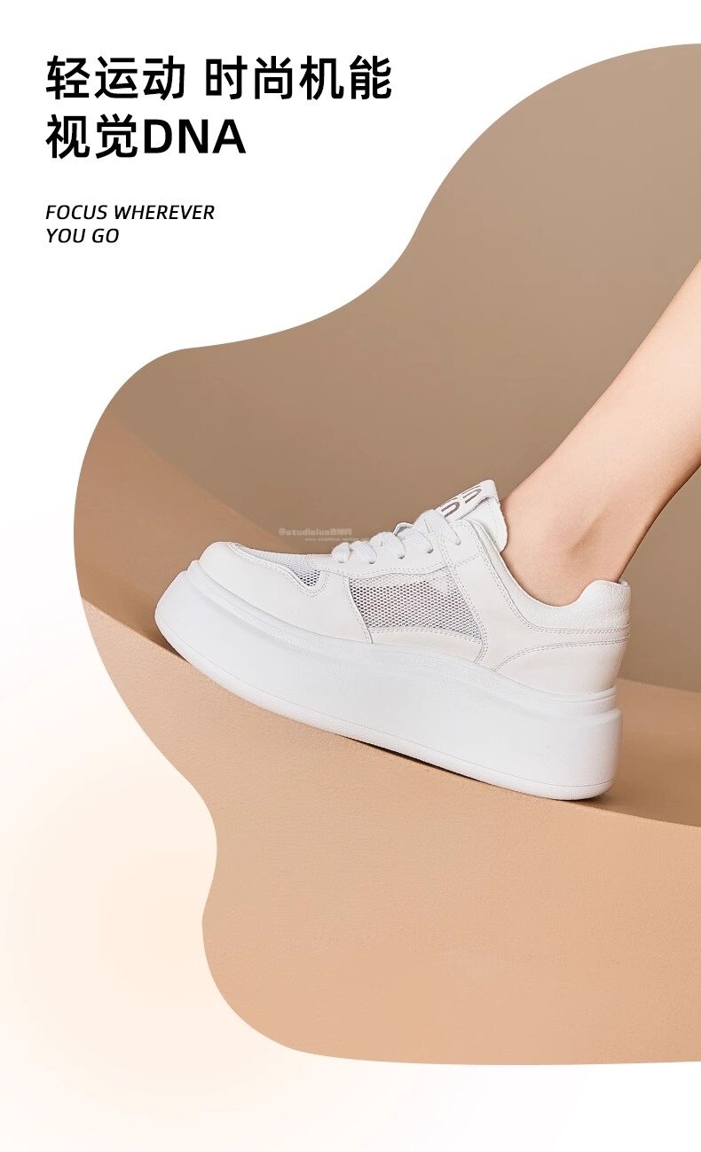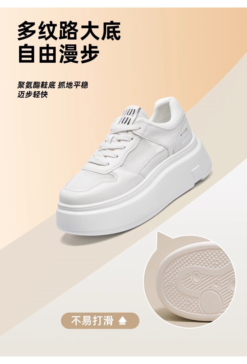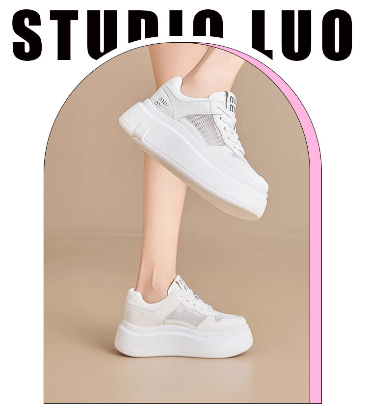 Hong Kong Style Genuine Leather Platform Thick-Soled White Sneakers for Women 2026 Spring and Summer New Fashion Lace-Up Sneakers for Petite Women