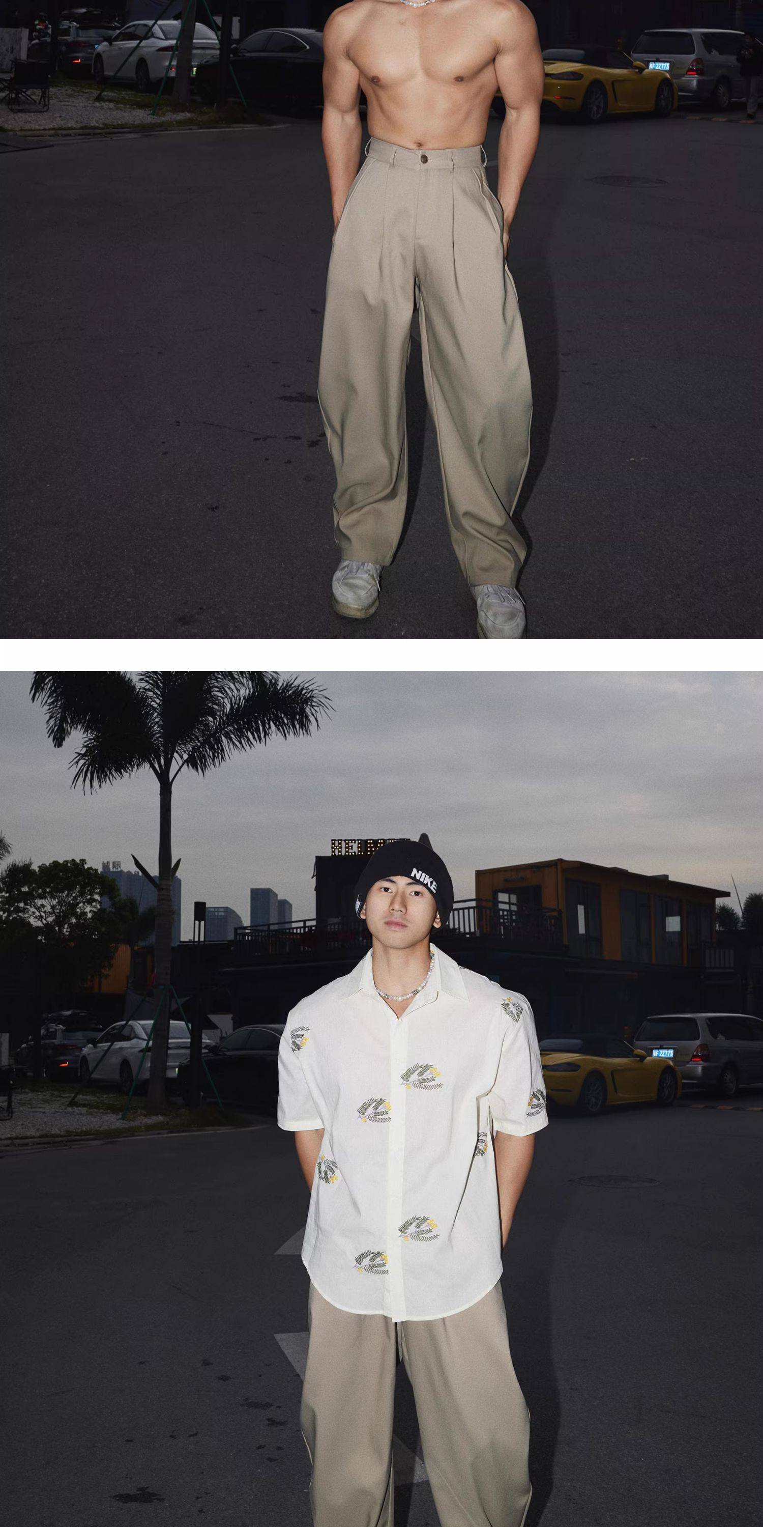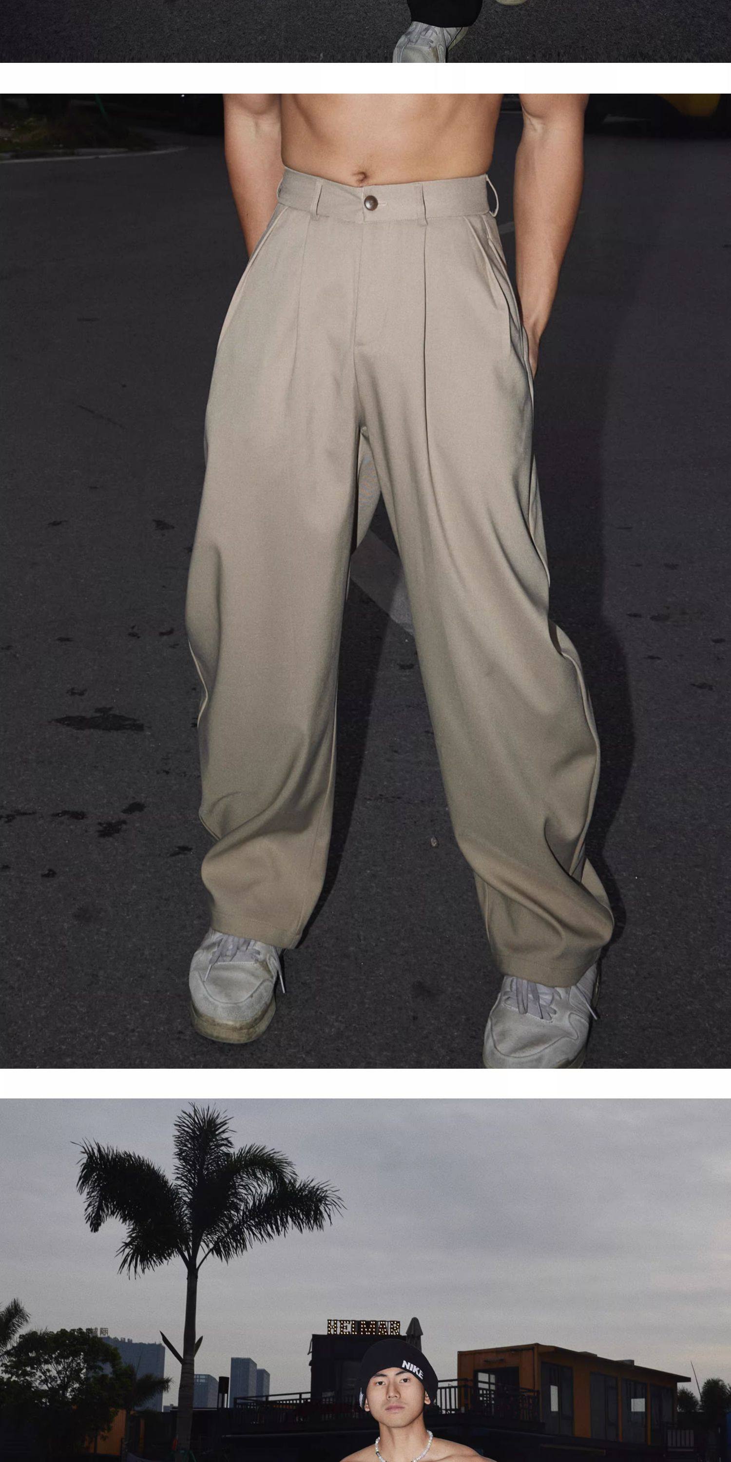 Papaslilmonster American-Style High-End Wide-Leg Pleated Dress Pants for Men, Casual Loose Versatile Trendy Pants
