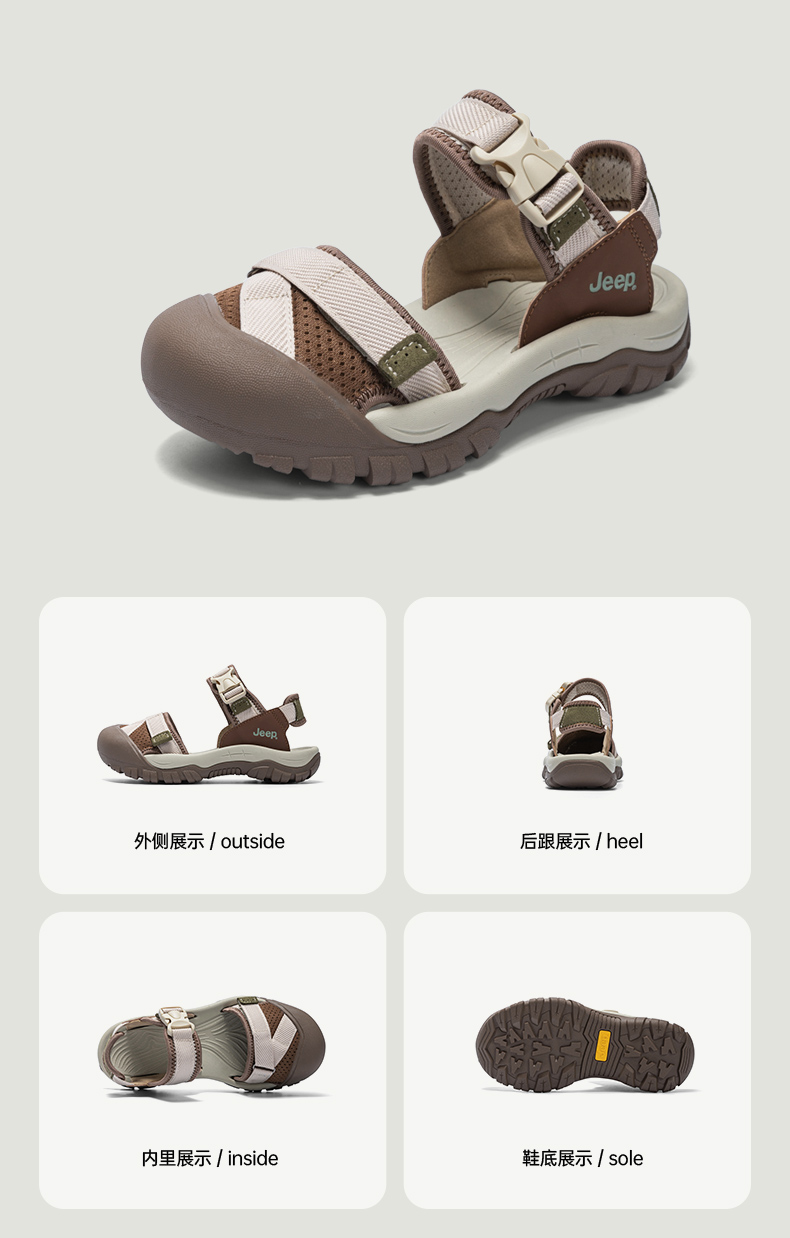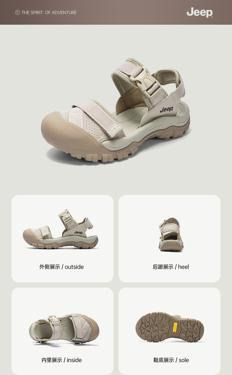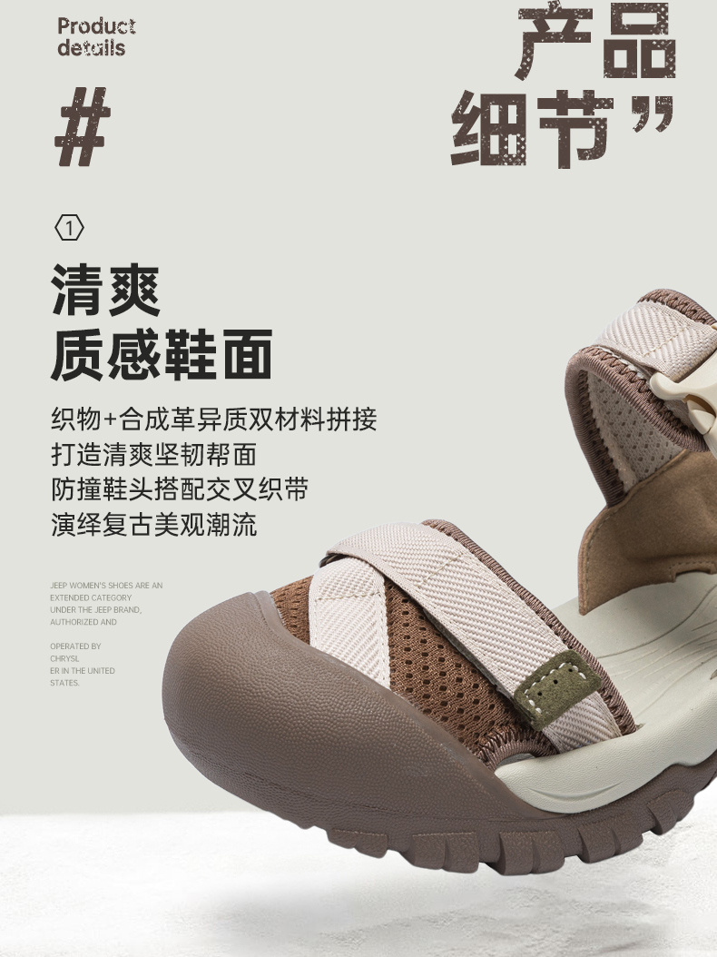 Jeep Sports Sandals for Women 2025 New Summer Closed-Toe Casual Sandals Breathable Hollow Beach Sandals