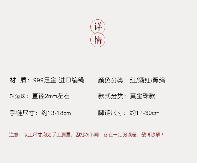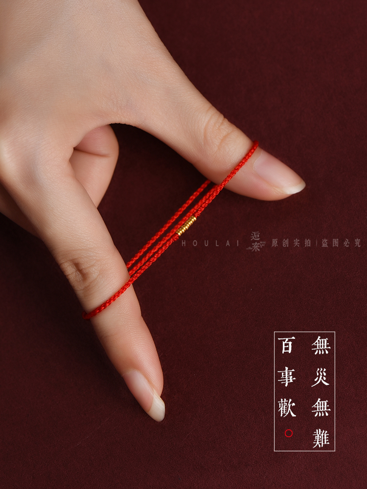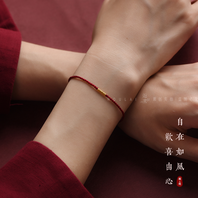 Ultra-Fine 999 Pure Gold Transfer Beads Red String Bracelet Anklet for Men and Women Mini Gold Birth Year Woven Bracelet