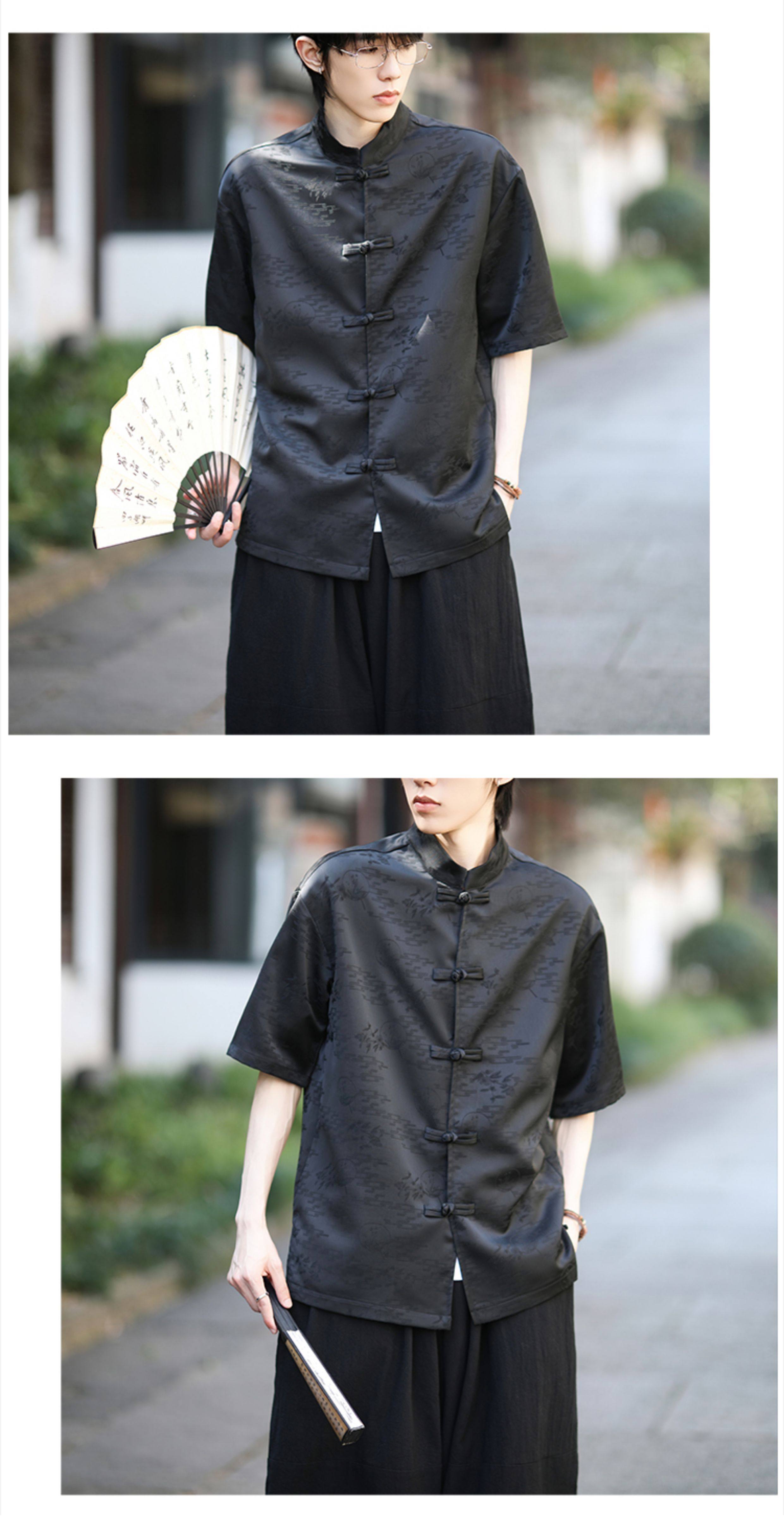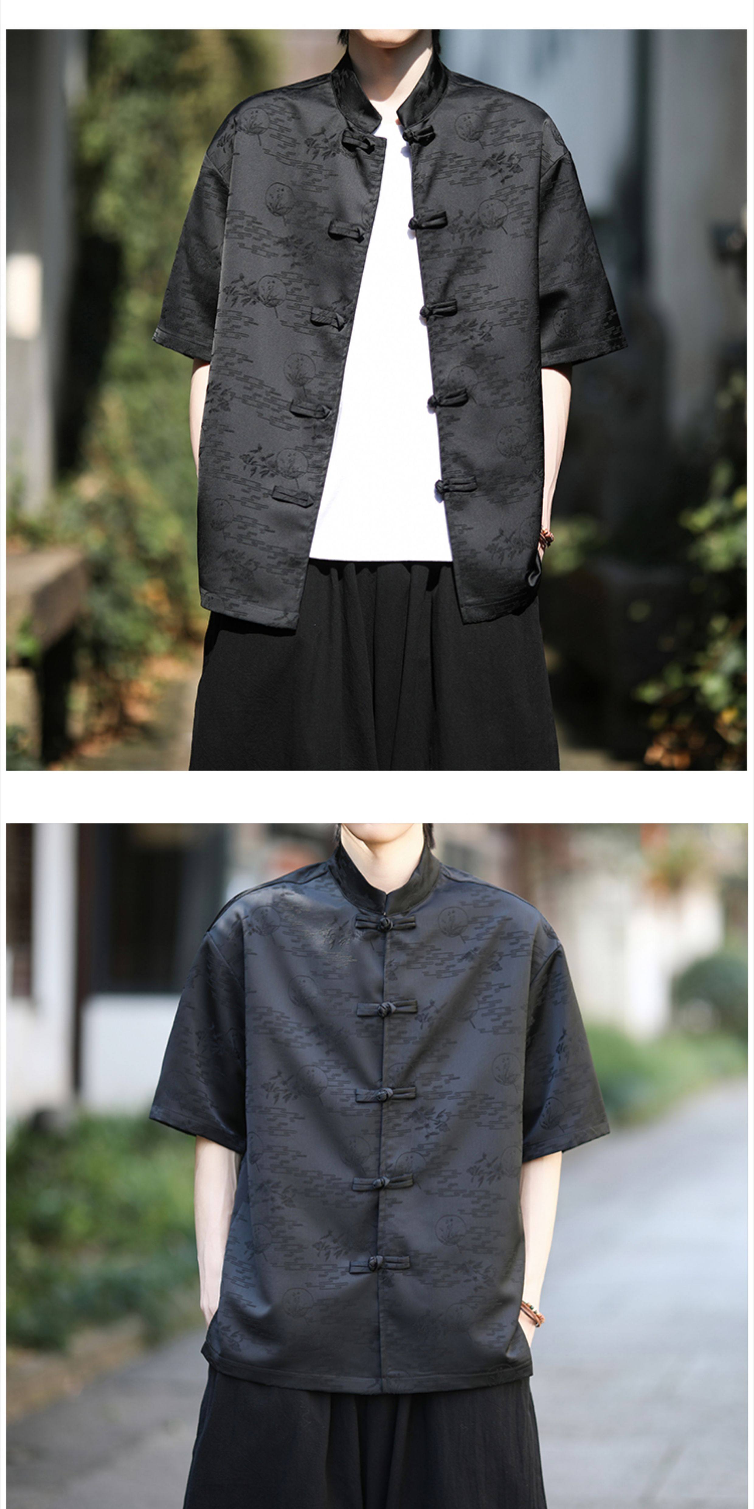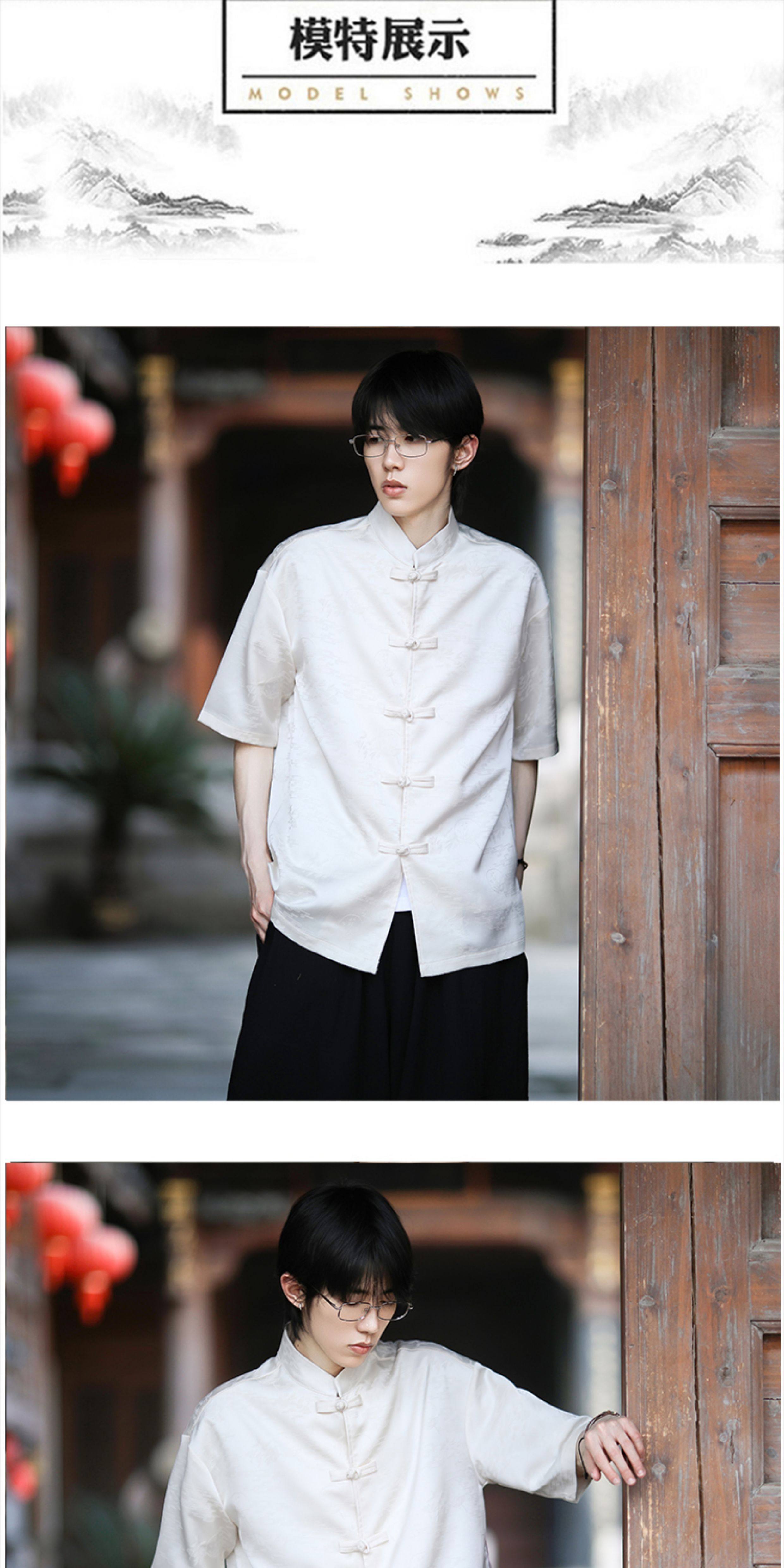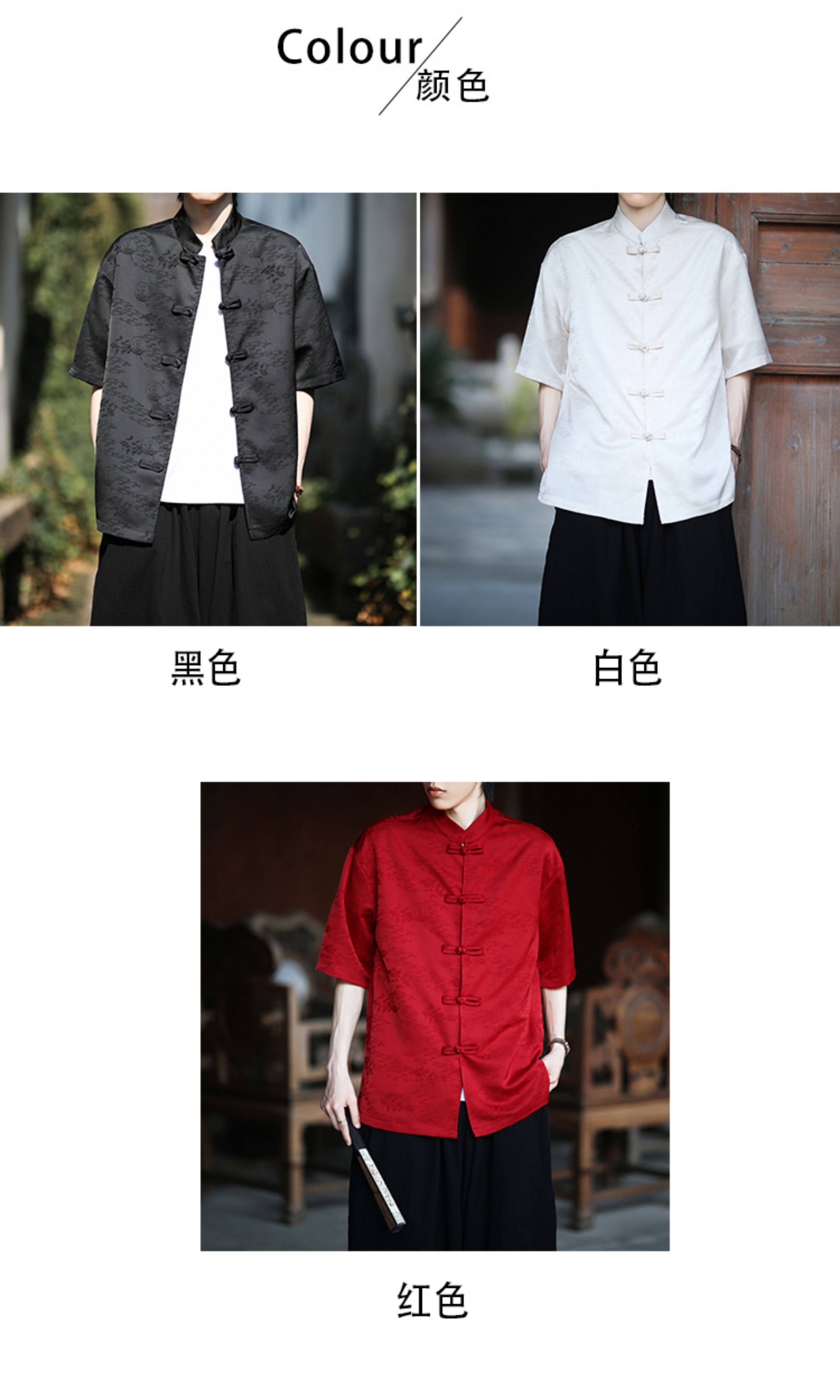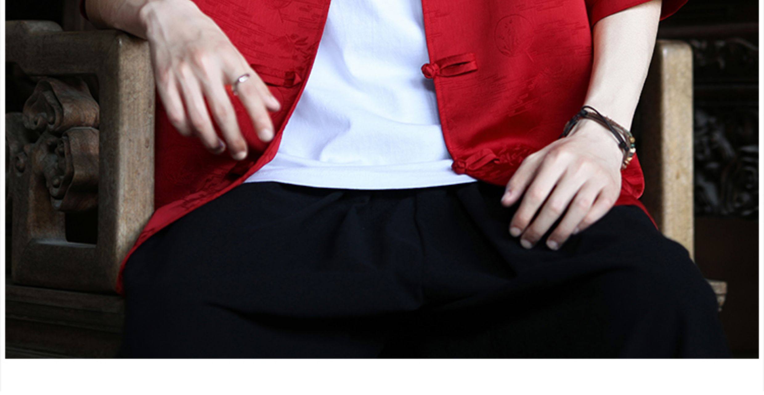 Chinese Style Summer New Red Button-Up Shirt for Wedding Groomsmen Performance, Large Size Tang Suit Hanfu Short-Sleeved Shirt Top
