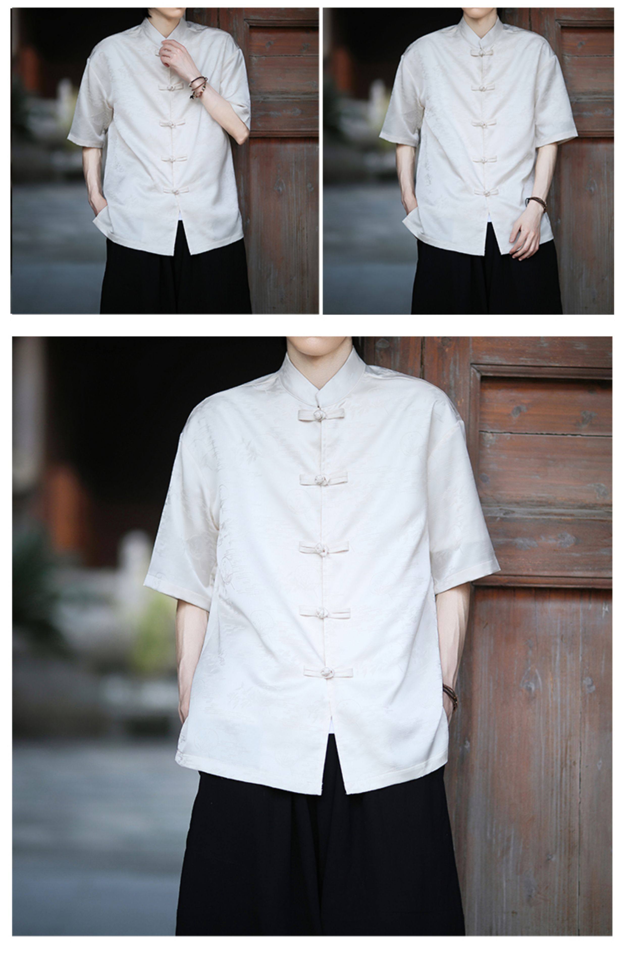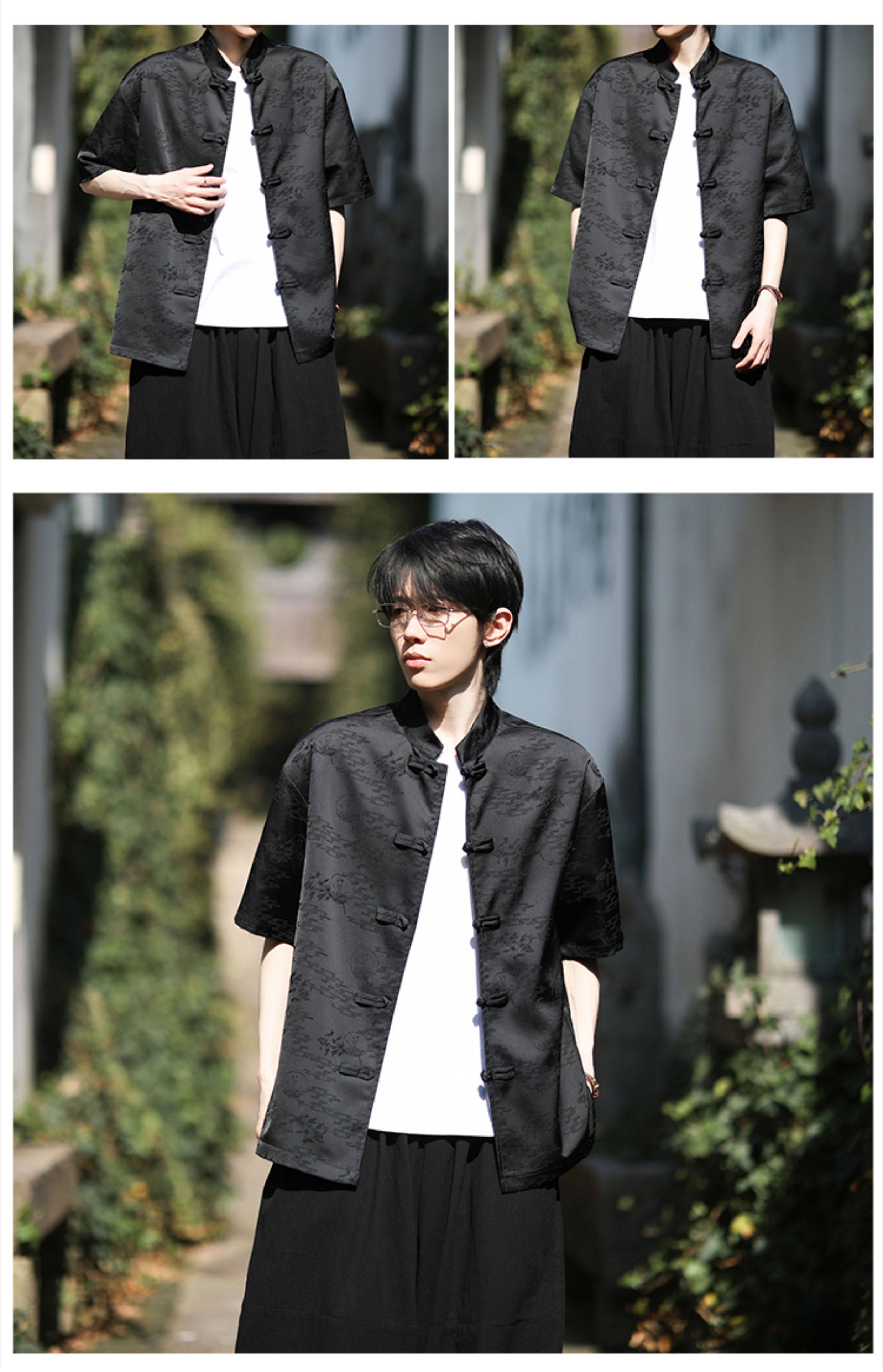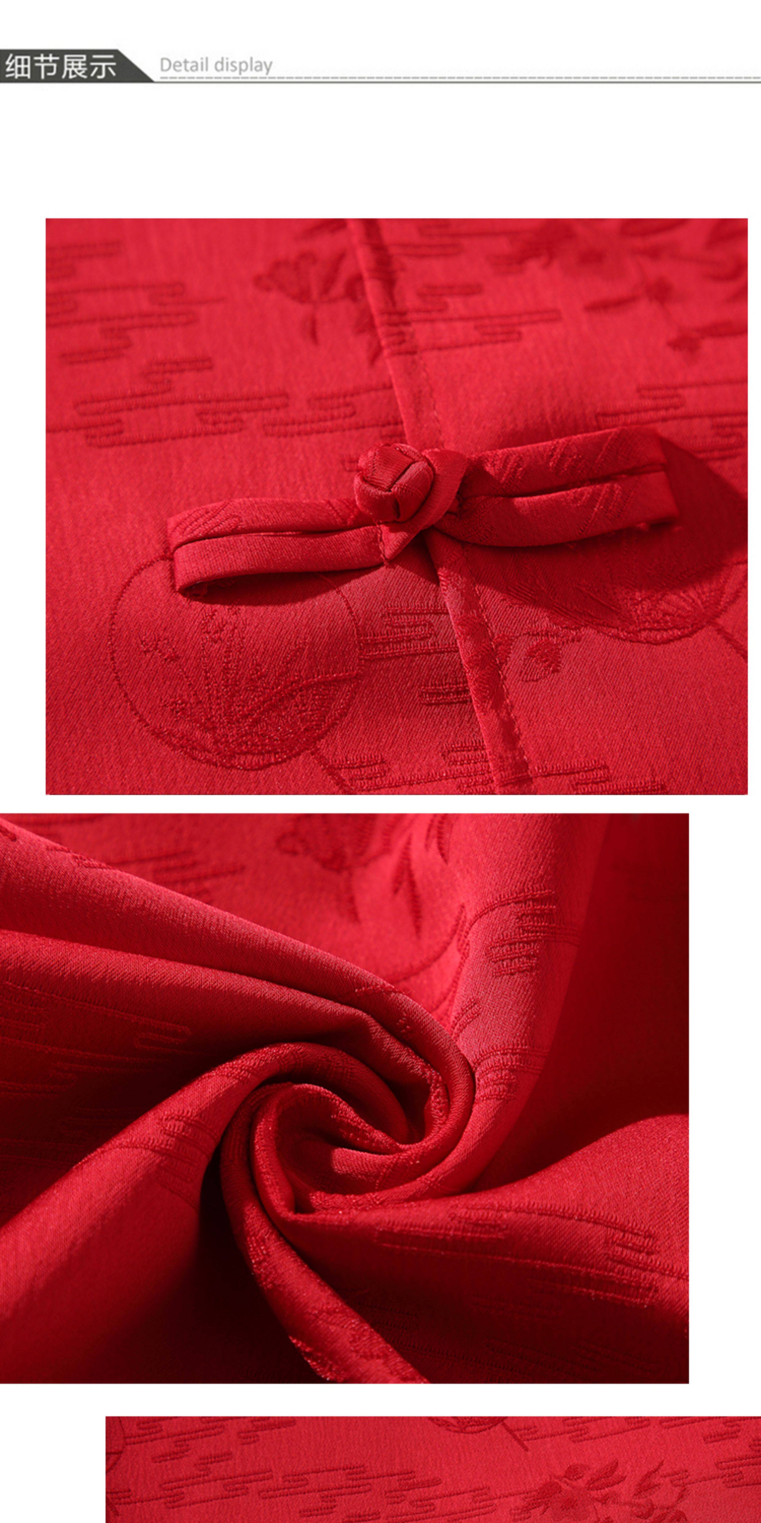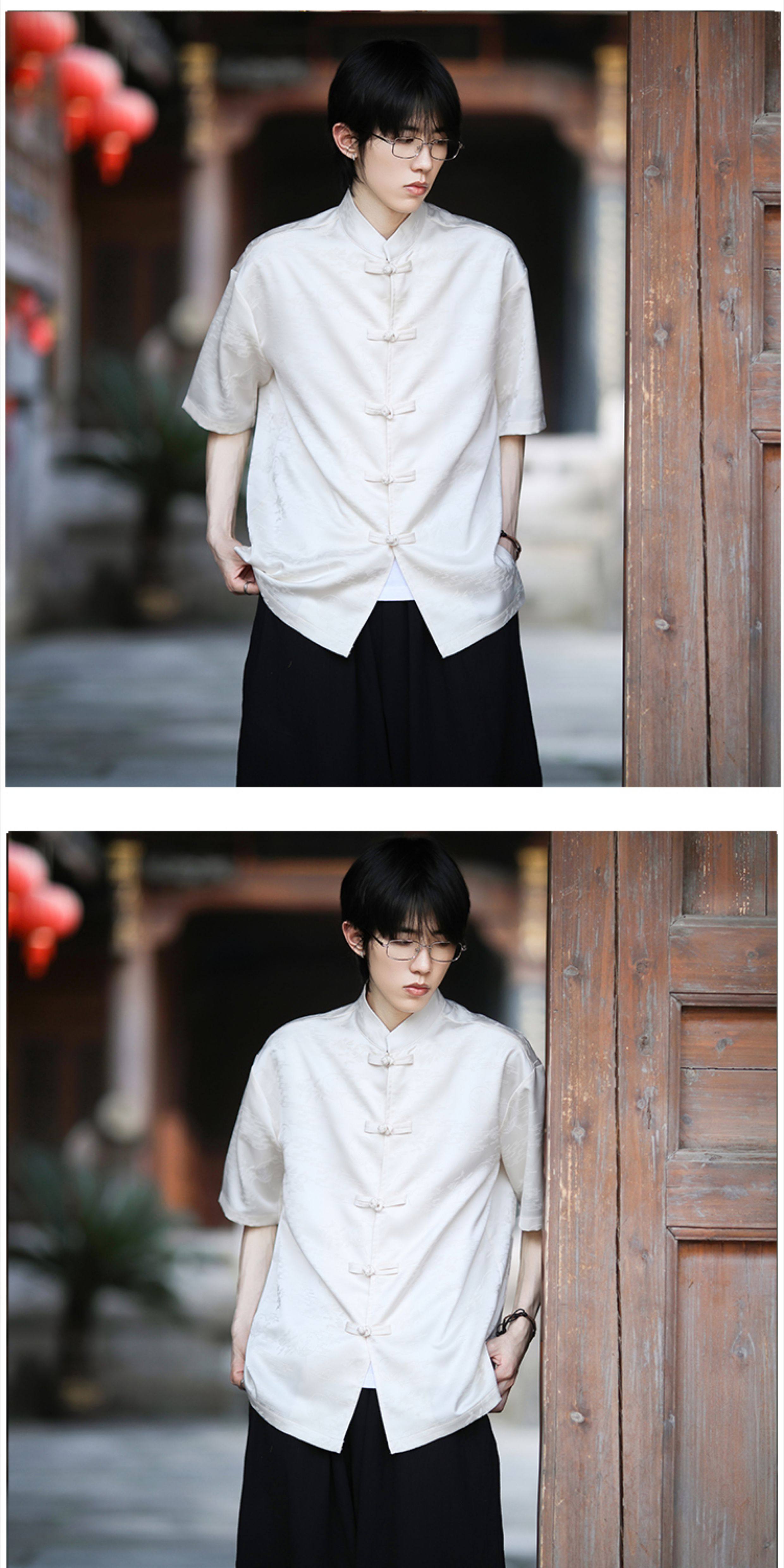 Chinese Style Summer New Red Button-Up Shirt for Wedding Groomsmen Performance, Large Size Tang Suit Hanfu Short-Sleeved Shirt Top