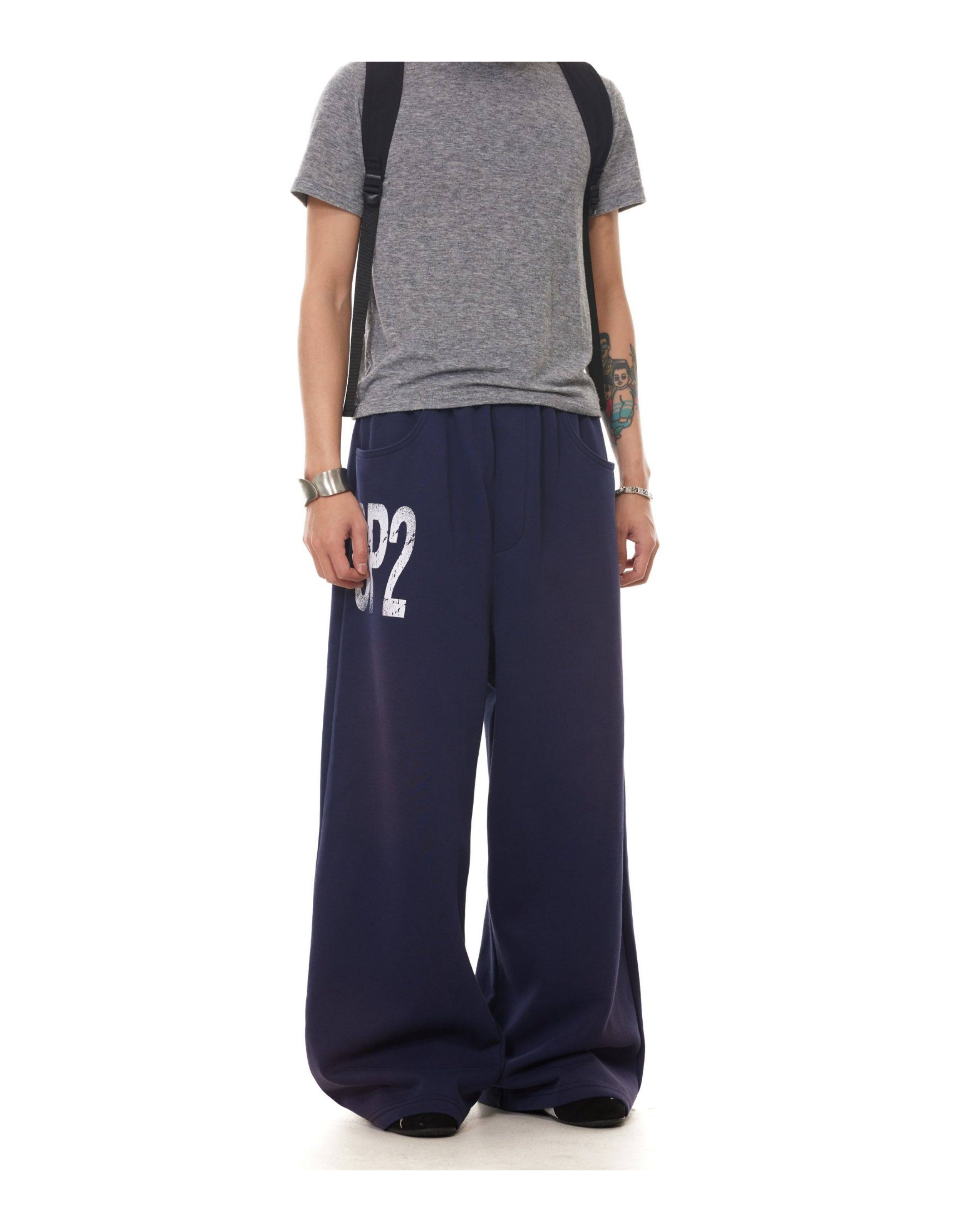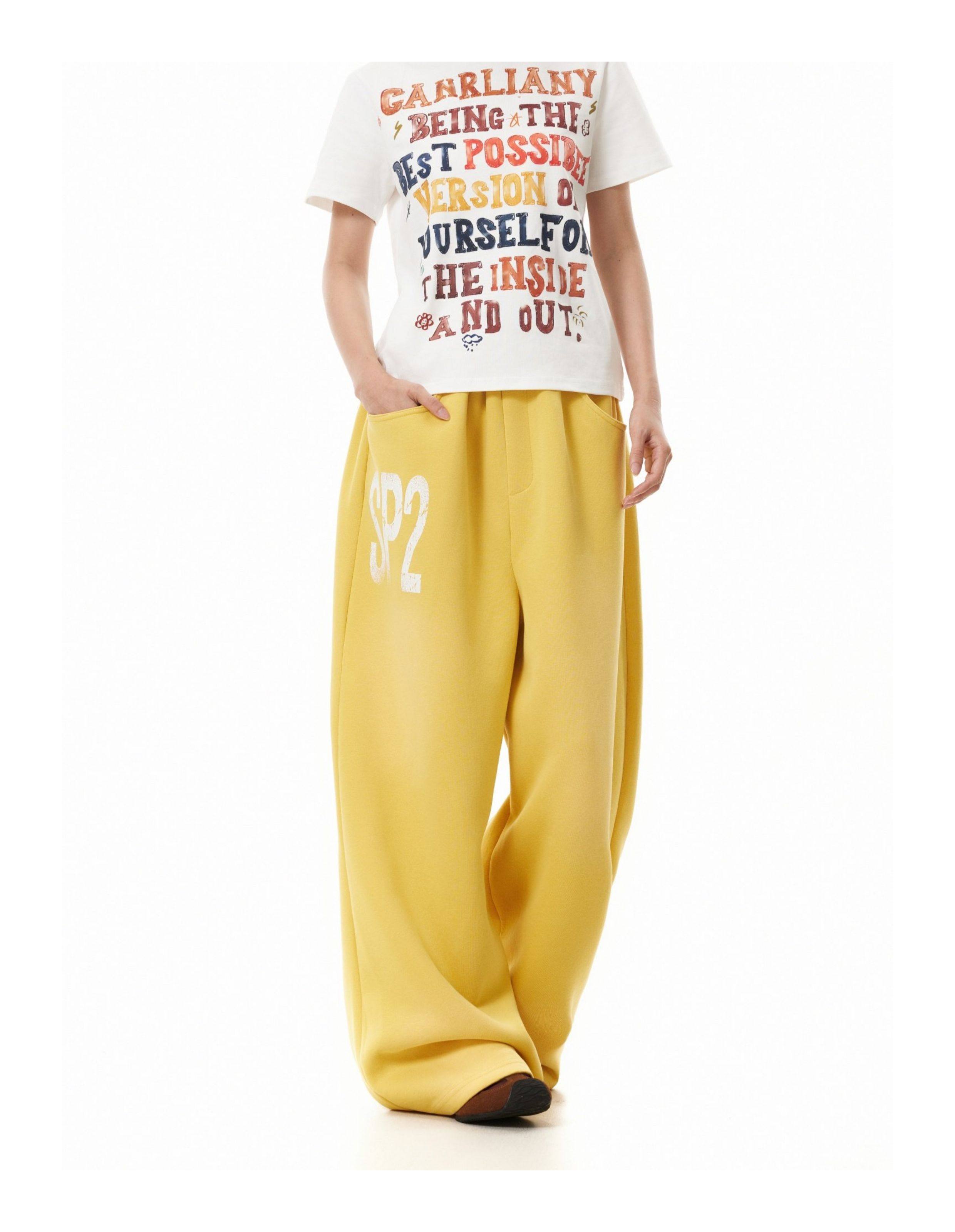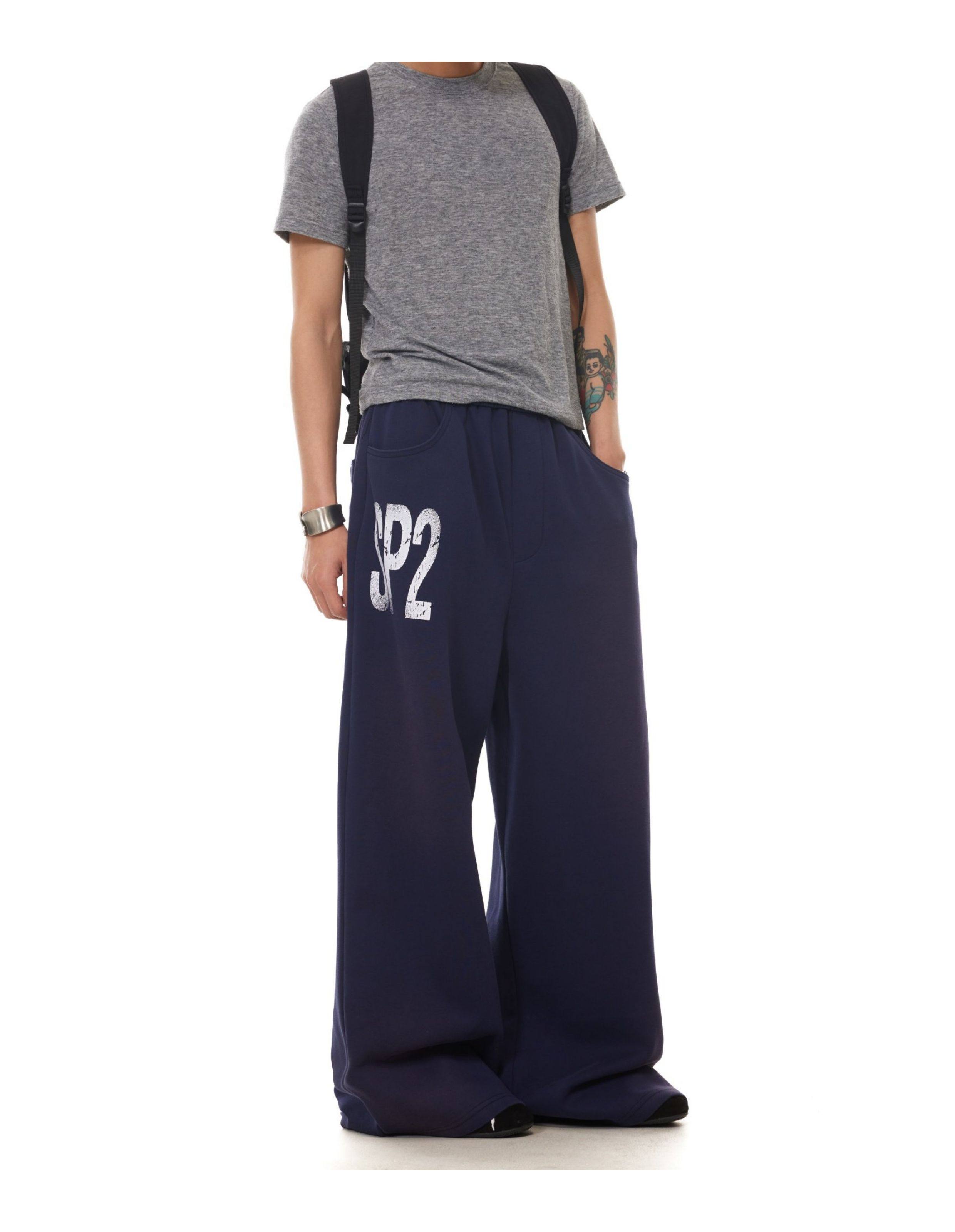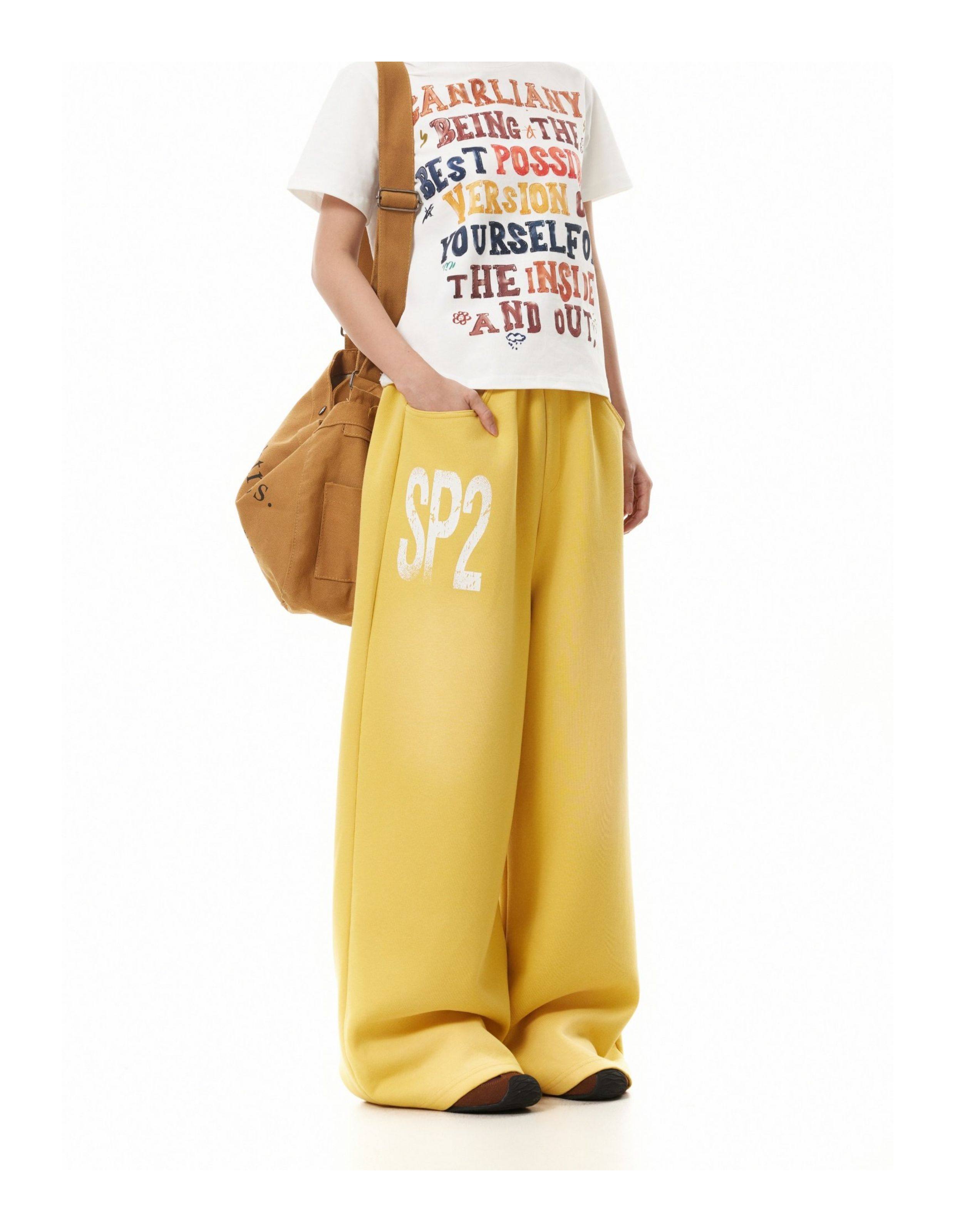 Btsg American Retro Elastic Waist Letter Print Drapey Sports Sweatpants Street Baggy Wide-Leg Casual Pants for Men