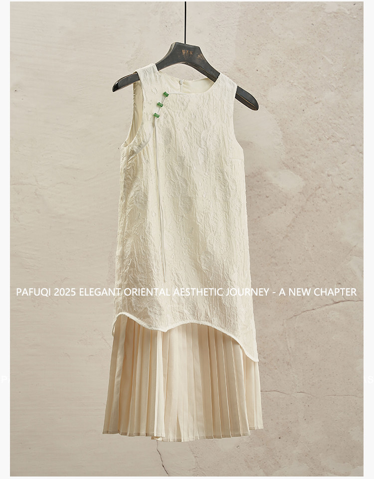 New Chinese-Style Dress, Light Traditional Chinese Style Women's Clothing, 2026 New Summer Model, Very Beautiful Patchwork Pleated Long Dress with Button Details