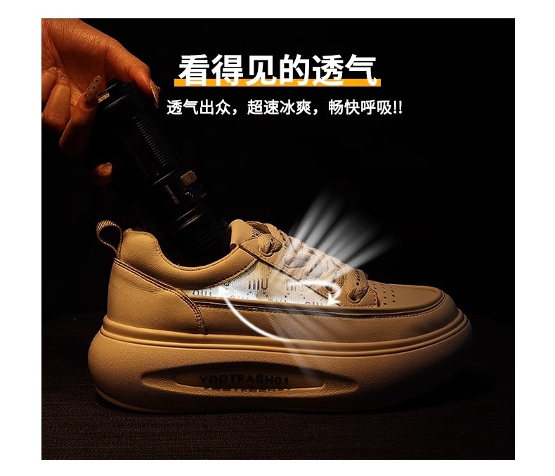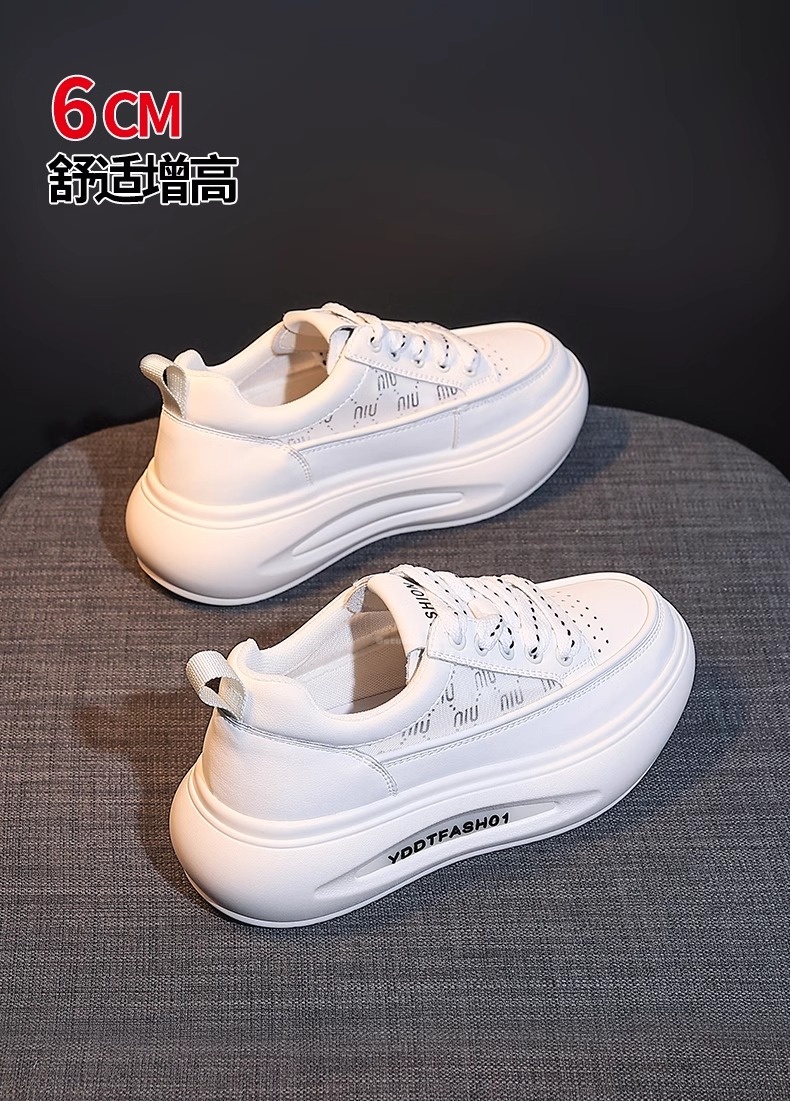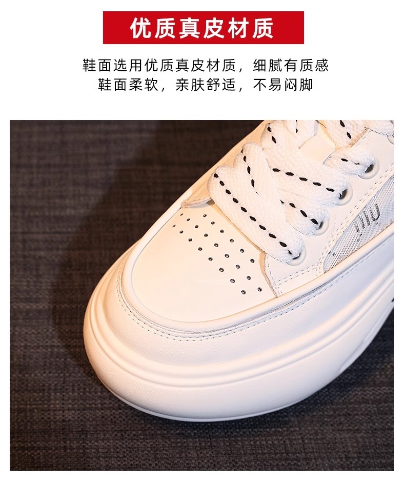 Hong Kong Breathable Mesh Height-Increasing Genuine Leather Platform Thick-Soled White Sneakers for Women 2025 Spring and Summer New Versatile Casual Shoes