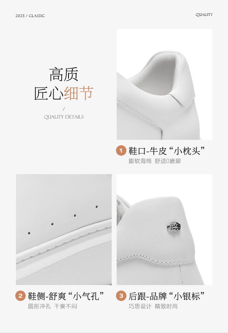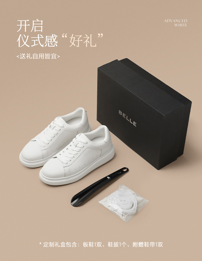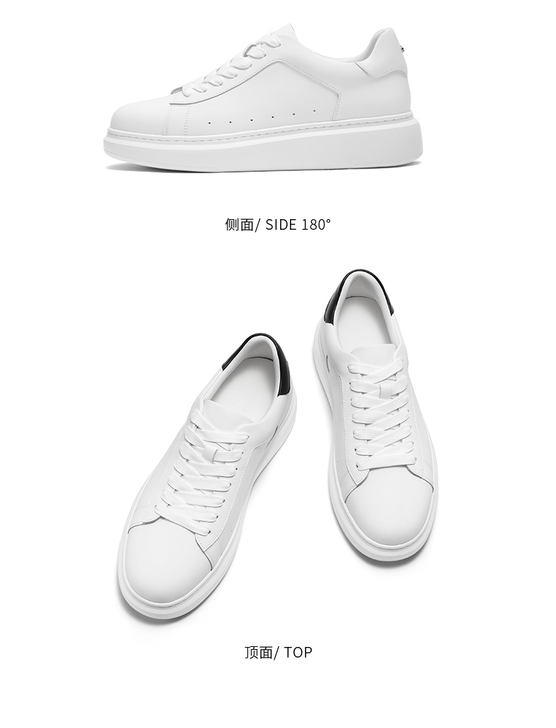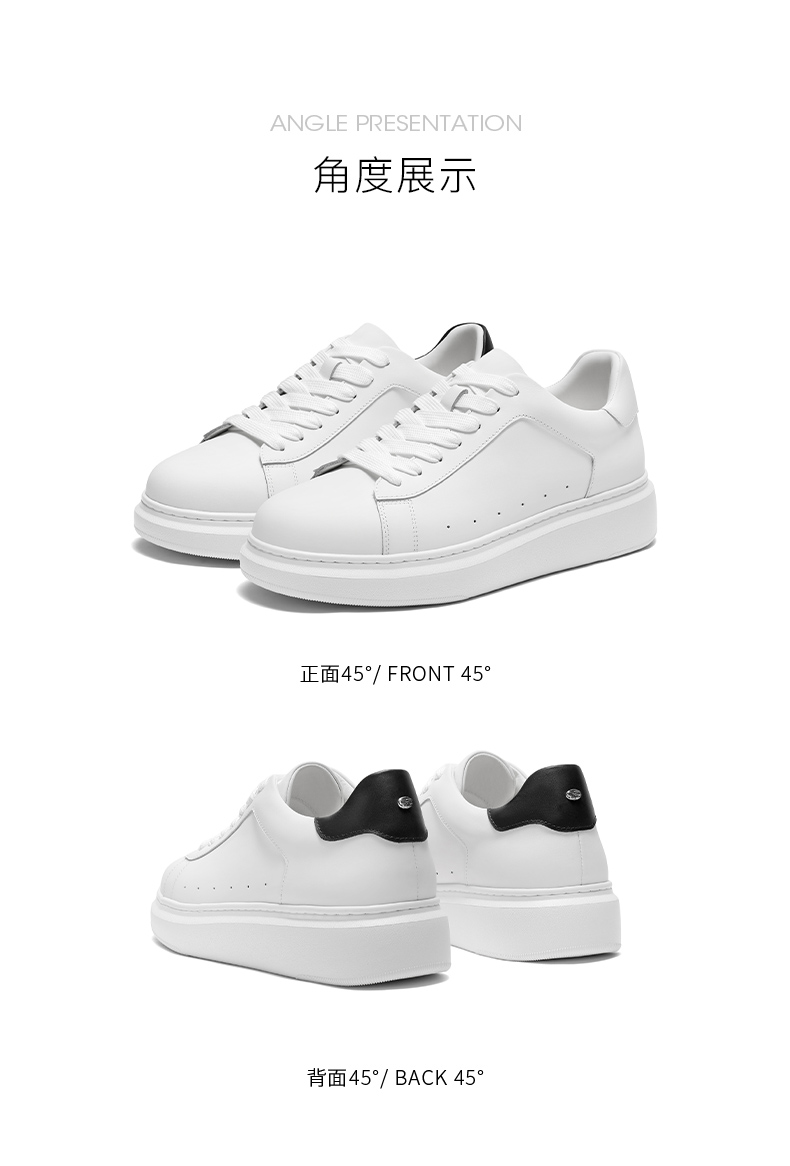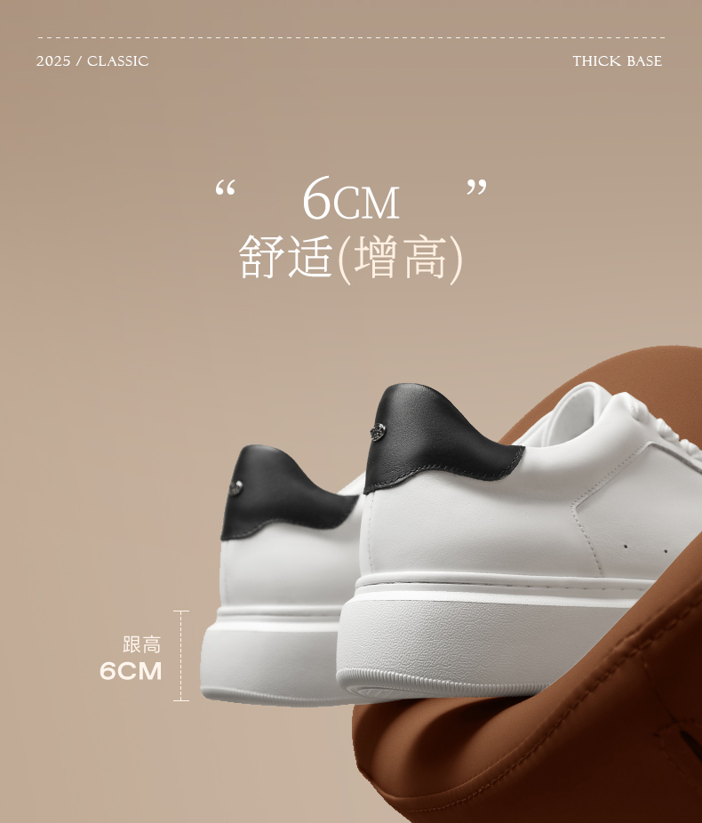 【Increase Height by 6Cm】Zhang Linghe's Same Style Belle High-End White Board Thick-Soled Fleece-Lined Cowhide Casual Shoes for Men D5R20