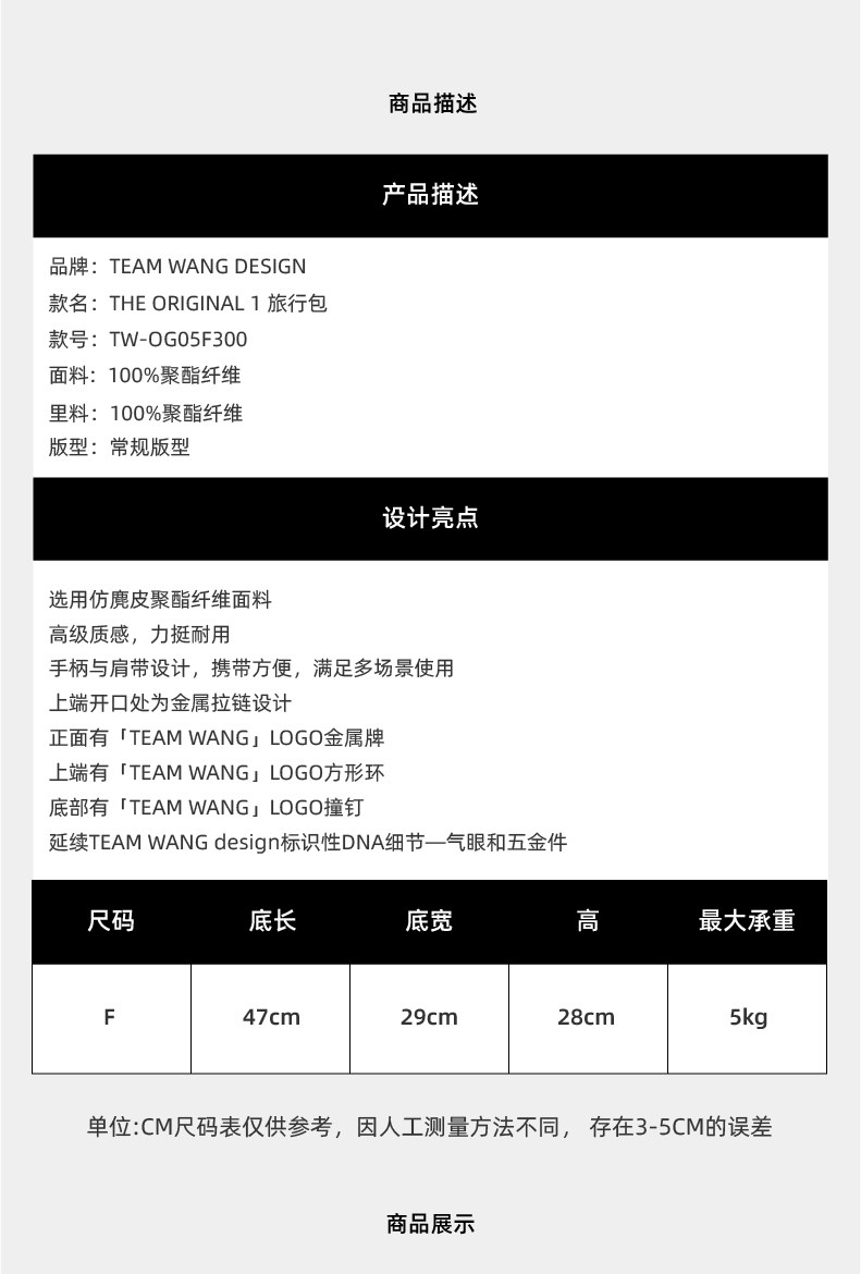 Teamwang Flagship Store Team Wang Design Travel Bag Tw-Og05F300