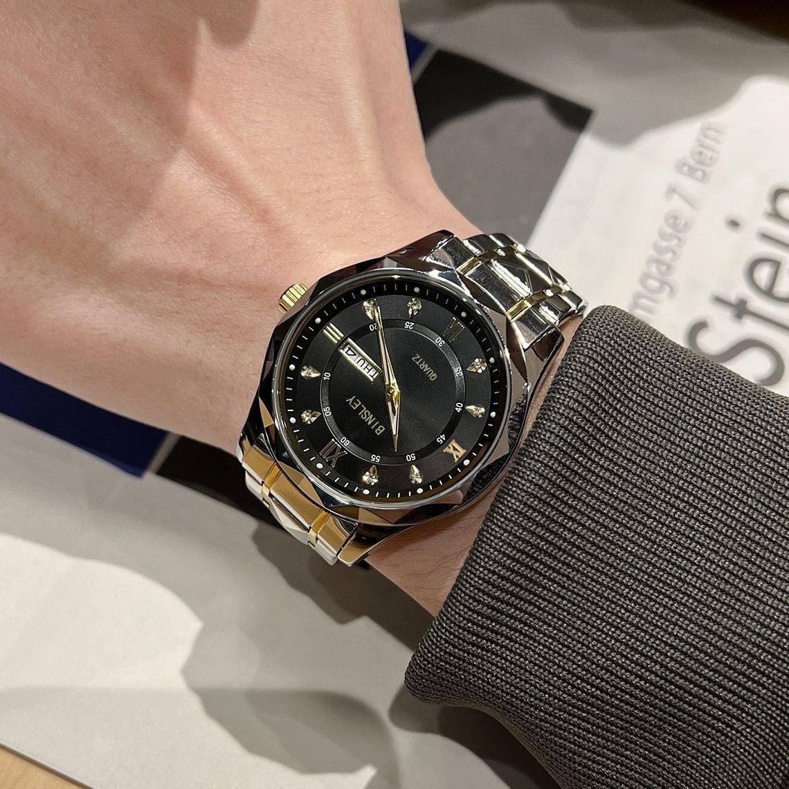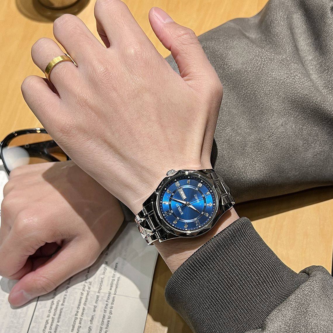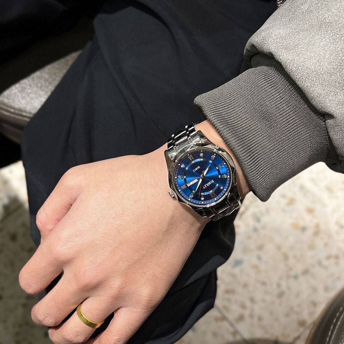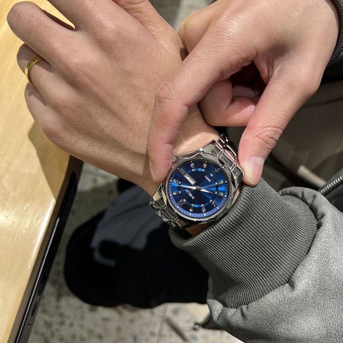 2026 New Men's Watch Waterproof Luminous Dual Calendar Steel Band Business Casual Quartz Watch Trendy Men's Watch