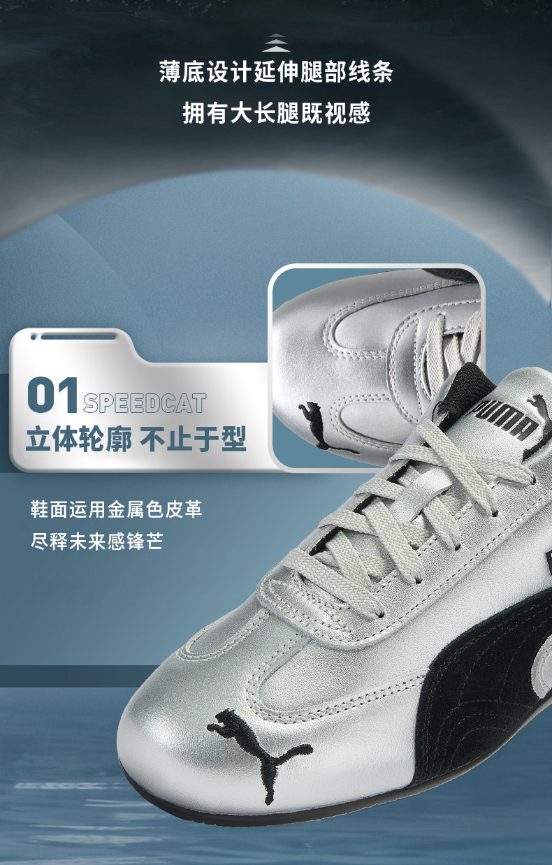Rose Park Chae-Young's Same Model Speedcat Thin-Soled Racing Liquid Silver T-Toe Shoes for Men and Women Puma 403689