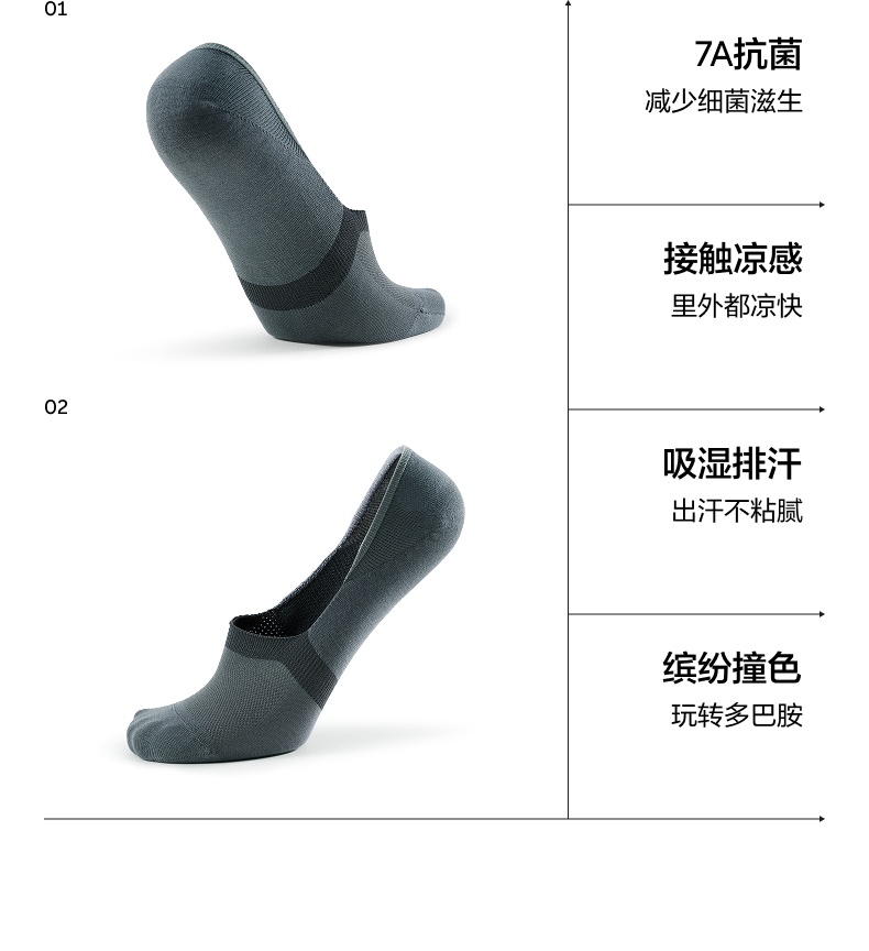 Antibacterial and Deodorizing | Jiao Nei Yinpi 500E Men's Mesh Low-Cut Invisible Non-Slip Sweat-Absorbing Boat Socks Summer Thin Socks