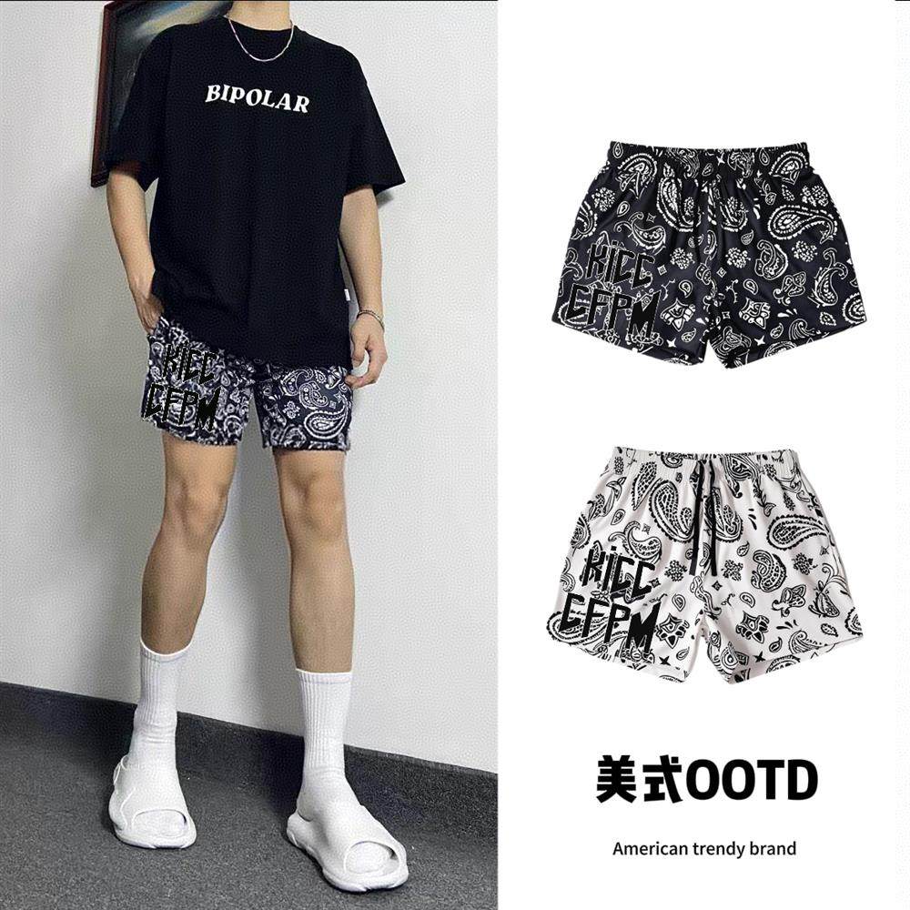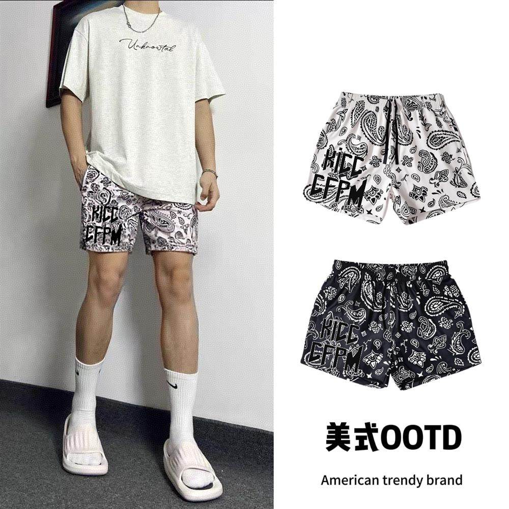 Sports American-Style Shorts for Men, Unique Black and White Trendy Brand, High Street Style, Knee-Length Shorts, Training Breathable Quick-Drying Sports Shorts
