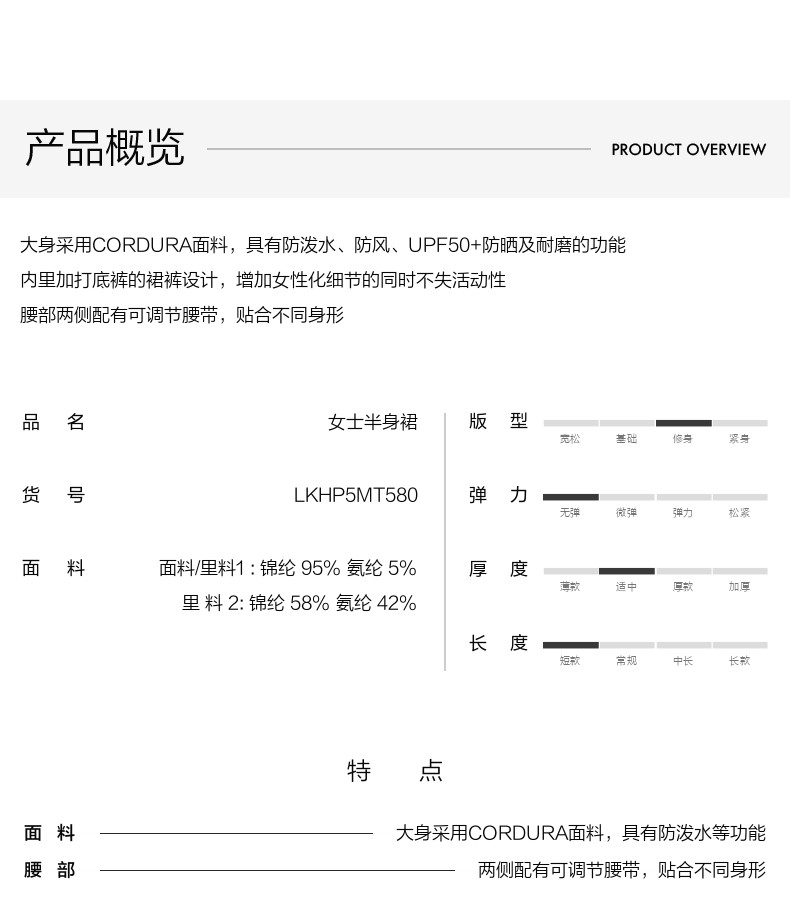 Kolon Sport Kolon Skirt, Water-Repellent and Sun-Protective Skirt, Women's Wear-Resistant Cordura Running Skirt