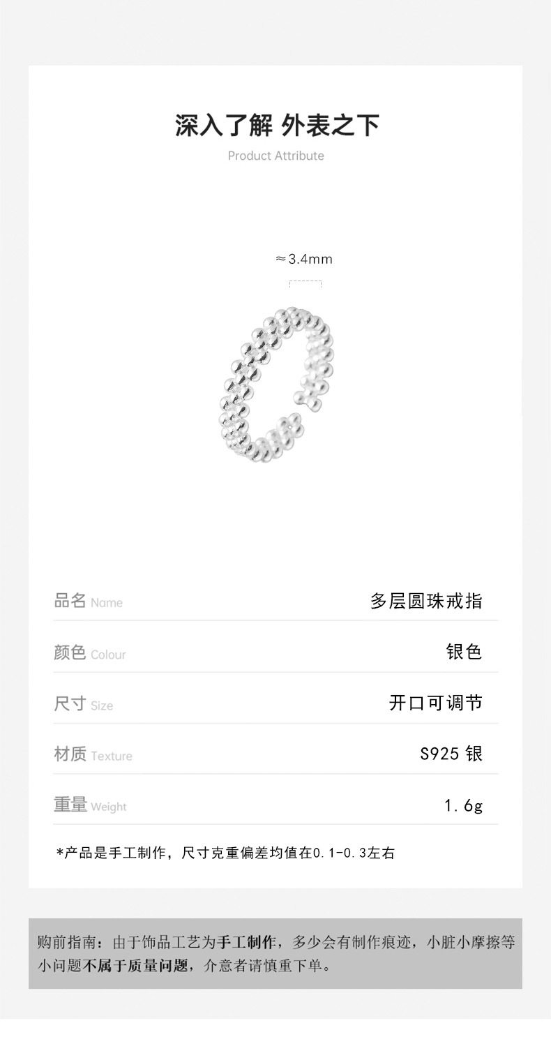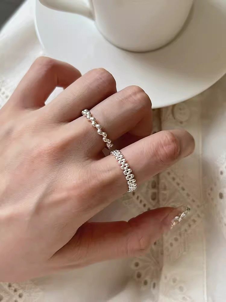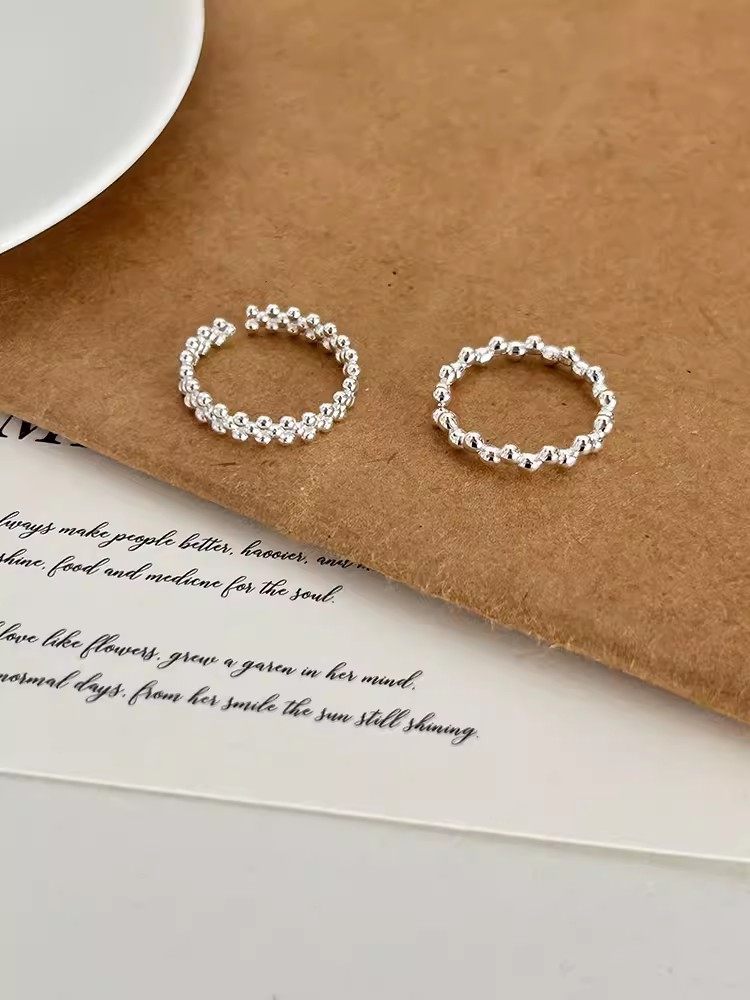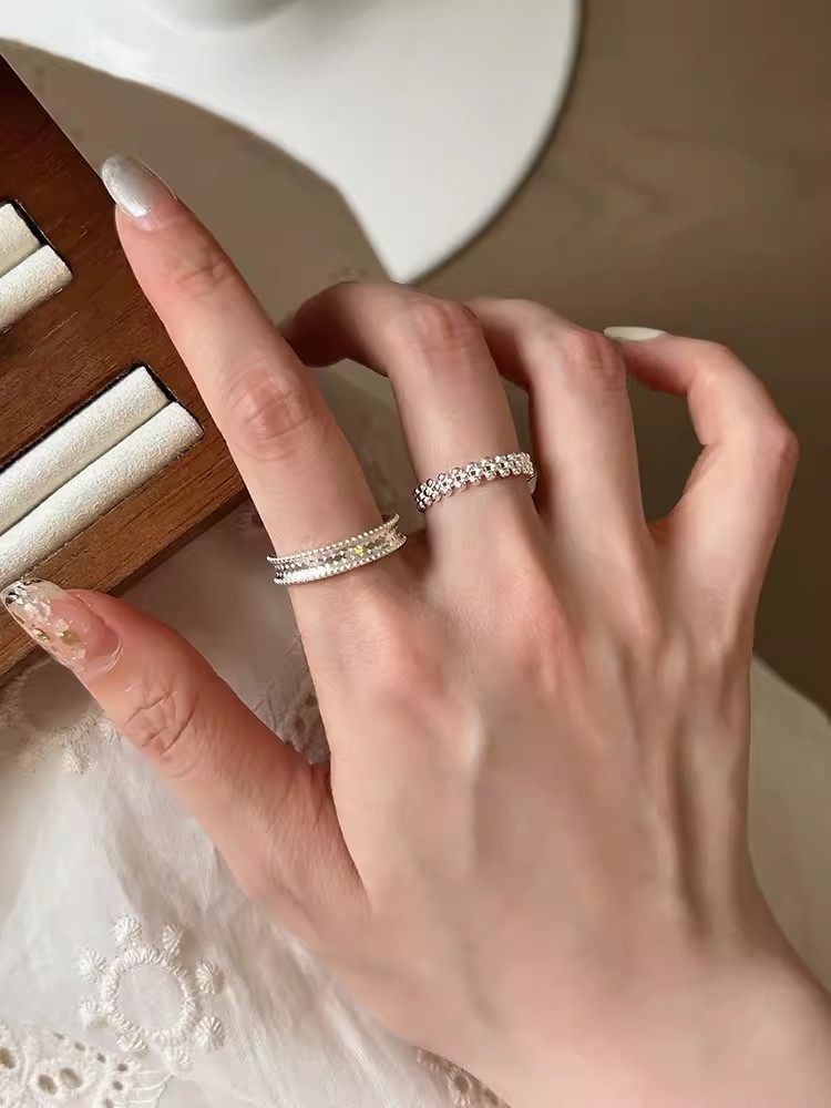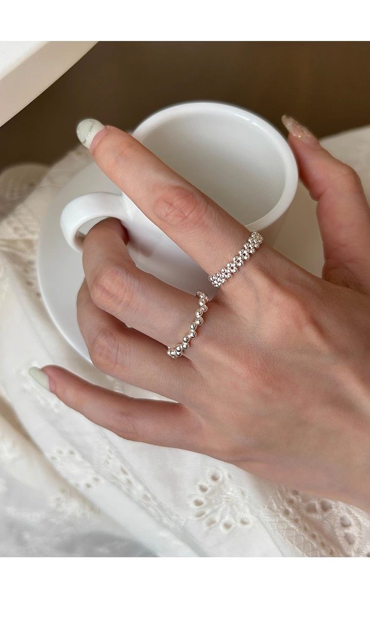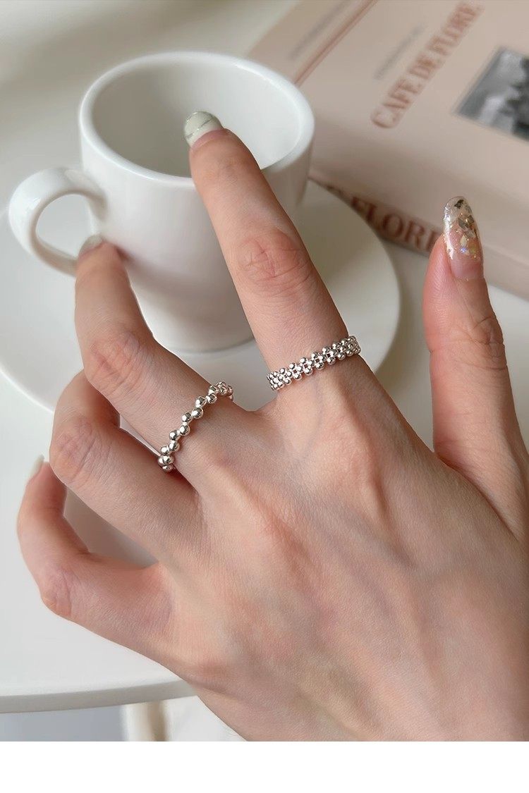 All-Over S925 Sterling Silver Niche Design Multi-Layered Bead Ring for Women ins Minimalist Stacking Plain Ring Korean Style Index Finger