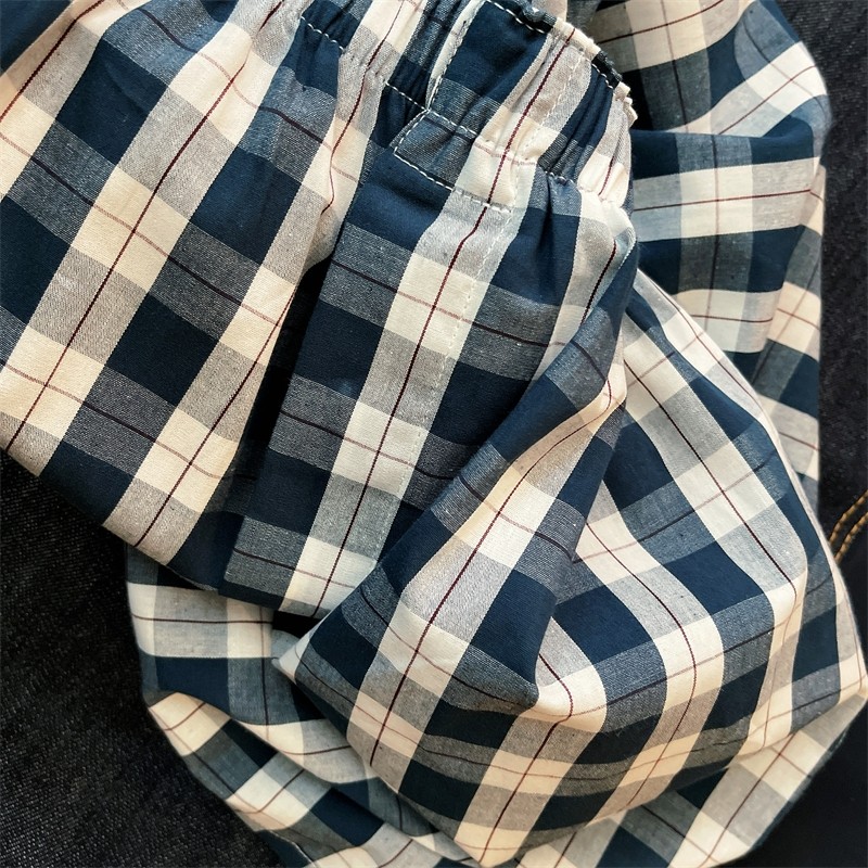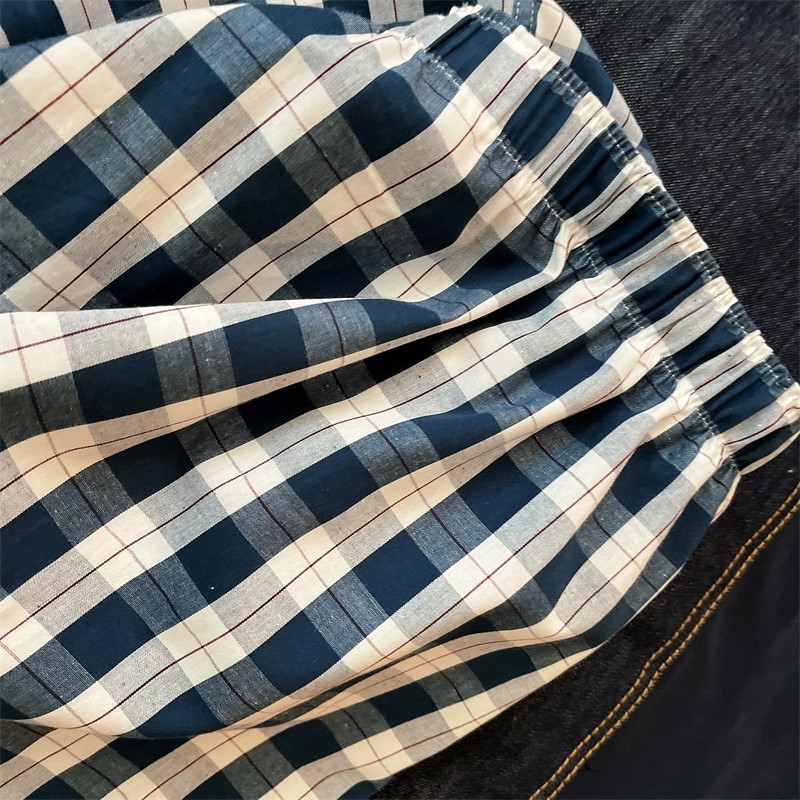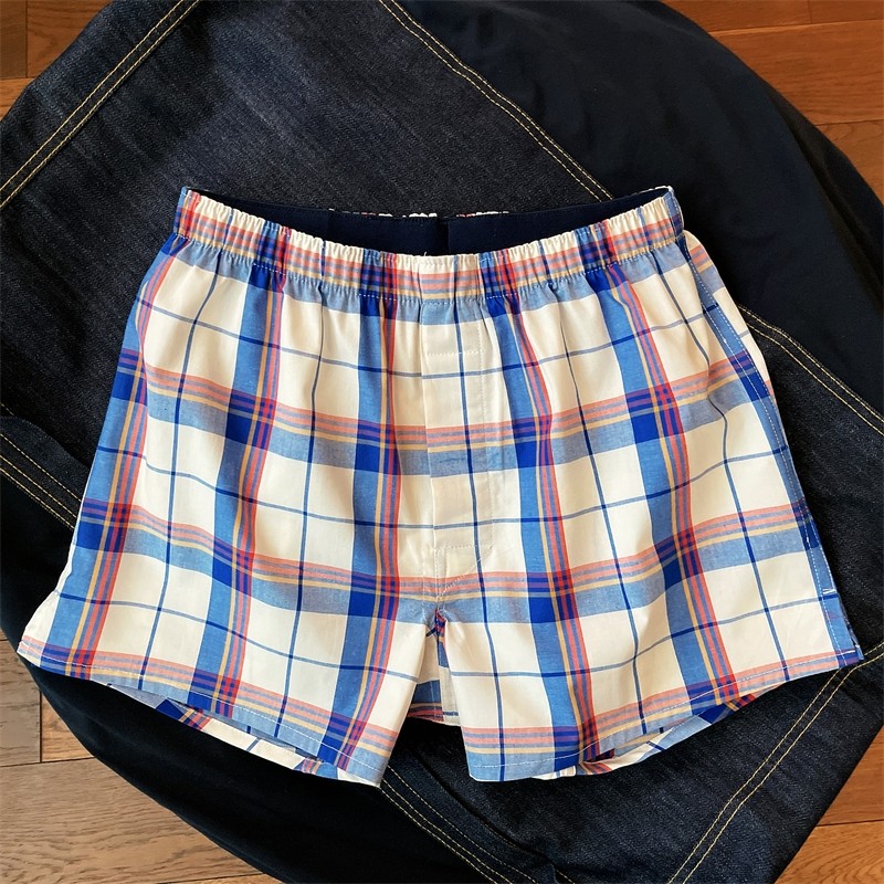 Japanese Loose-Fitting Men's Underwear, Pure Cotton, Breathable for Summer, Men's Boxer Shorts, Youth Casual Plaid Home Wear, Plaid Four-Corner Shorts
