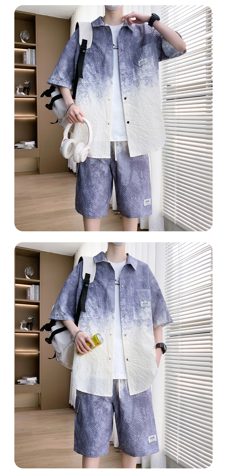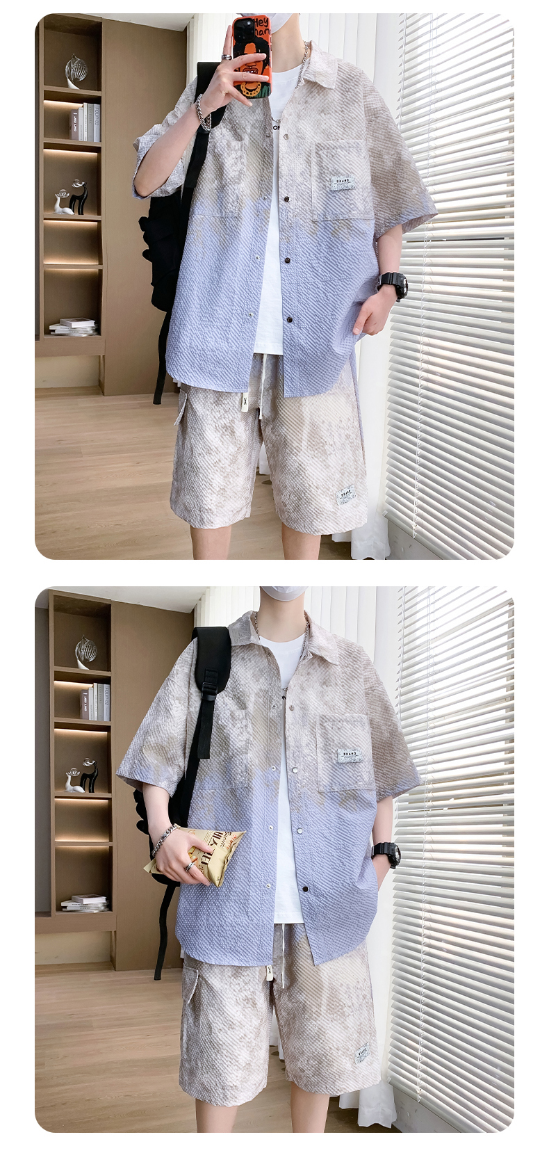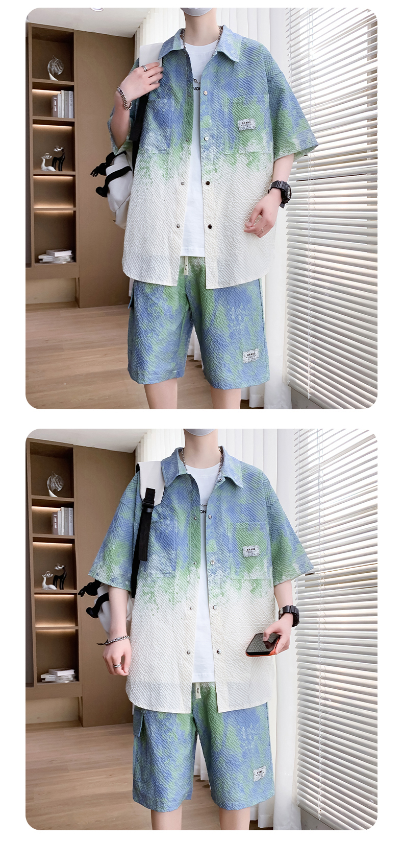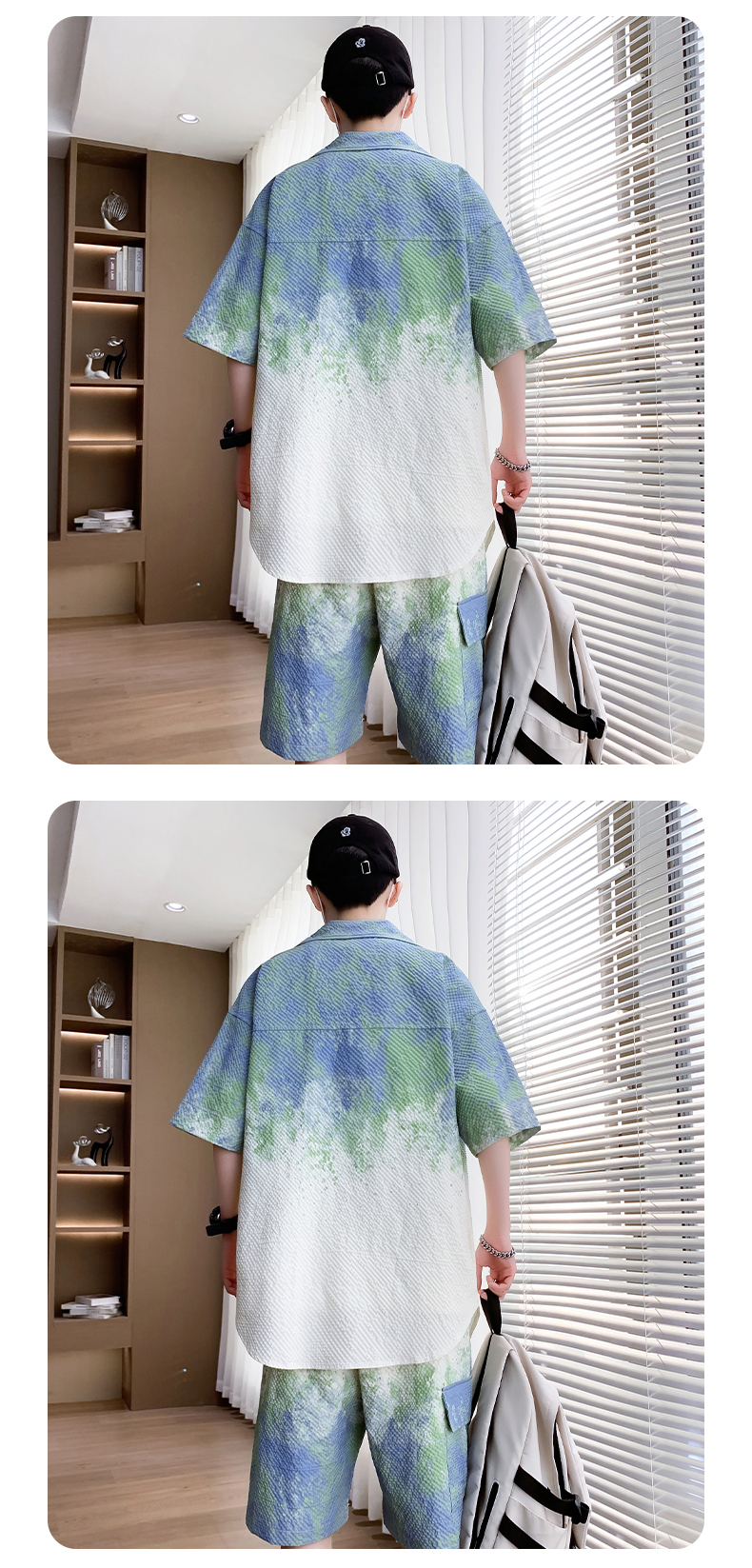 Tangshi Group Desso Puff Pattern Shirt Set for Men, Summer 2025, Men's Short-Sleeve and Shorts Complete Set