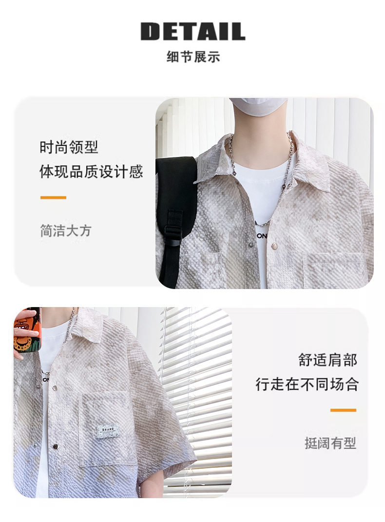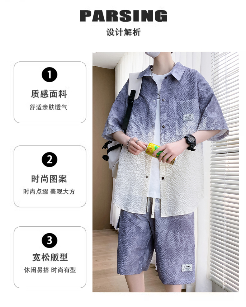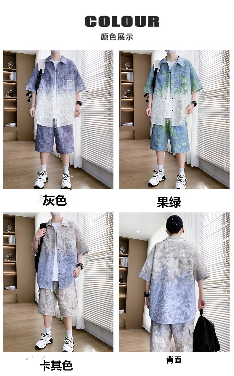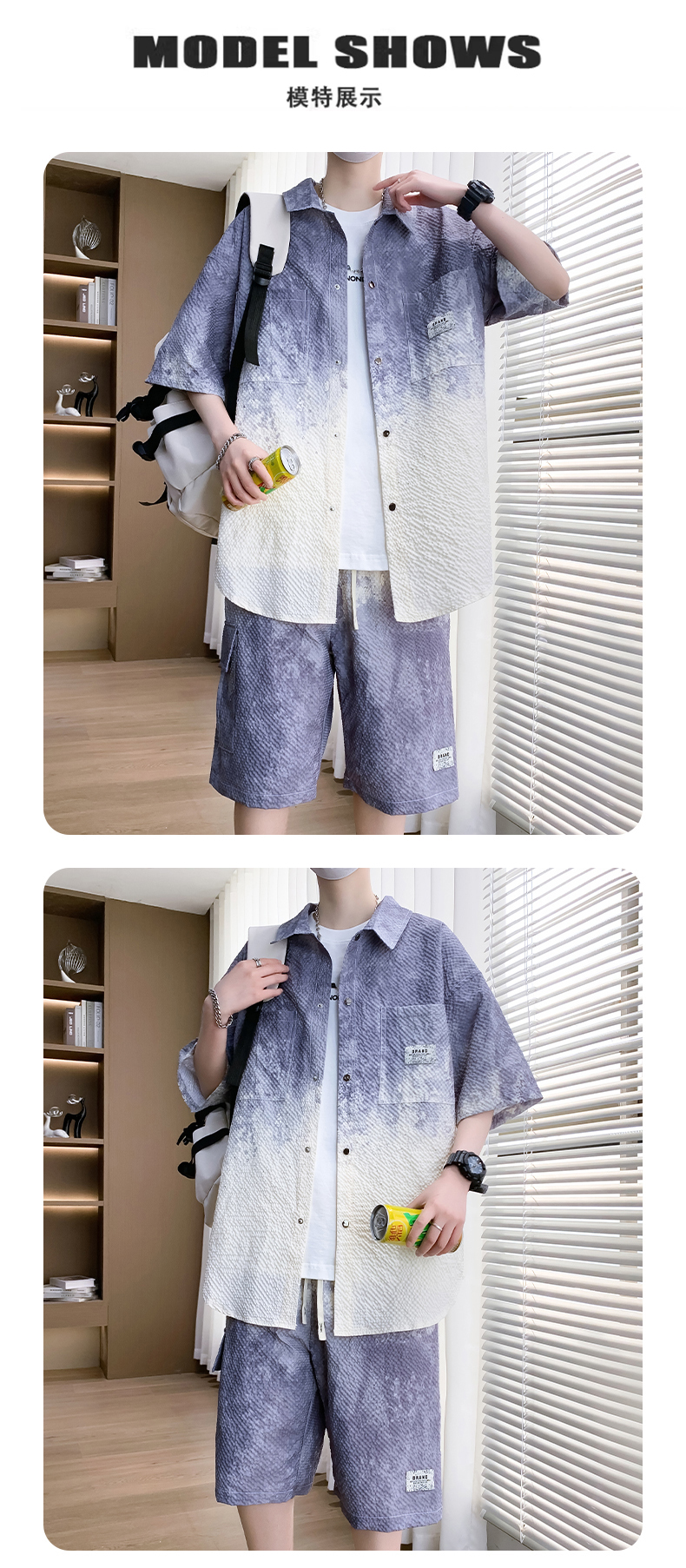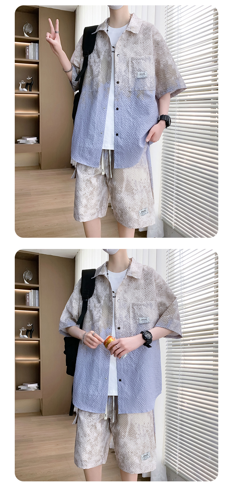 Tangshi Group Desso Puff Pattern Shirt Set for Men, Summer 2025, Men's Short-Sleeve and Shorts Complete Set