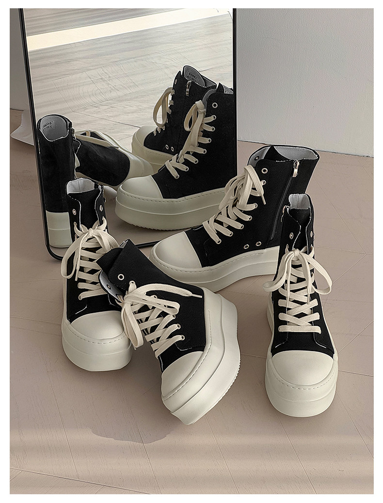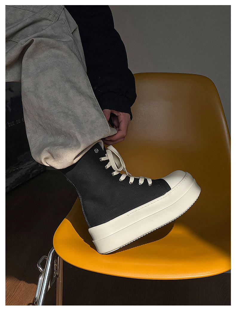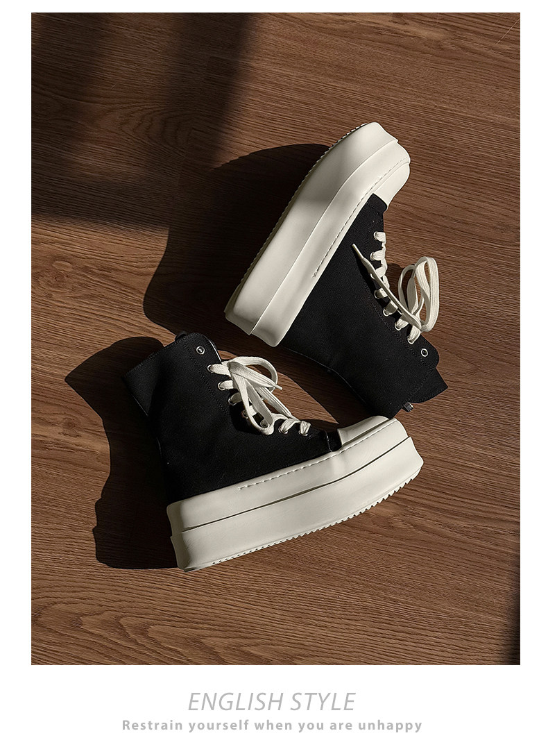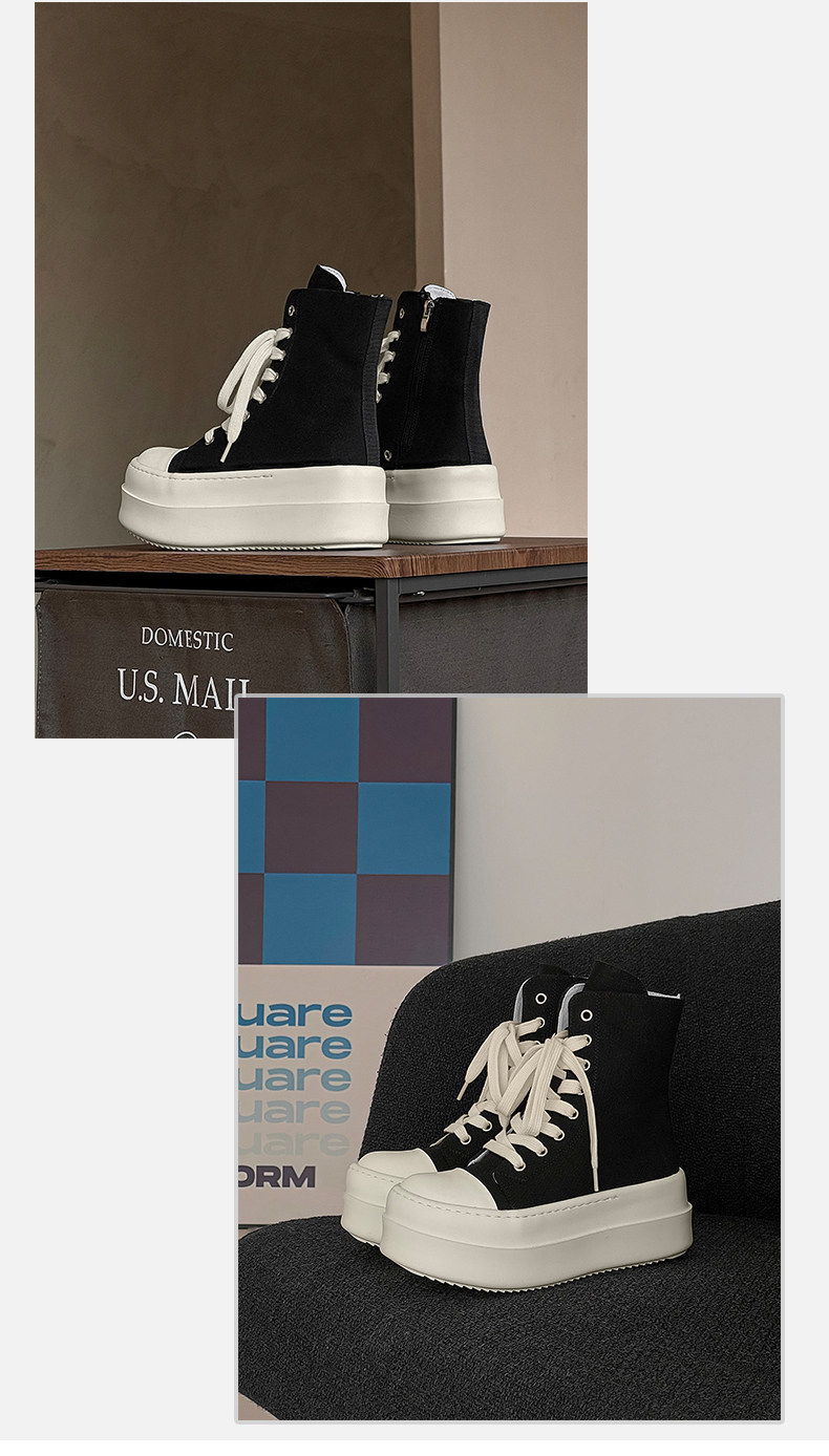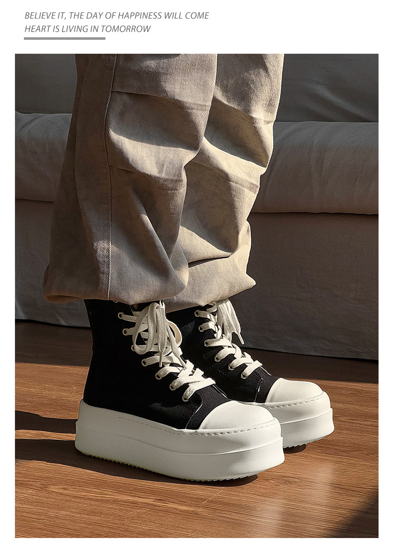 12cm Height-Increasing High-Top Canvas Shoes for Men and Women, American High Street Style, Versatile Large-Toe Biker Boots, Casual Thick-Soled Sneakers