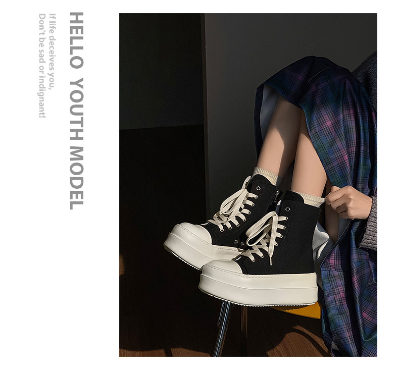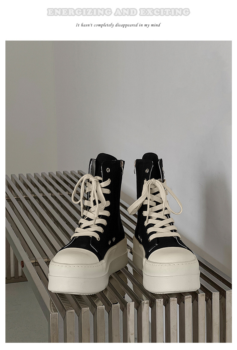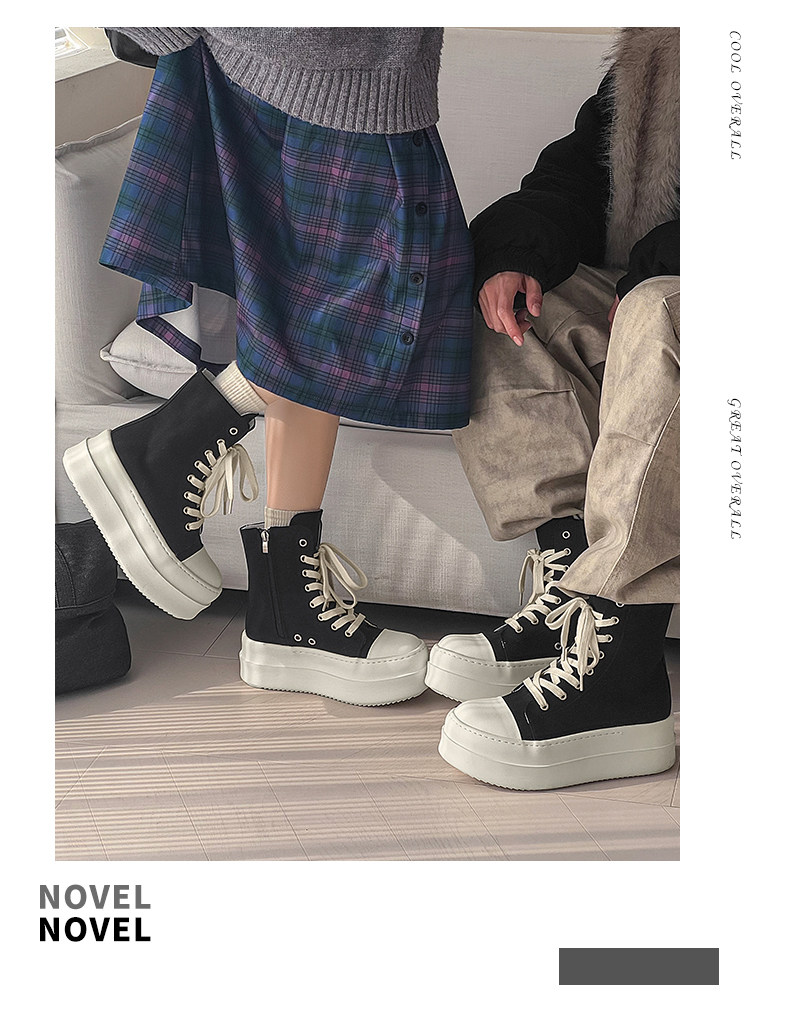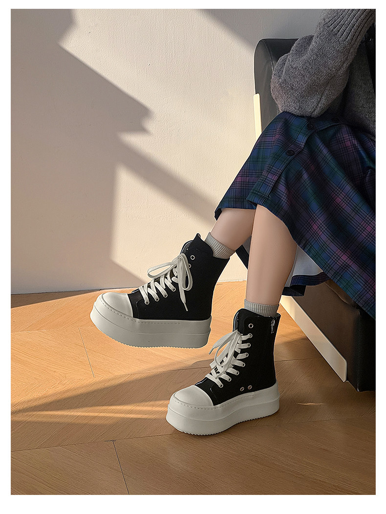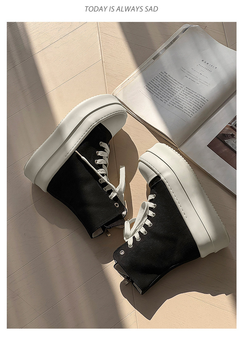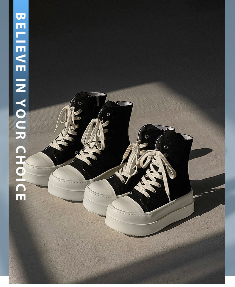 12cm Height-Increasing High-Top Canvas Shoes for Men and Women, American High Street Style, Versatile Large-Toe Biker Boots, Casual Thick-Soled Sneakers