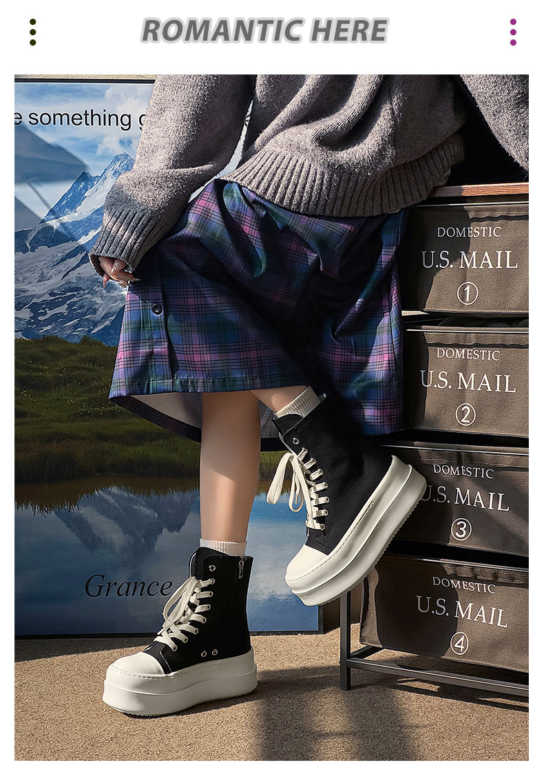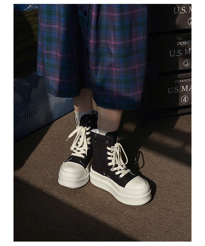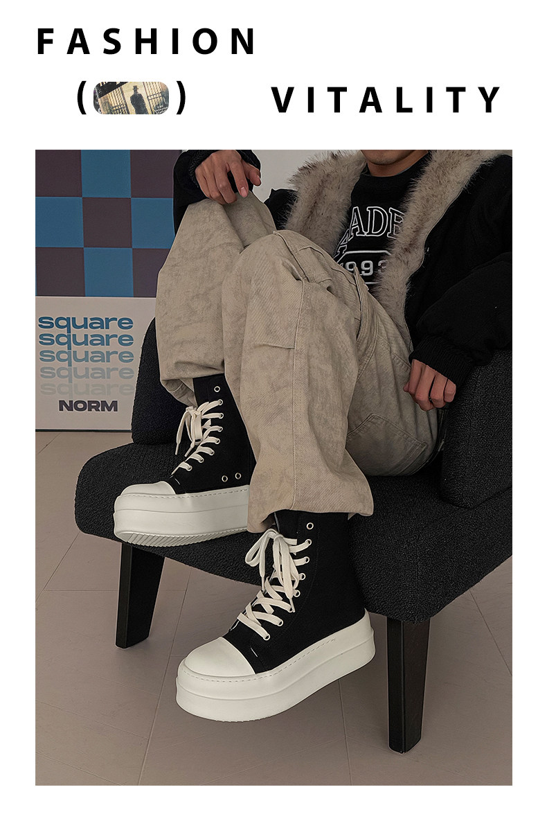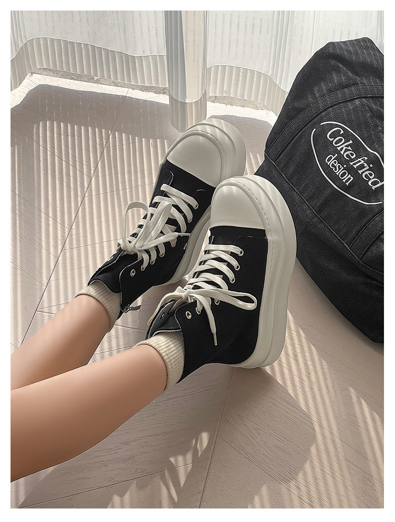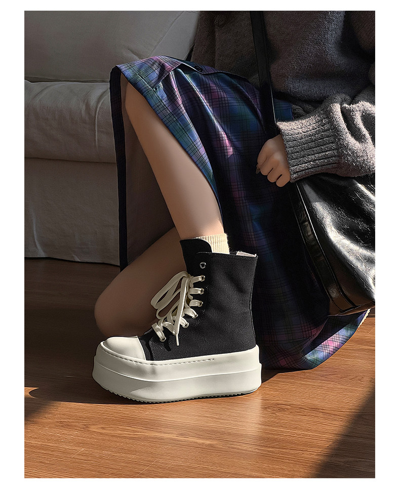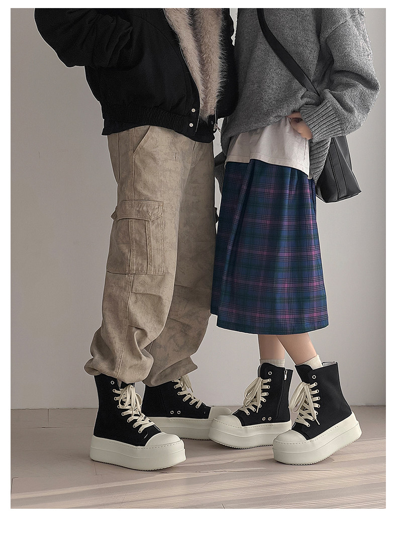 12cm Height-Increasing High-Top Canvas Shoes for Men and Women, American High Street Style, Versatile Large-Toe Biker Boots, Casual Thick-Soled Sneakers