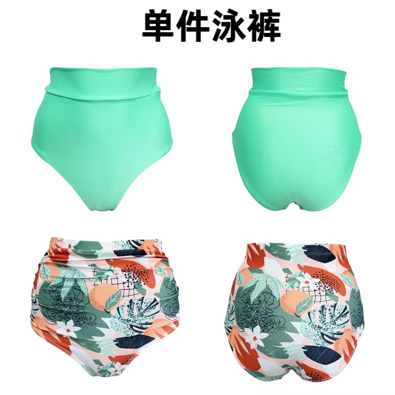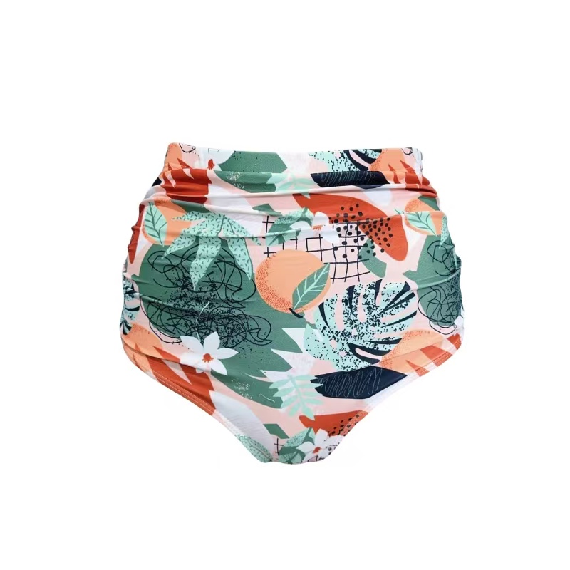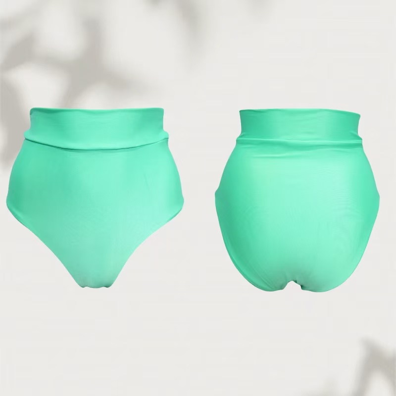 Amber Women's Conservative High-Waisted Tummy-Covering Slimming Triangle Bikini Bottom for European and American Seaside Vacations