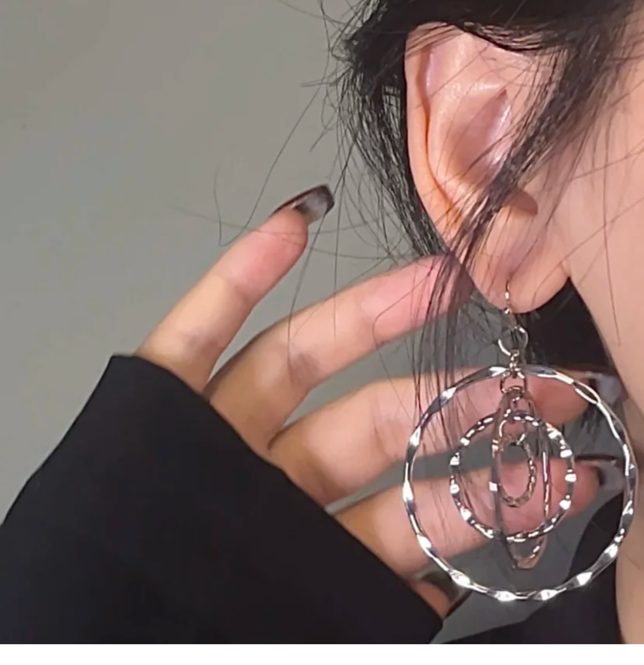 Hey Tao Retro Multi-Layer Hammered Earrings Pendant Earrings Women's Cool Earrings Cool Sister Style Earrings Ear Clips