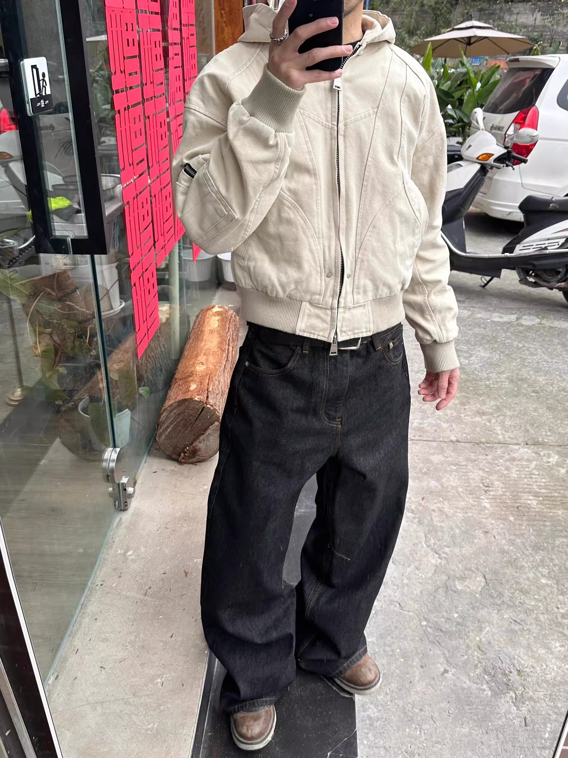 American High Street Retro Washed Raw Denim Black Loose Straight-Leg Jeans for Men, Wide-Leg Casual Versatile Trendy Long Pants