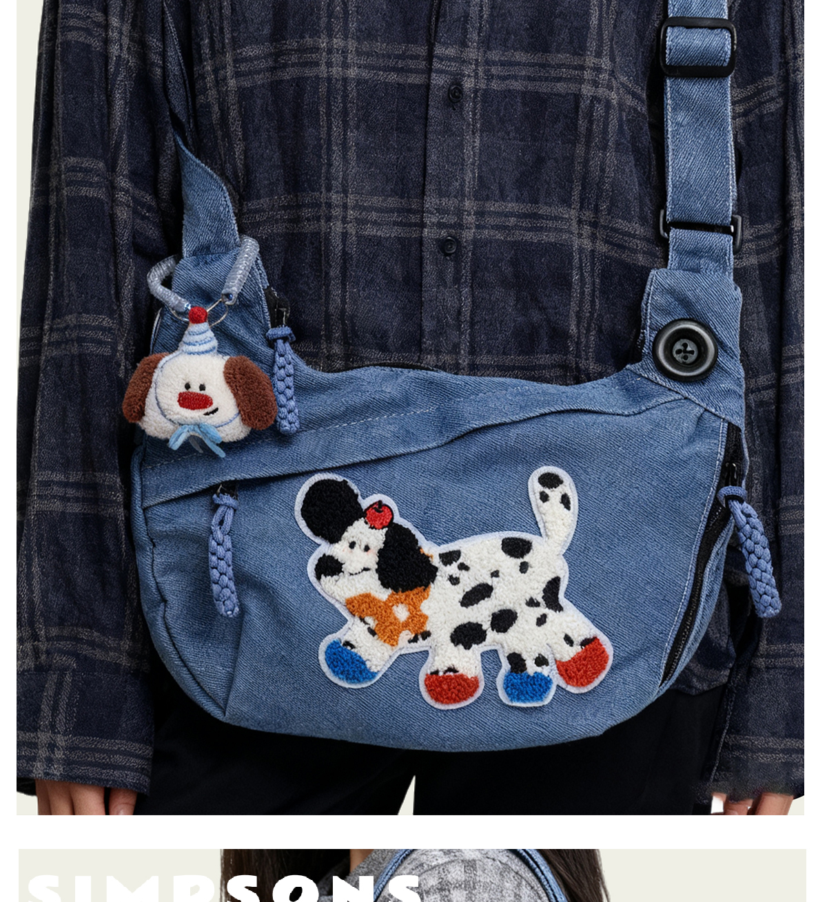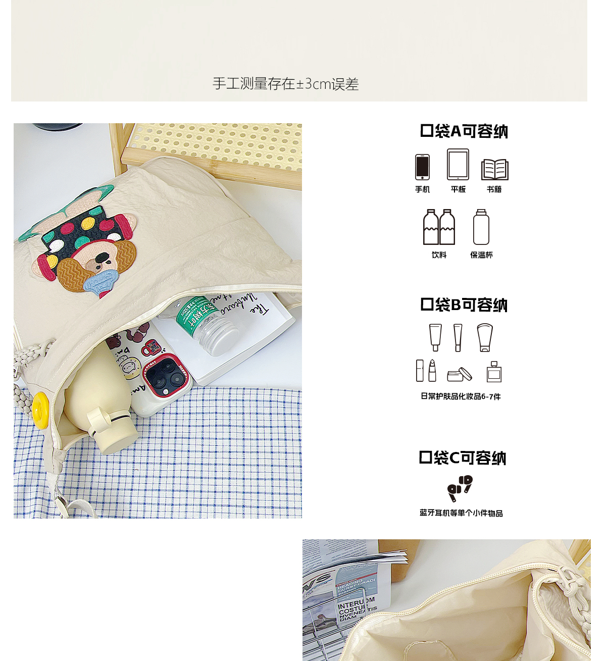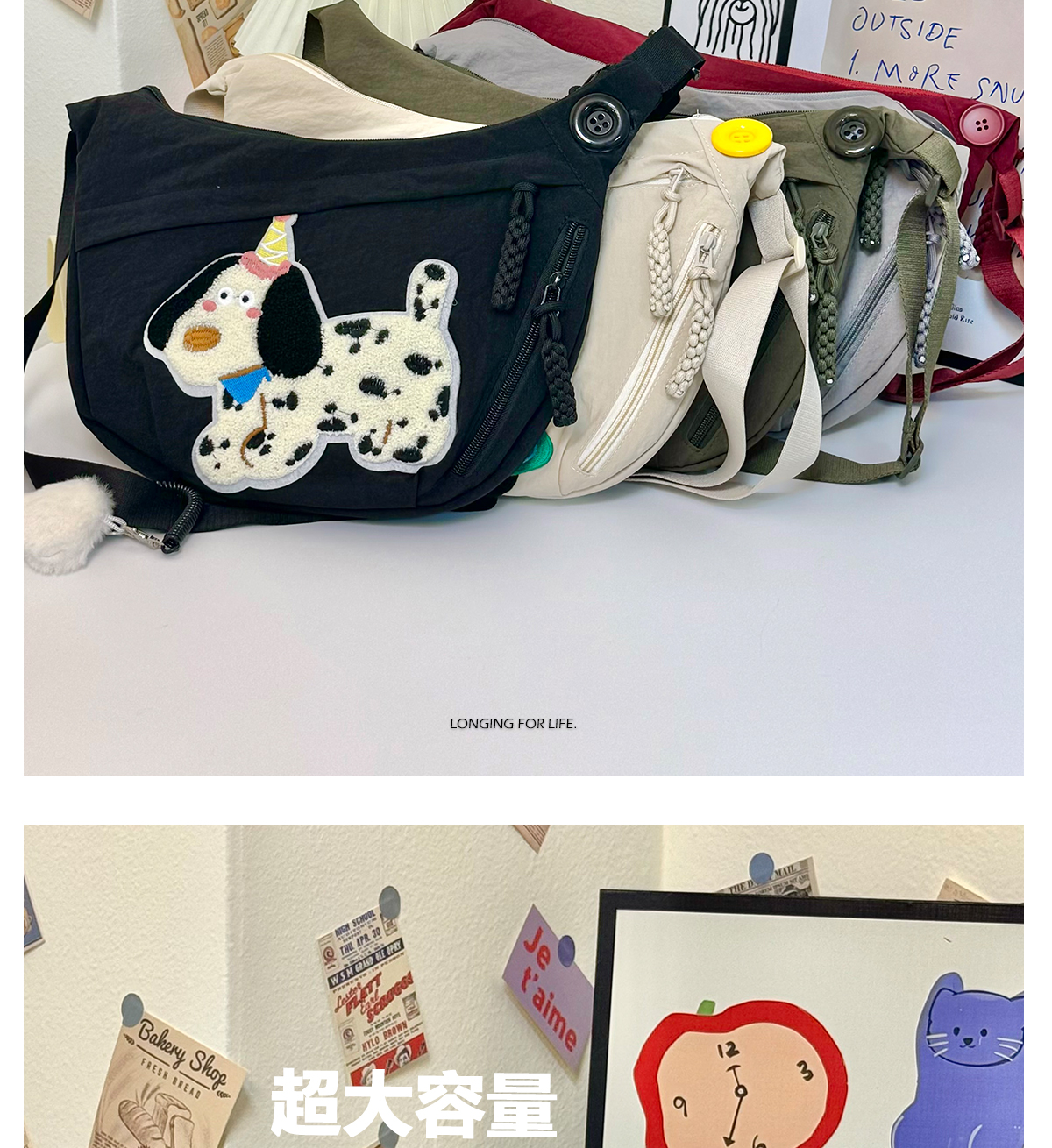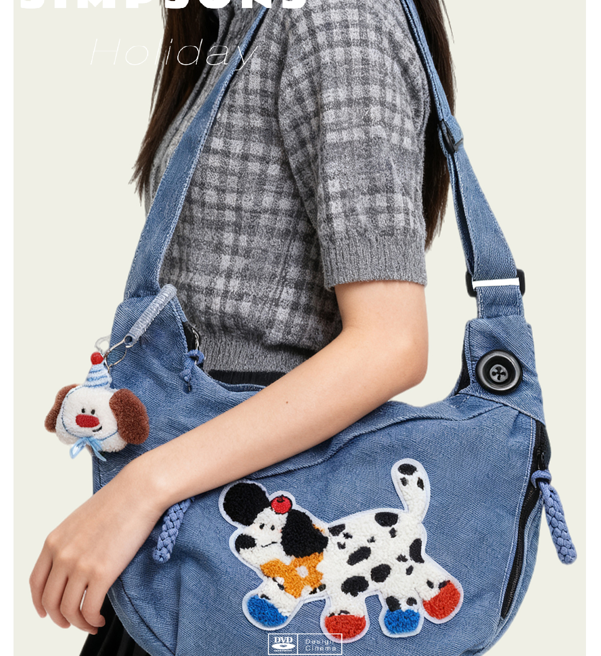 Simp Cross-Body Canvas Dumpling Bag, Cute and Fun, Large Capacity, Dog-Shaped Pendant, Fashionable and Versatile Travel and Commuting Bag