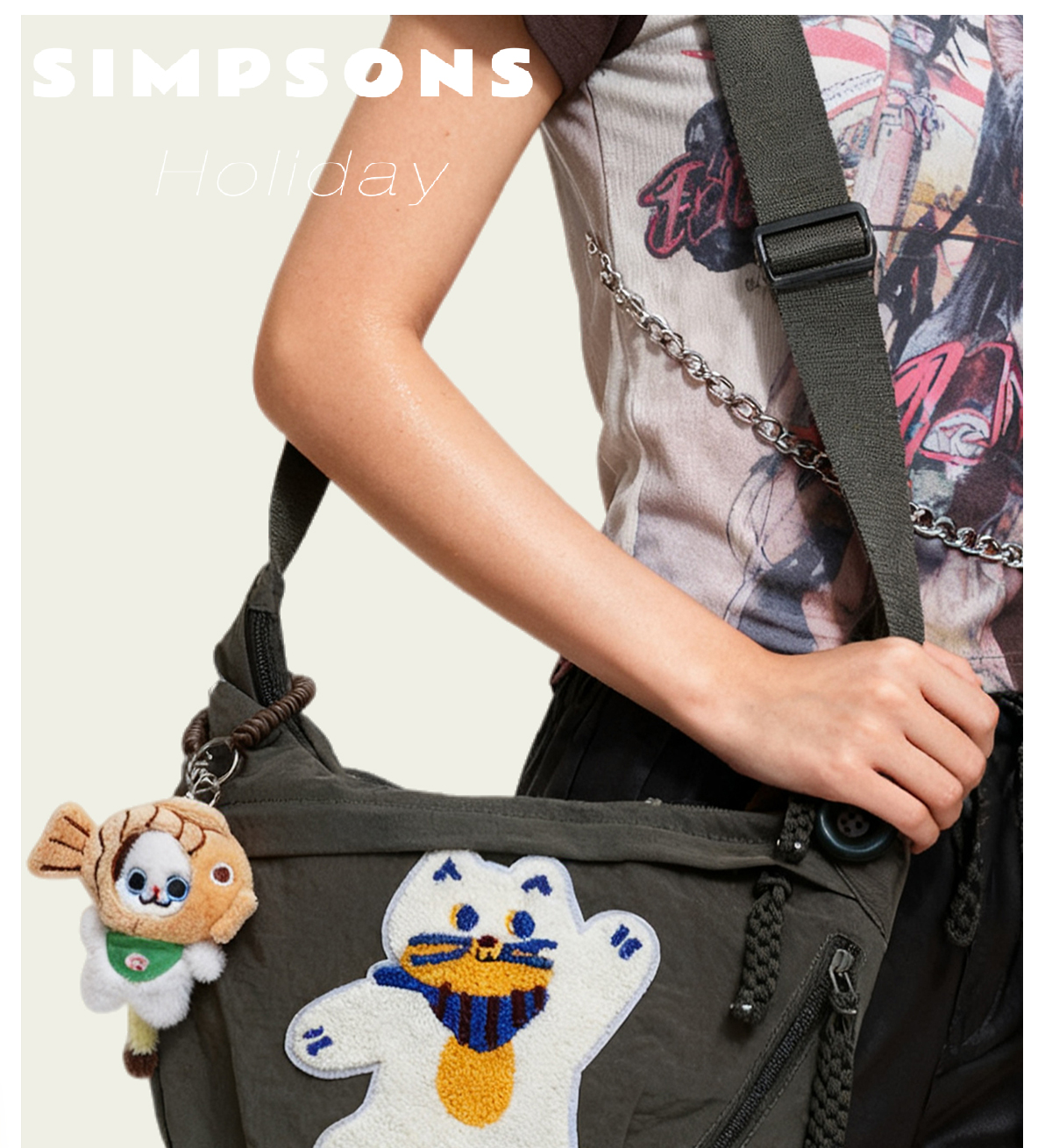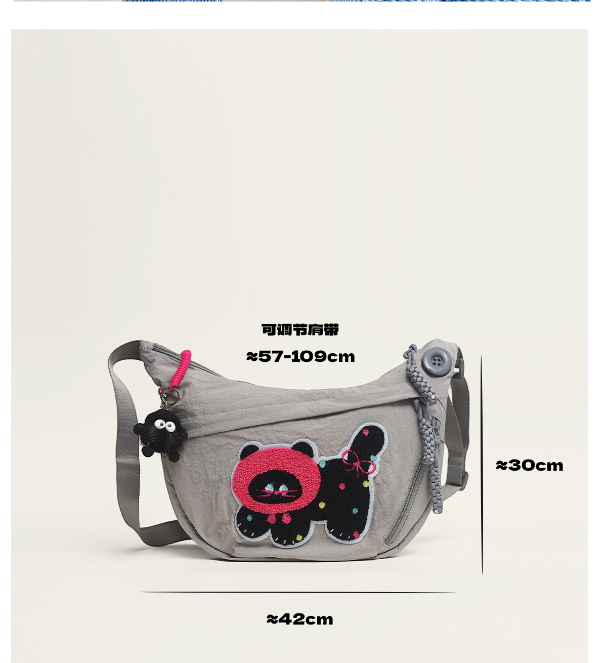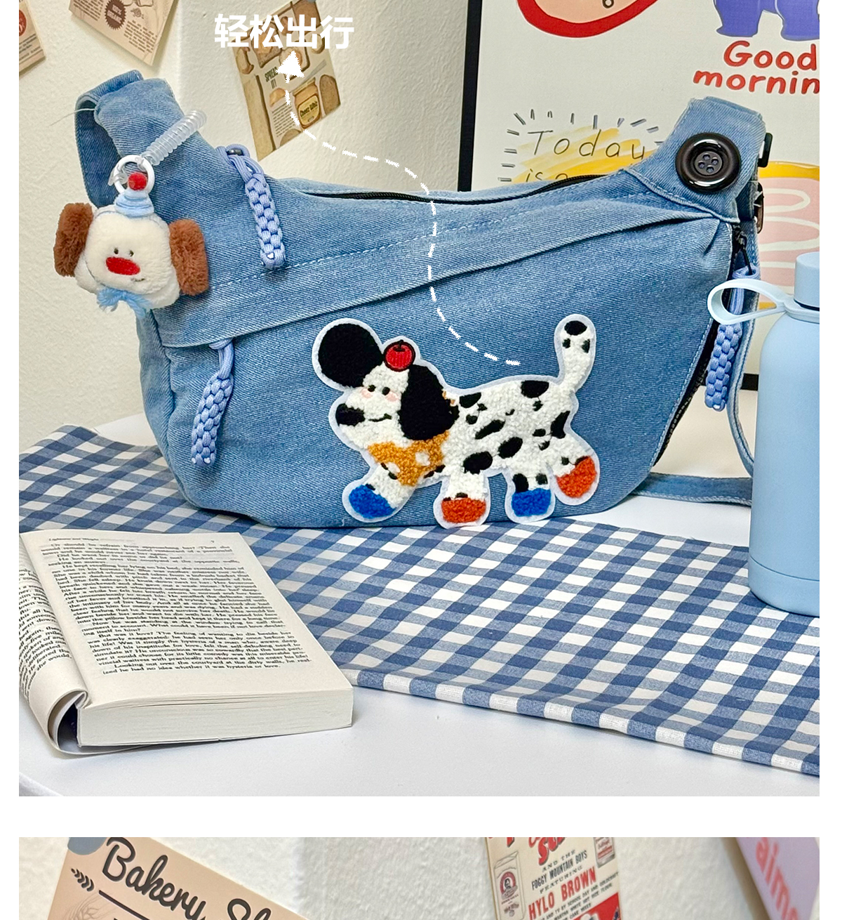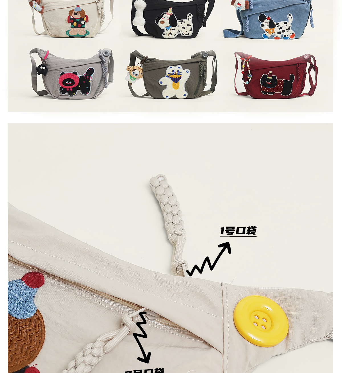 Simp Cross-Body Canvas Dumpling Bag, Cute and Fun, Large Capacity, Dog-Shaped Pendant, Fashionable and Versatile Travel and Commuting Bag